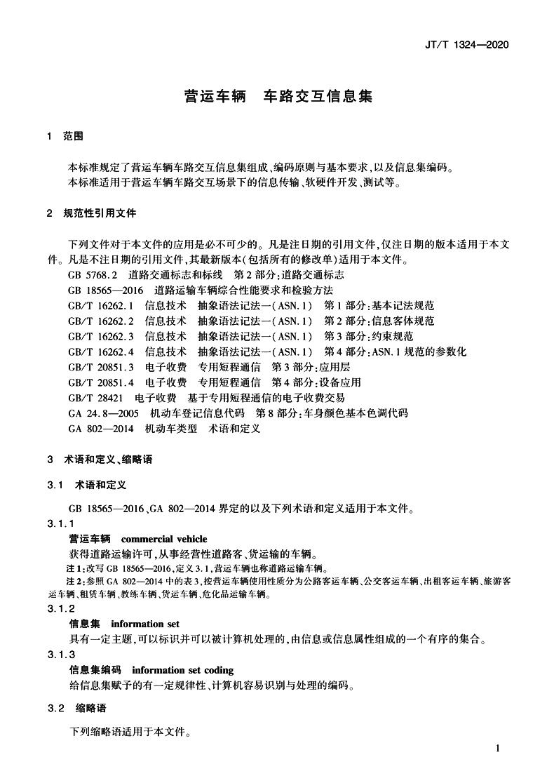 书名:营运车辆 车路交互信息集(JT/T 1324—2020)
