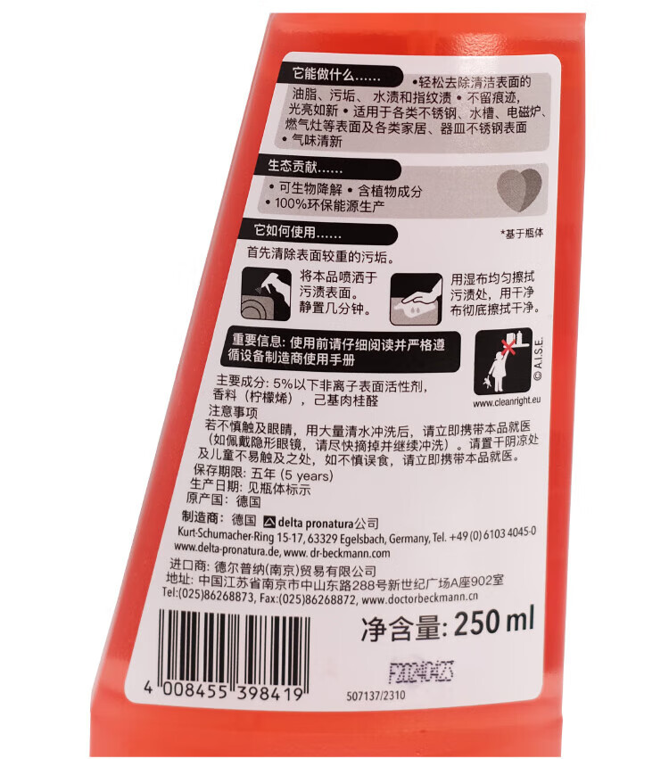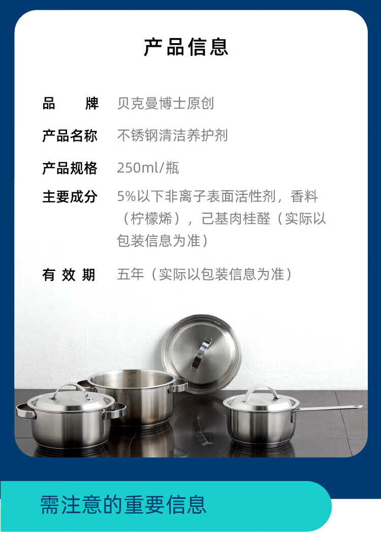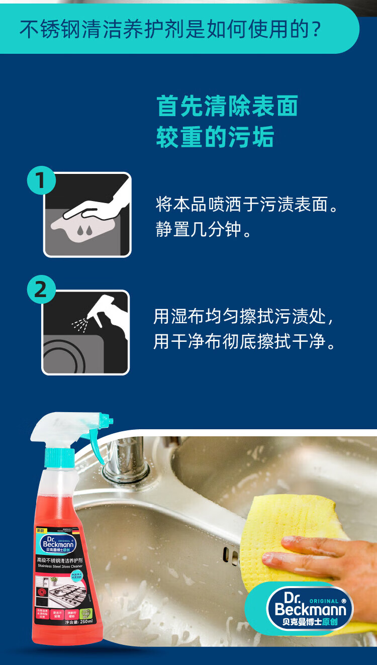 贝克曼高级不锈钢清洁养护剂250ml