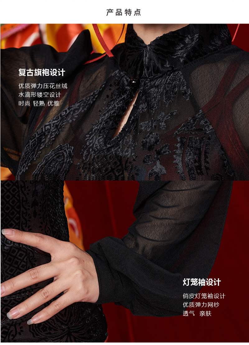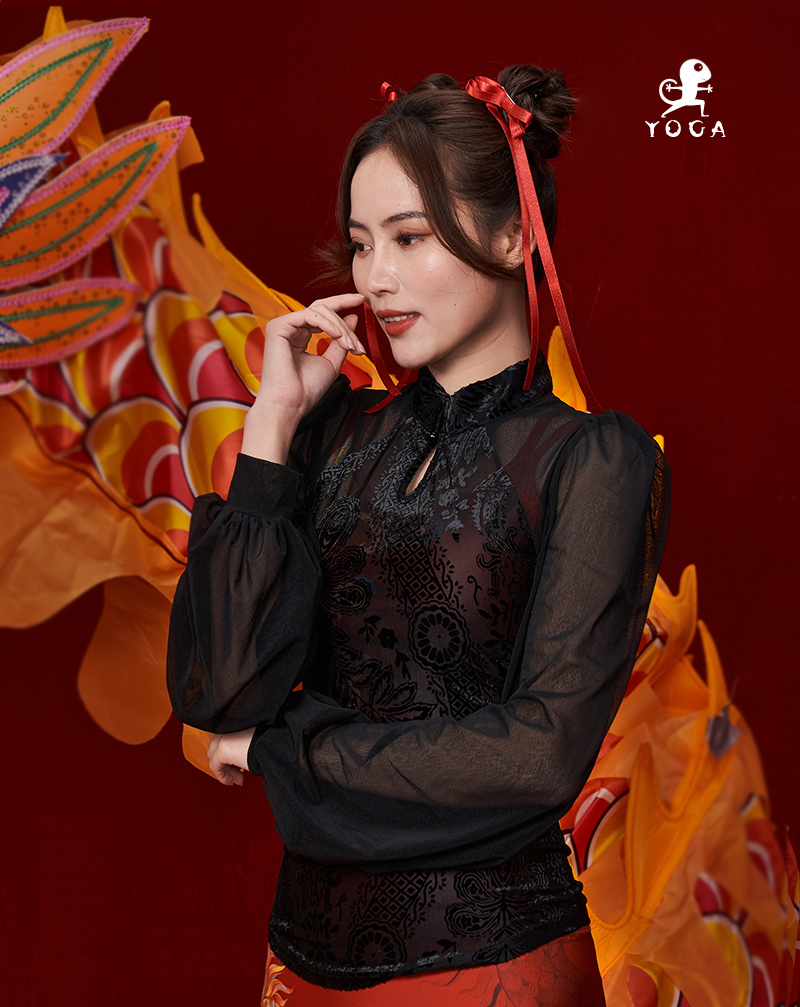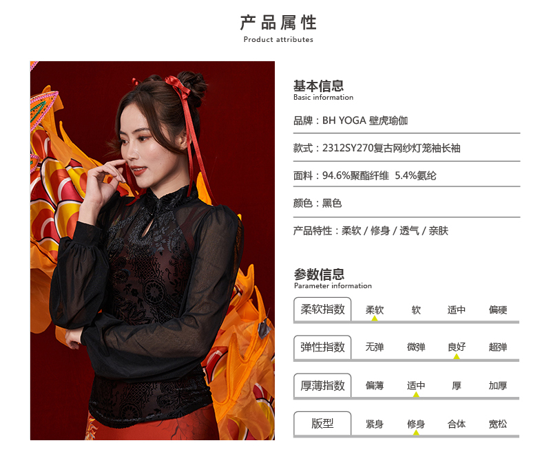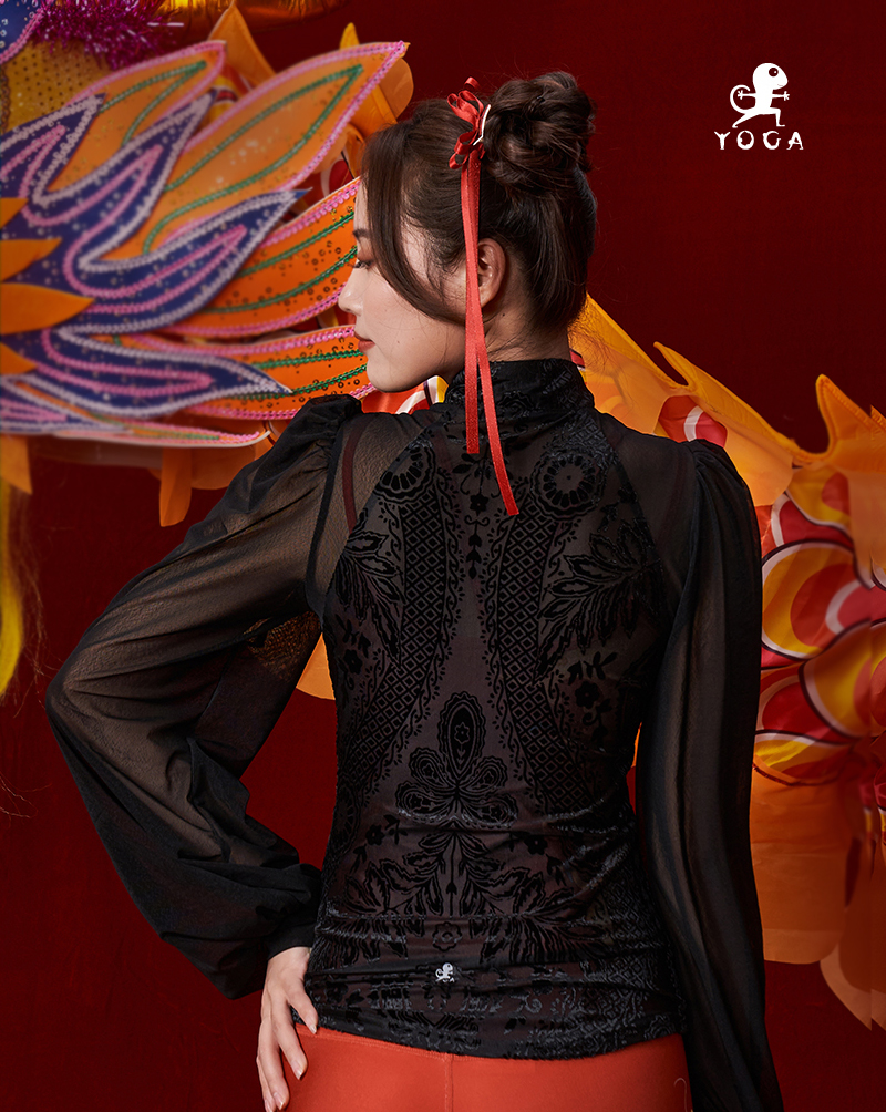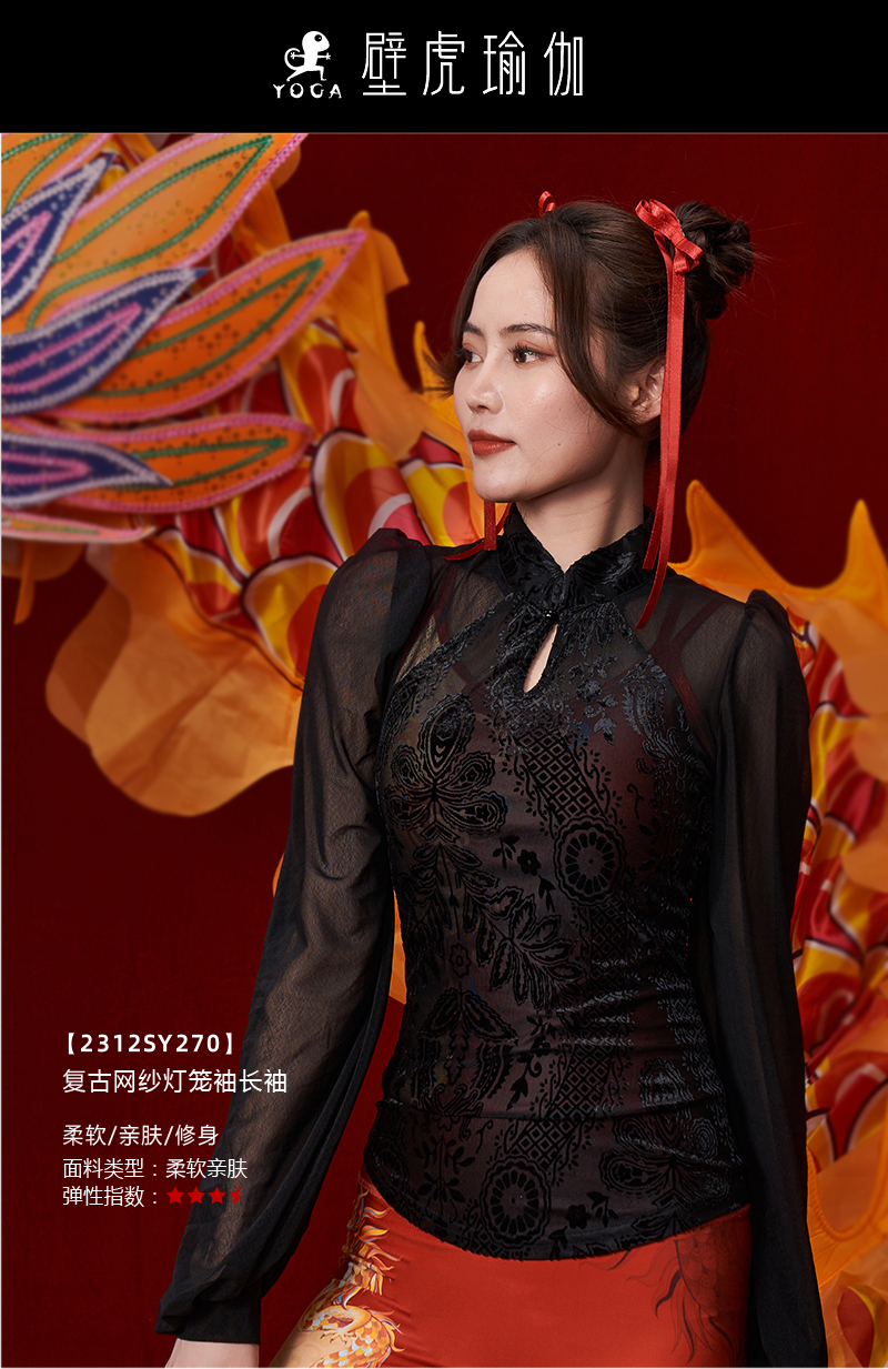 壁虎瑜伽【2312SY270】复古网纱灯笼袖长袖【5天发货】