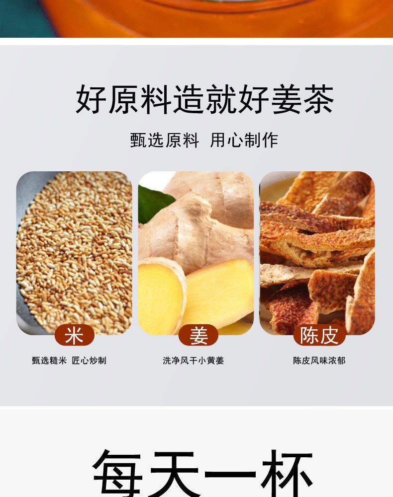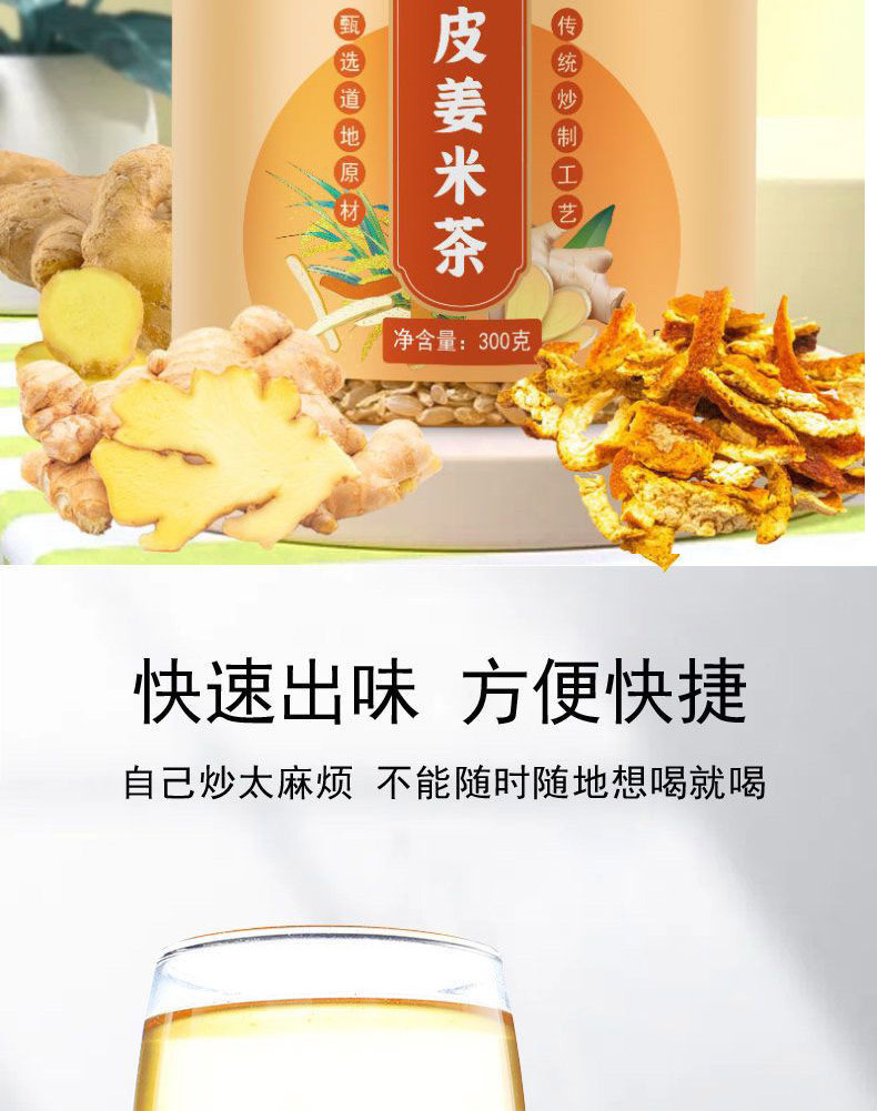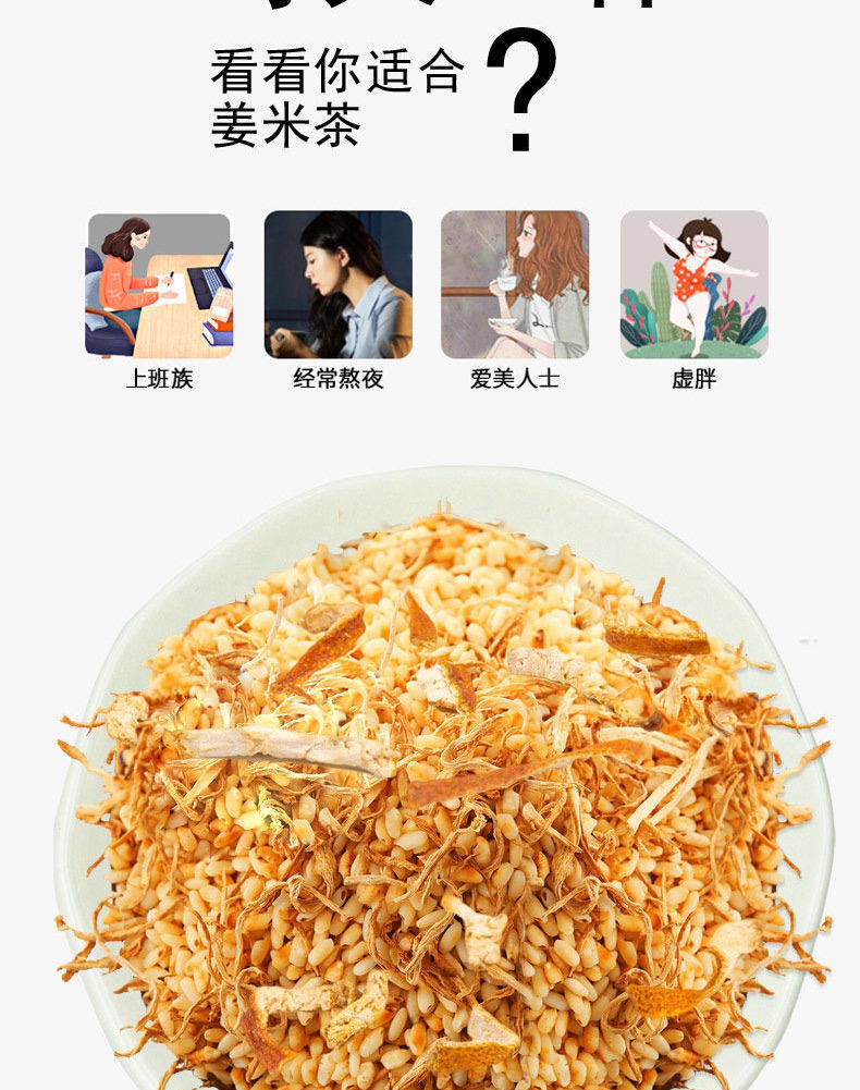 【天气变化无常,一杯姜茶贴心好礼!】陈皮姜米茶 炒姜米茶 生姜丝大米炒熟 姜丝泡水 甄选每一份道地原材 只为让您更放心-QB