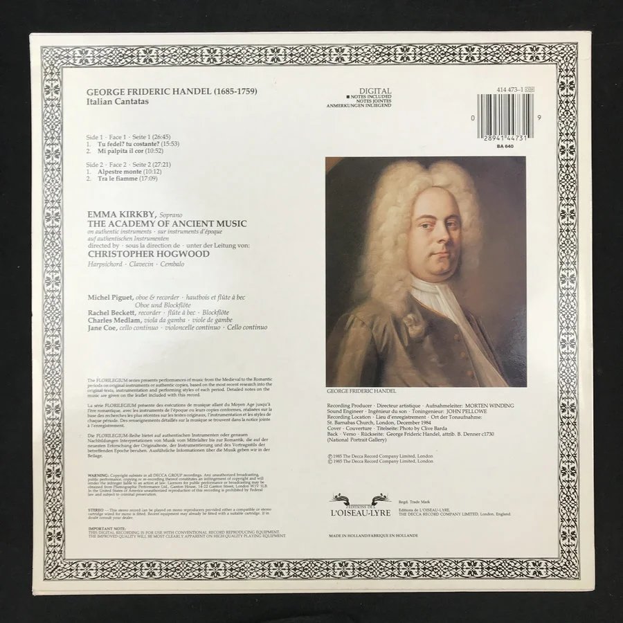 LP黑胶唱片 艾玛·柯克比演绎亨德尔作品《意大利康塔塔》厂牌:His L'Oiseau-Lyre
