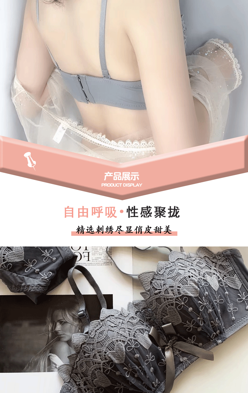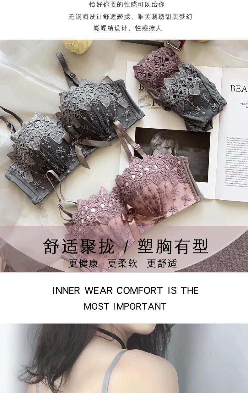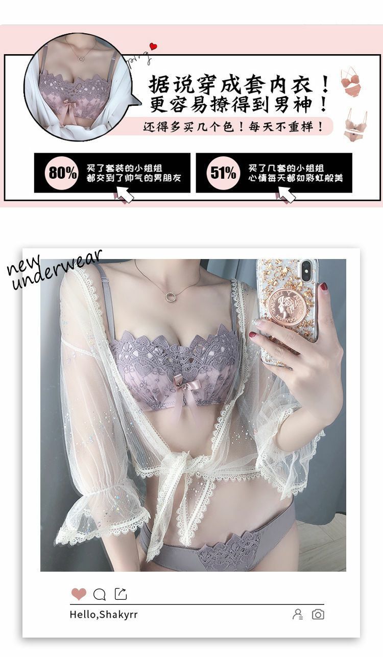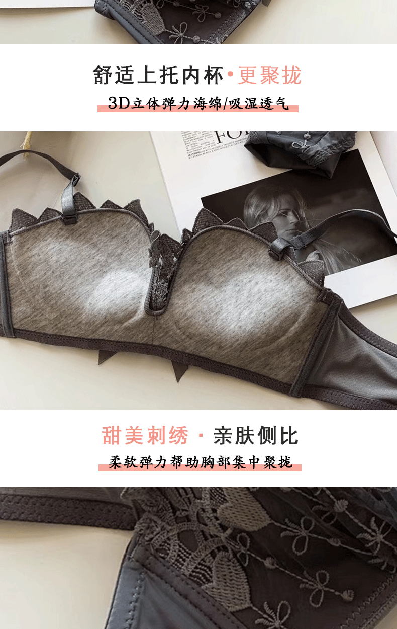 新款/套装 蕾丝内衣少女胸罩无钢圈小胸聚拢防下垂上托调整型文胸