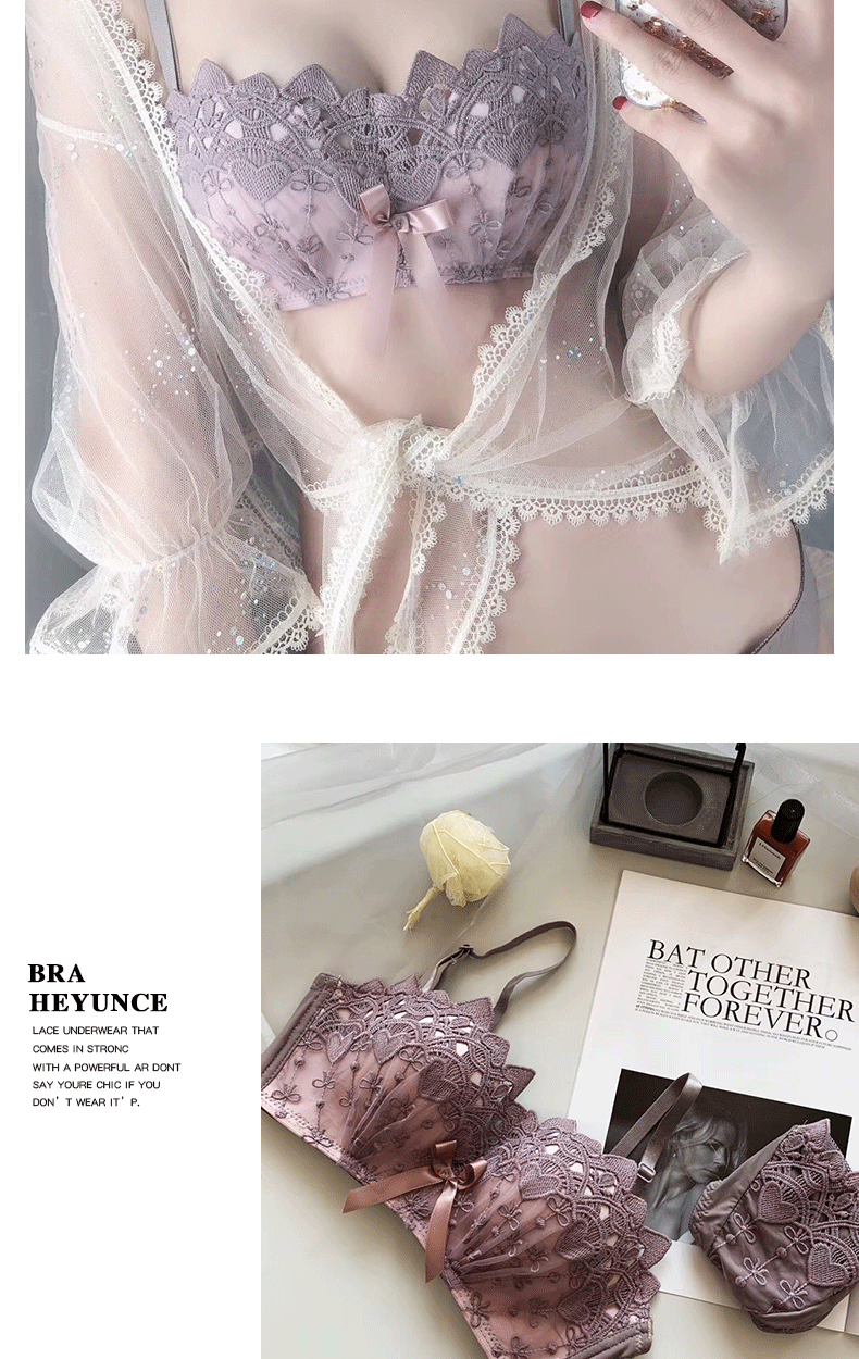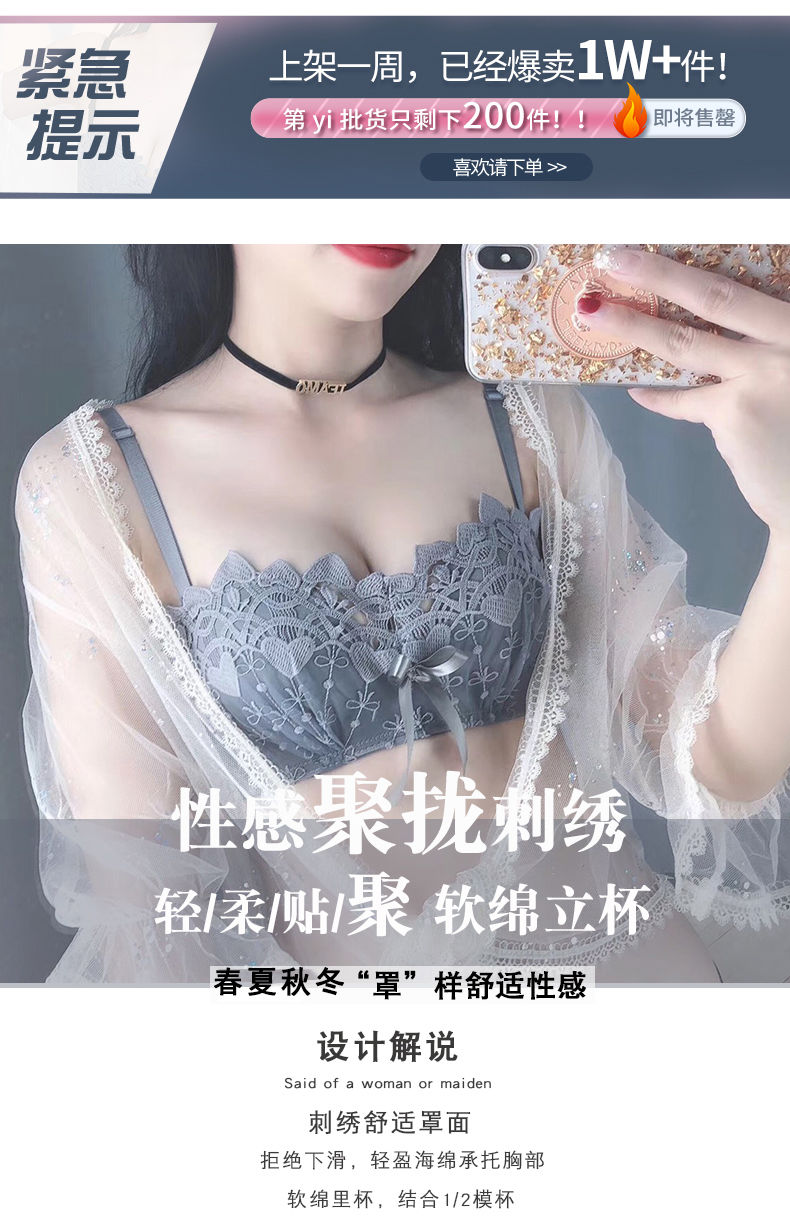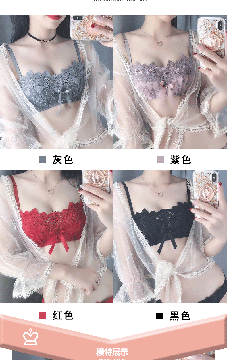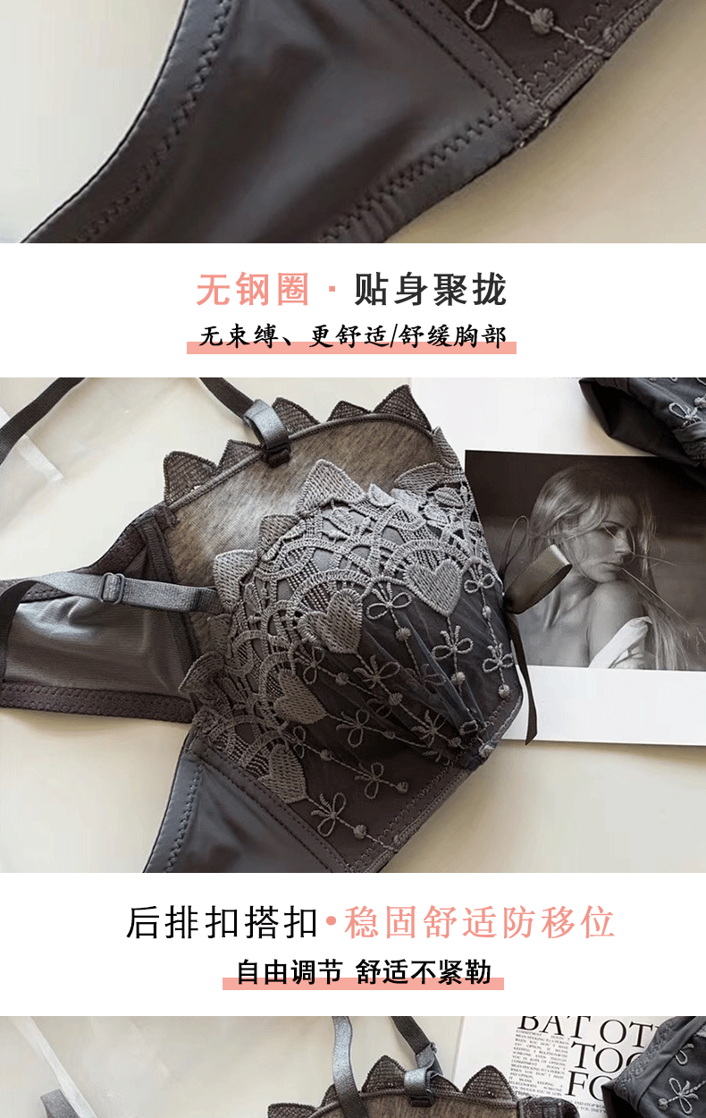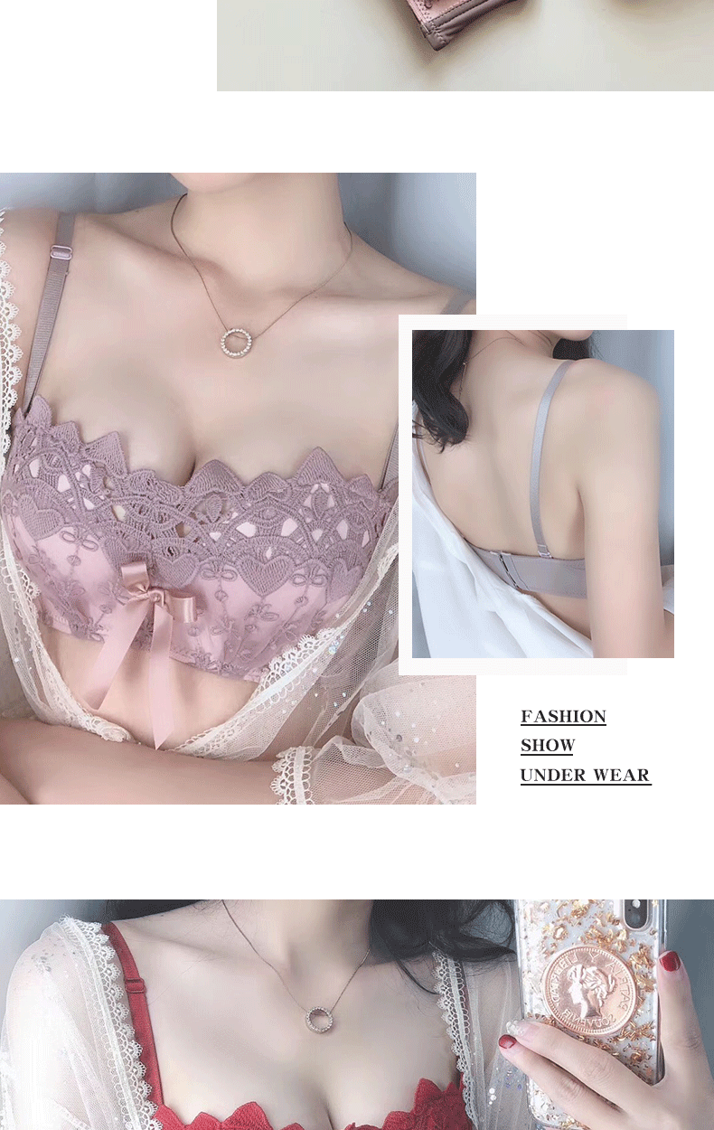 新款/套装 蕾丝内衣少女胸罩无钢圈小胸聚拢防下垂上托调整型文胸