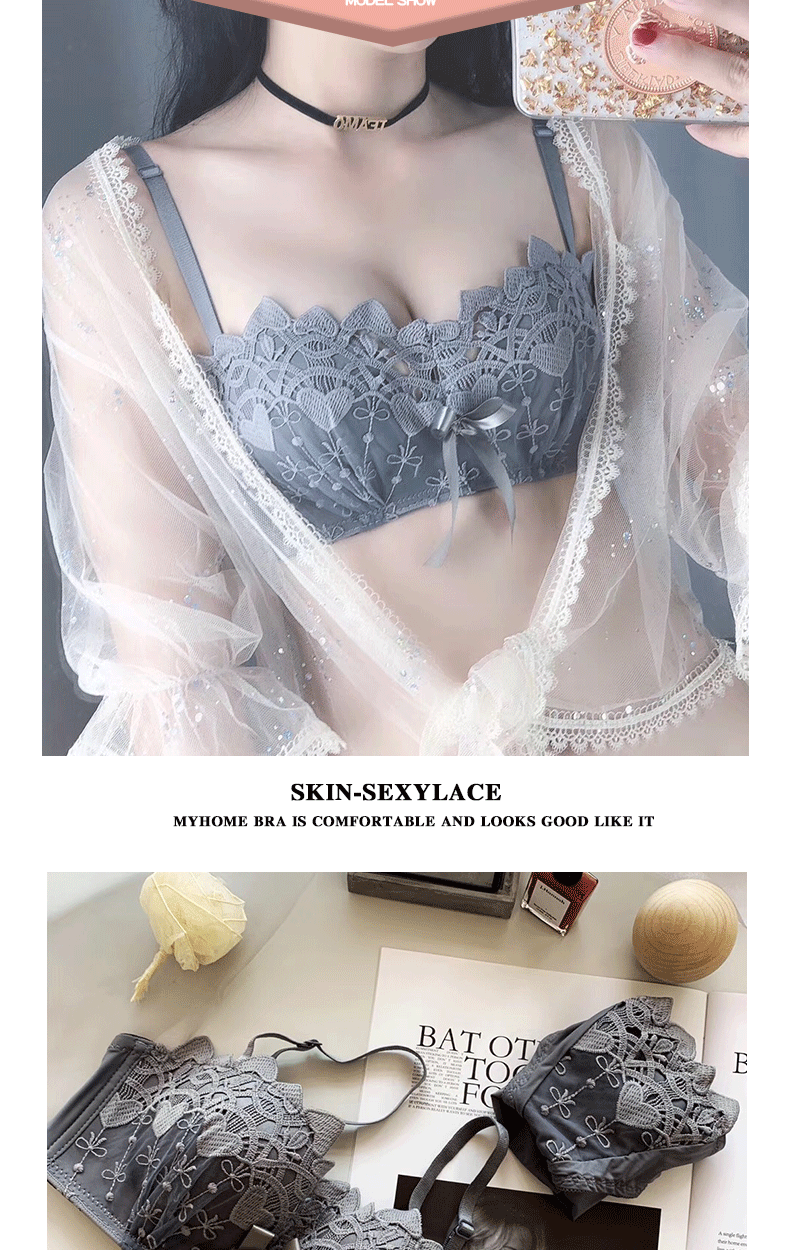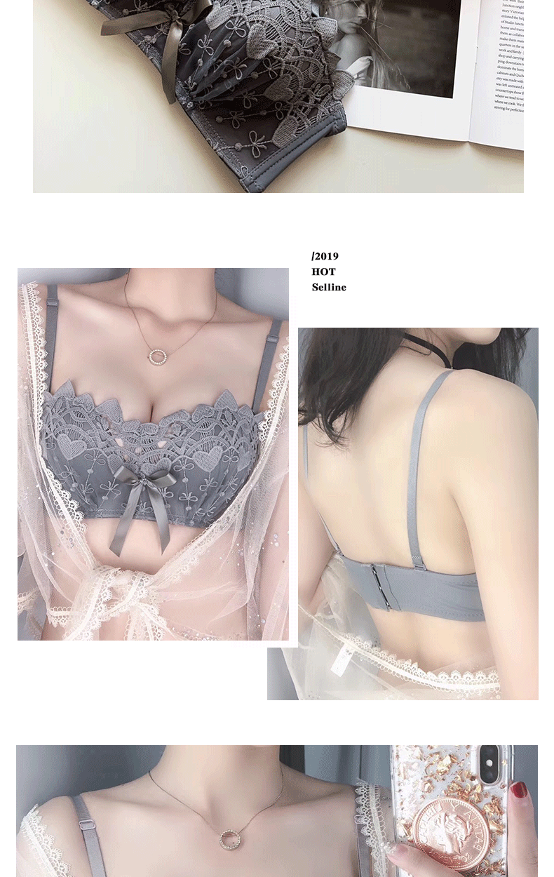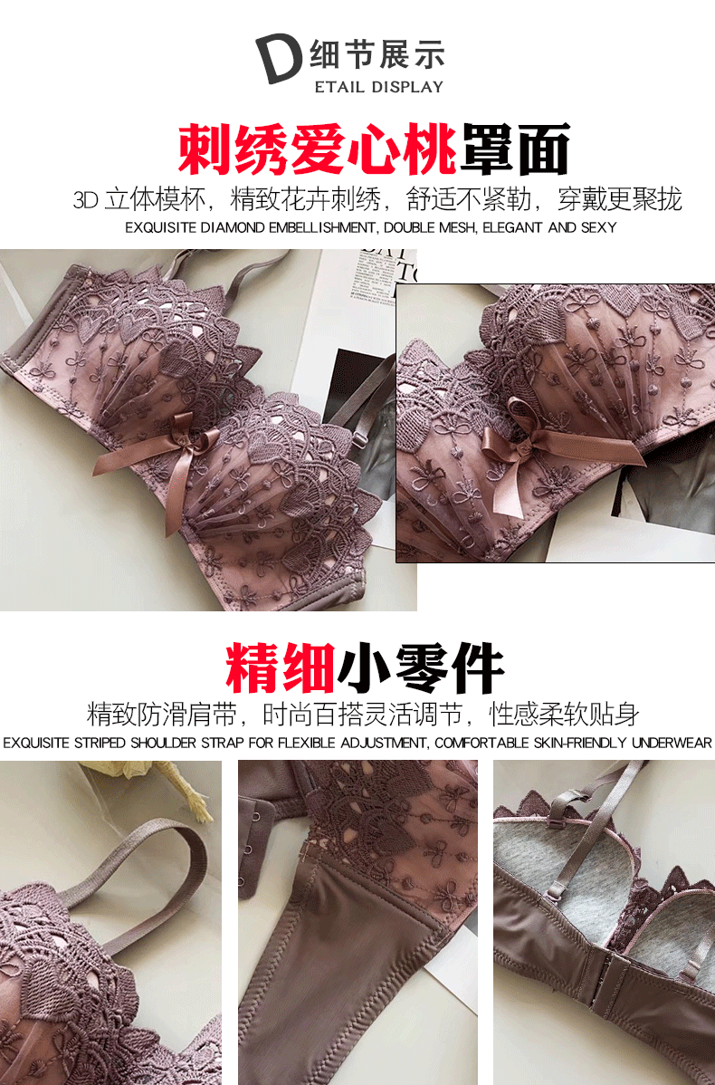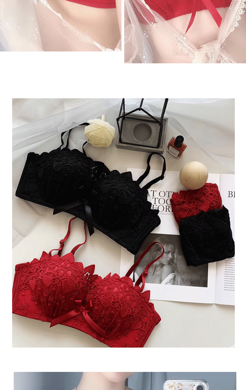 新款/套装 蕾丝内衣少女胸罩无钢圈小胸聚拢防下垂上托调整型文胸