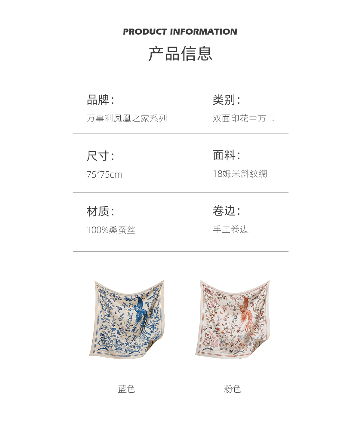 万事利“木兰辞”51厘米双面印花真丝小方巾