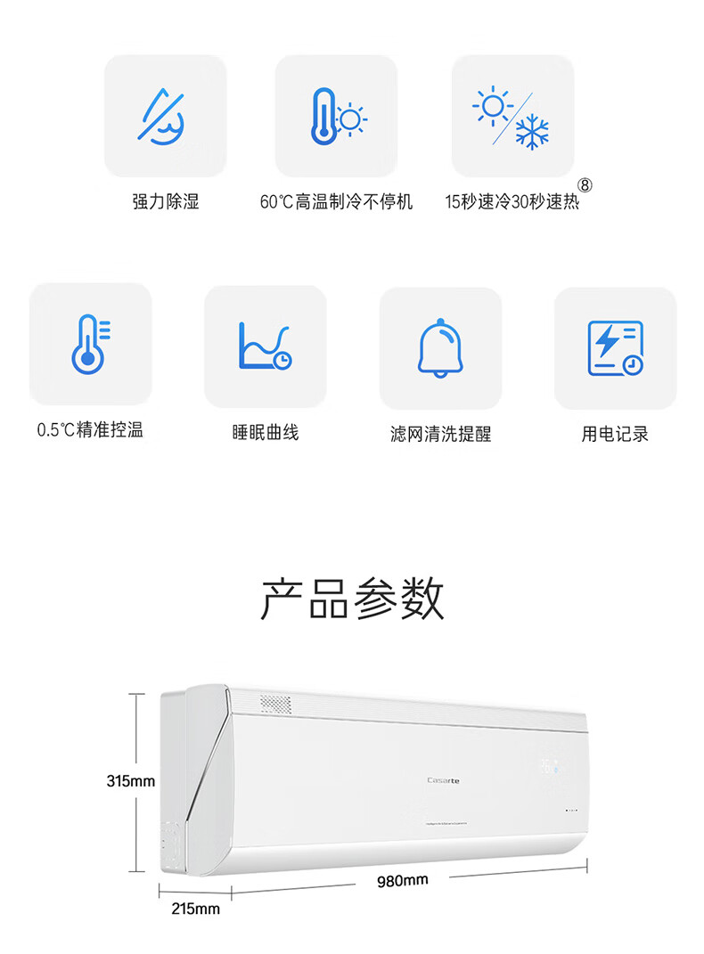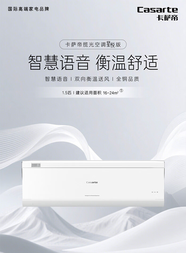 国补到手 3280元 卡萨帝(Casarte)揽光空调星悦版 1.5匹 一级能效 智慧语音 60℃高温制冷不停机 15s速冷 卧室空调 CAS3523FCB(81)VU1