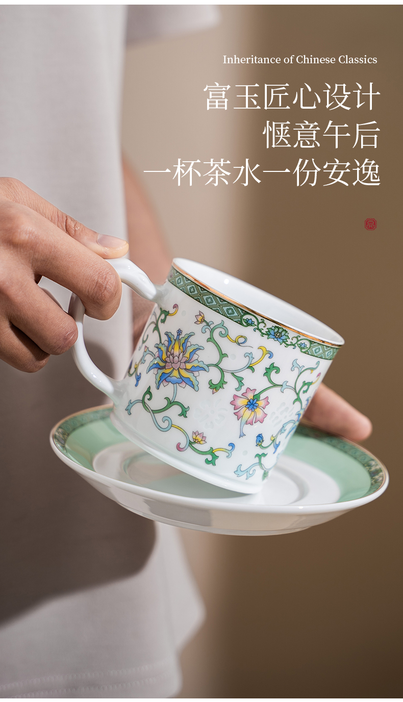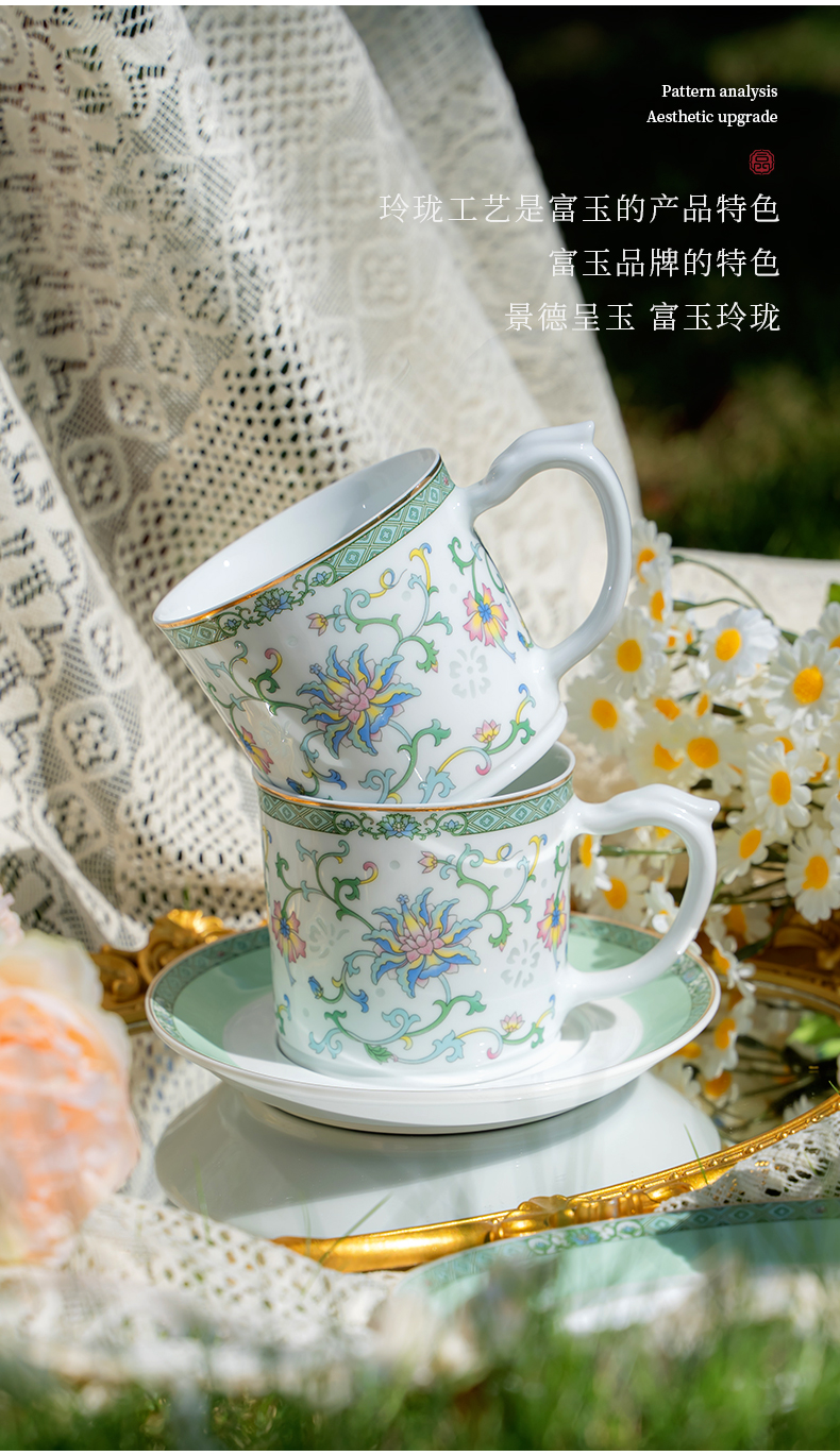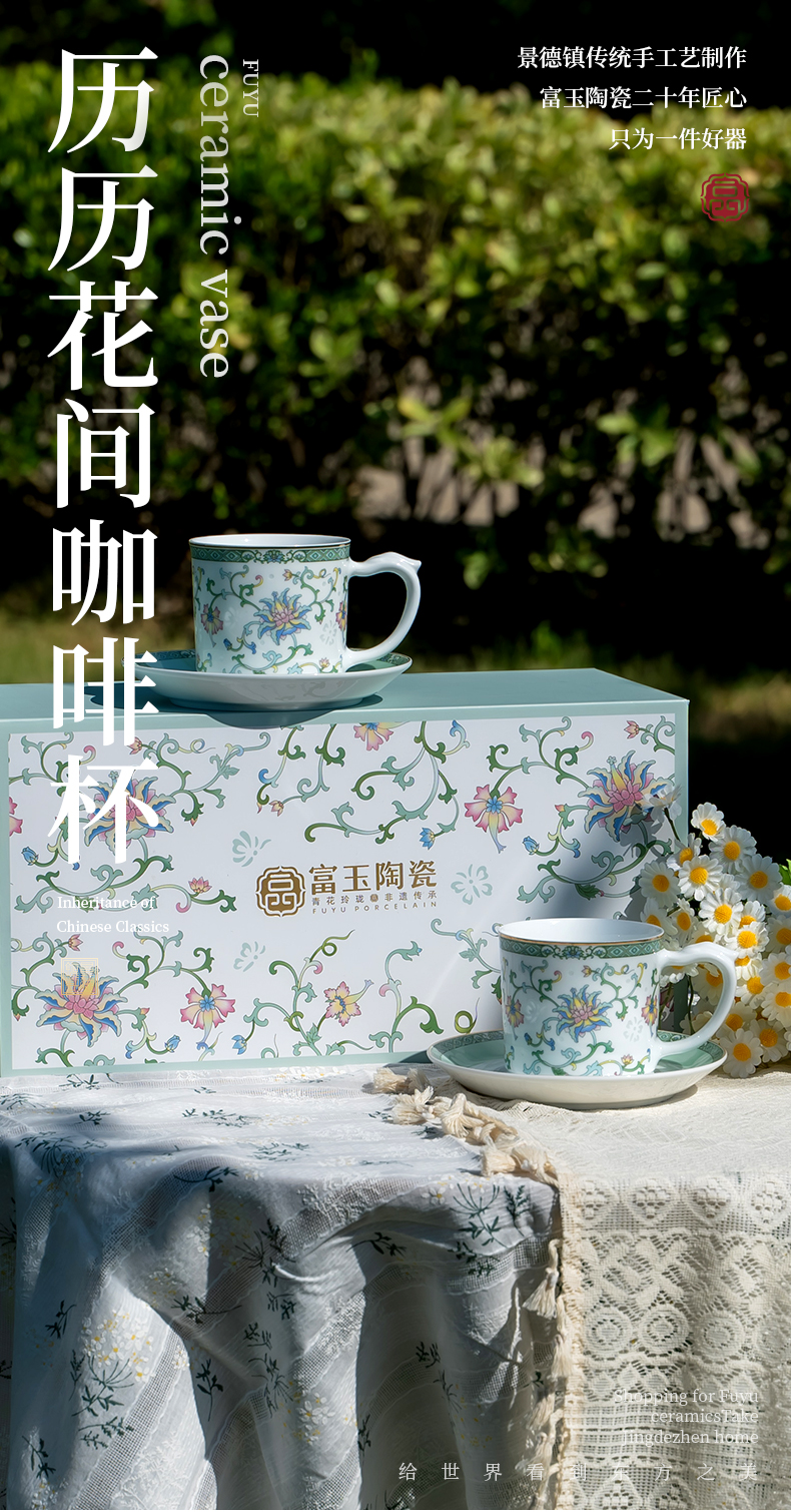 富玉陶瓷咖啡杯碟套装家用高档精致杯子杯具下午茶轻奢礼盒伴手礼历历花间茶咖具