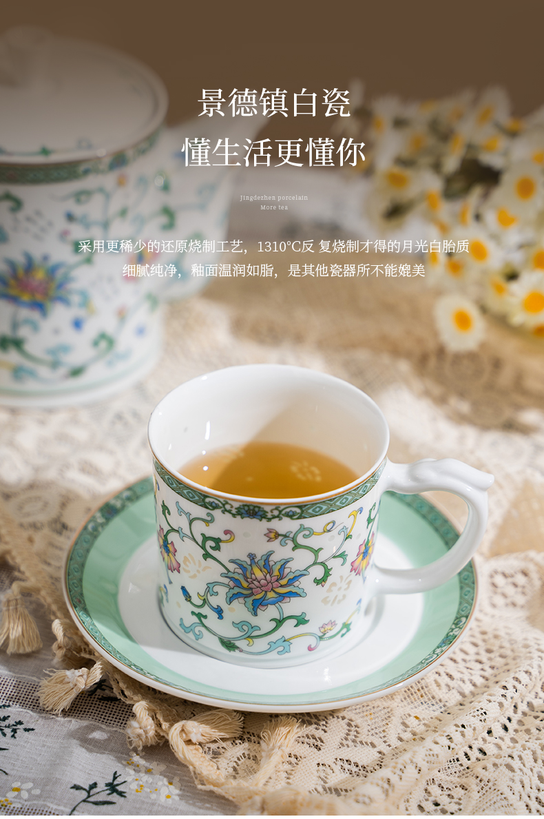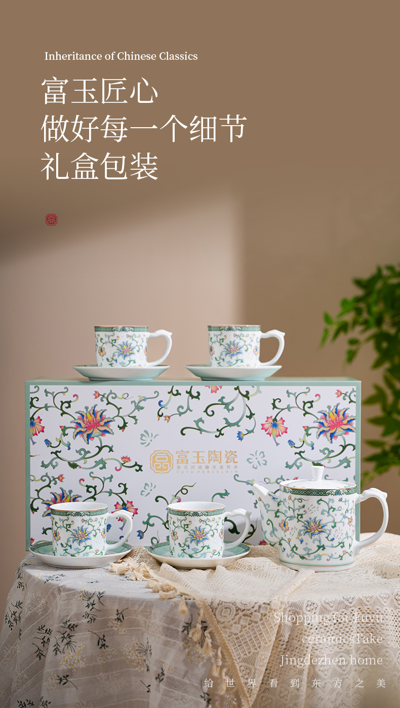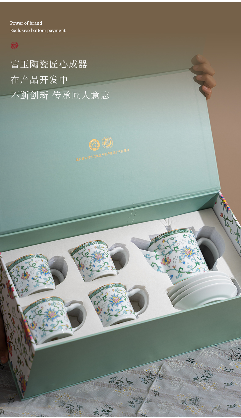 富玉陶瓷咖啡杯碟套装家用高档精致杯子杯具下午茶轻奢礼盒伴手礼历历花间茶咖具