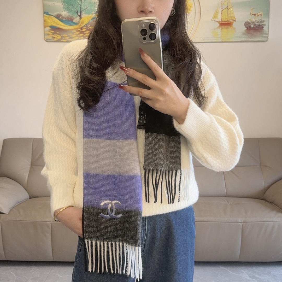 秋冬特惠💰260 香奈儿新款围巾 好看的要疯掉了,太有型太有魅力了 非常亮眼的秋冬单品,让你轻轻松松做C位!真的很喜欢,非常跳跃的颜色设计 上身效果无敌手感真的绝了 上身效果真的随便怎么围都好看!!这种款式真的闭着眼买,任何年龄层都轻松驾驭!!!尺寸:30*200cm