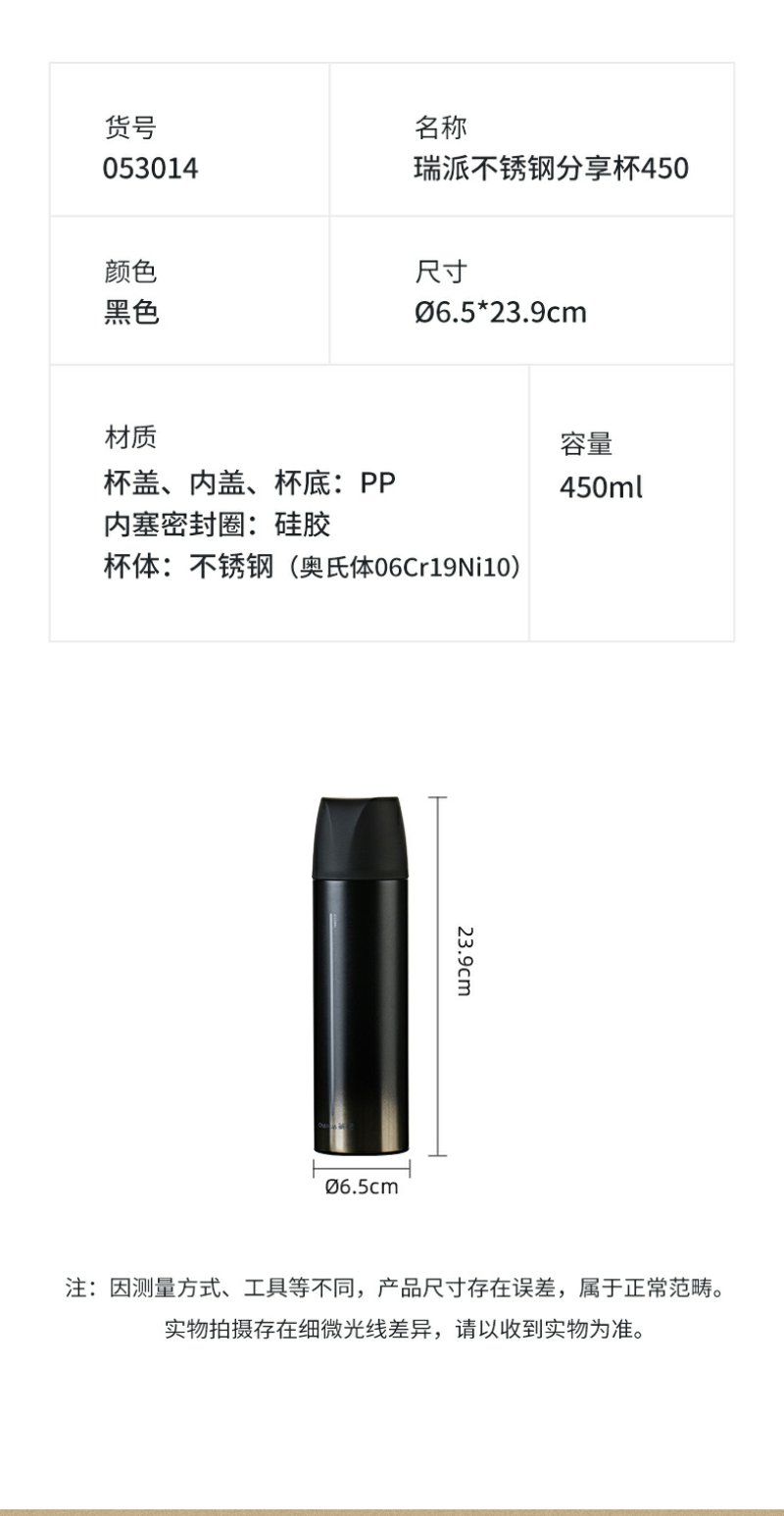【茶花】不锈钢保温分享杯450ML
