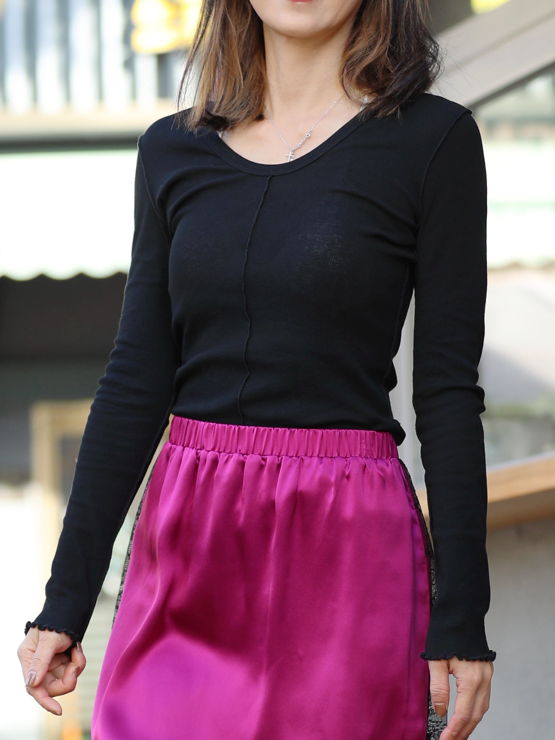 TYNVIE 棉质荷叶边叠穿上衣 - 黑色