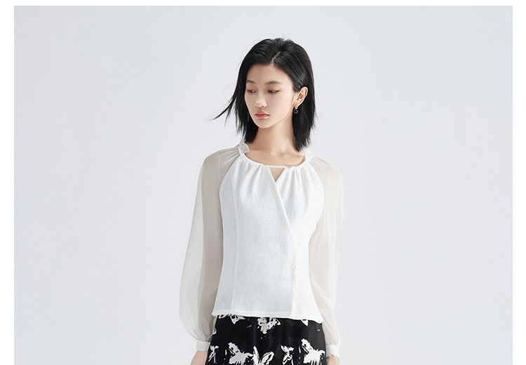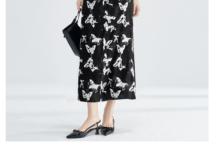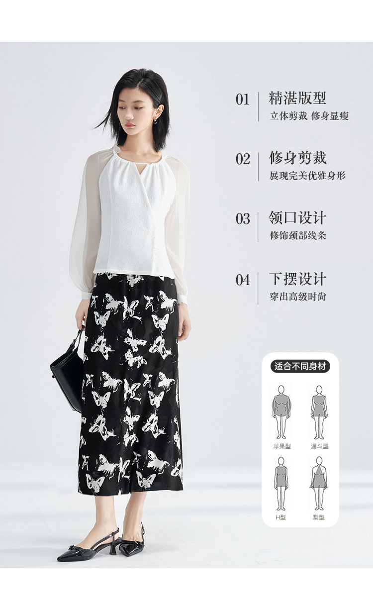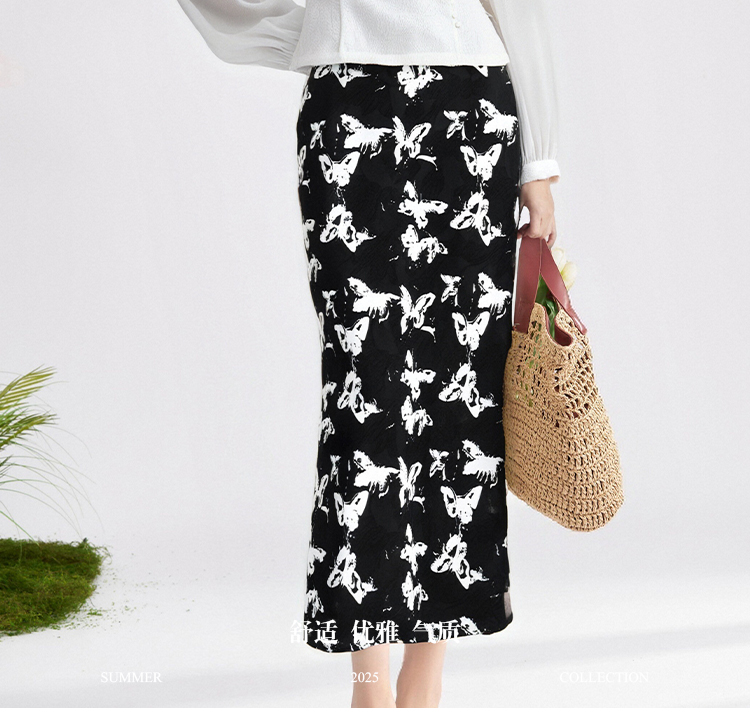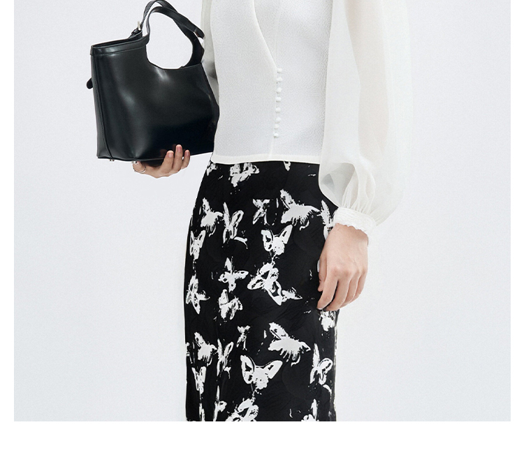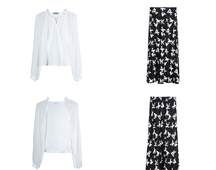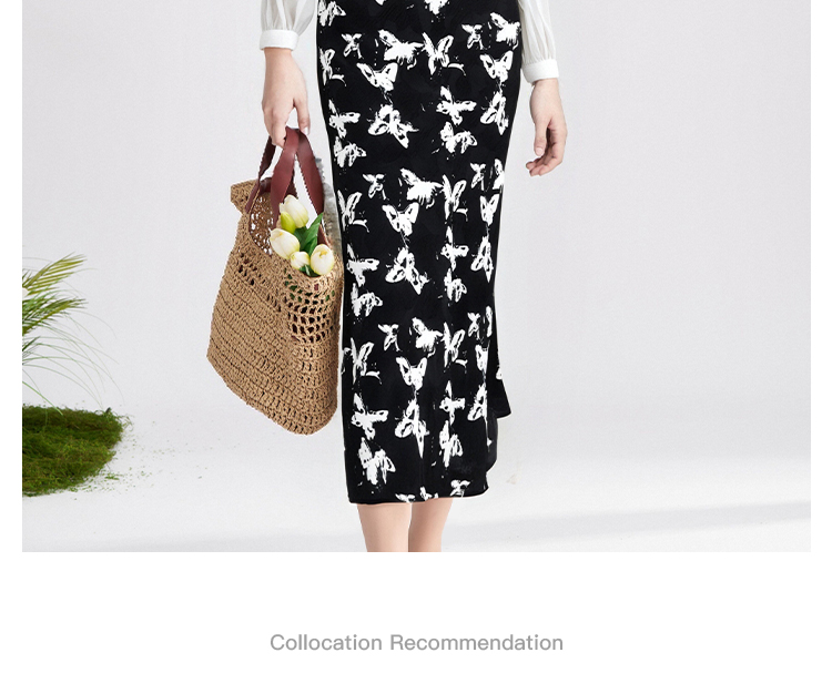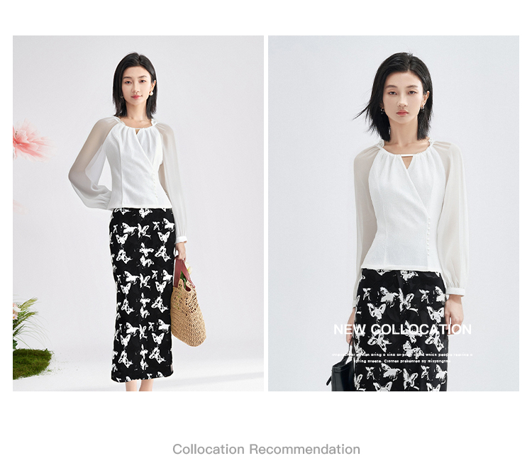 剩S/M/L/XL 米思阳 优雅荷叶边小衫蝴蝶印花半裙两件套 减龄洋气秋装套装女高级感4526