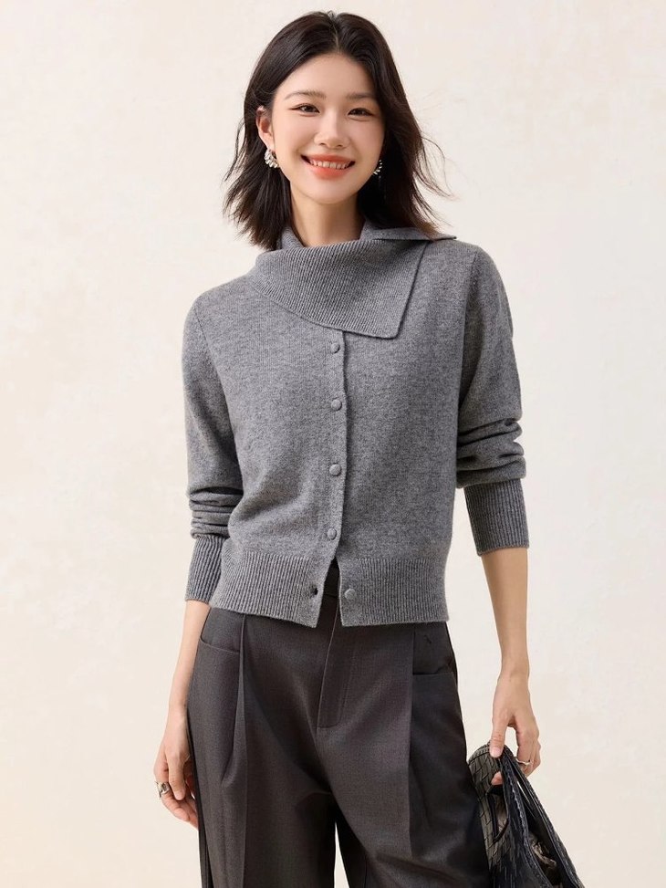 温润老钱~【定制量感围脖针织开衫】LP家同源100%顶级全羊毛!设计感围脖领自带腔调,修饰脸型与颈部线条,舒适自在WD