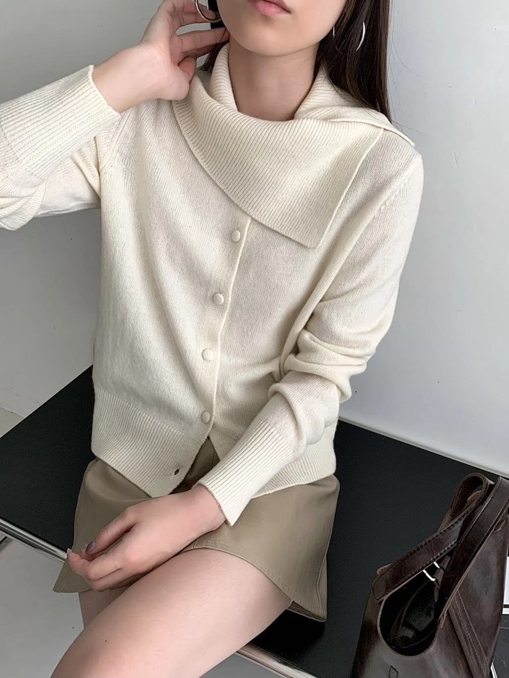 【品名】定制量感围脖领针织开衫