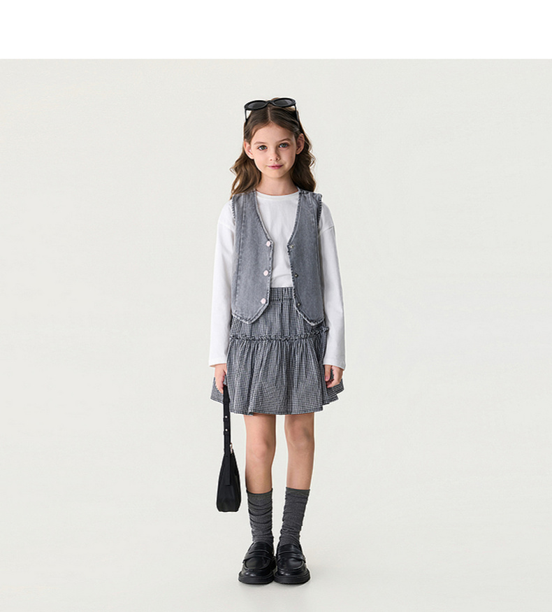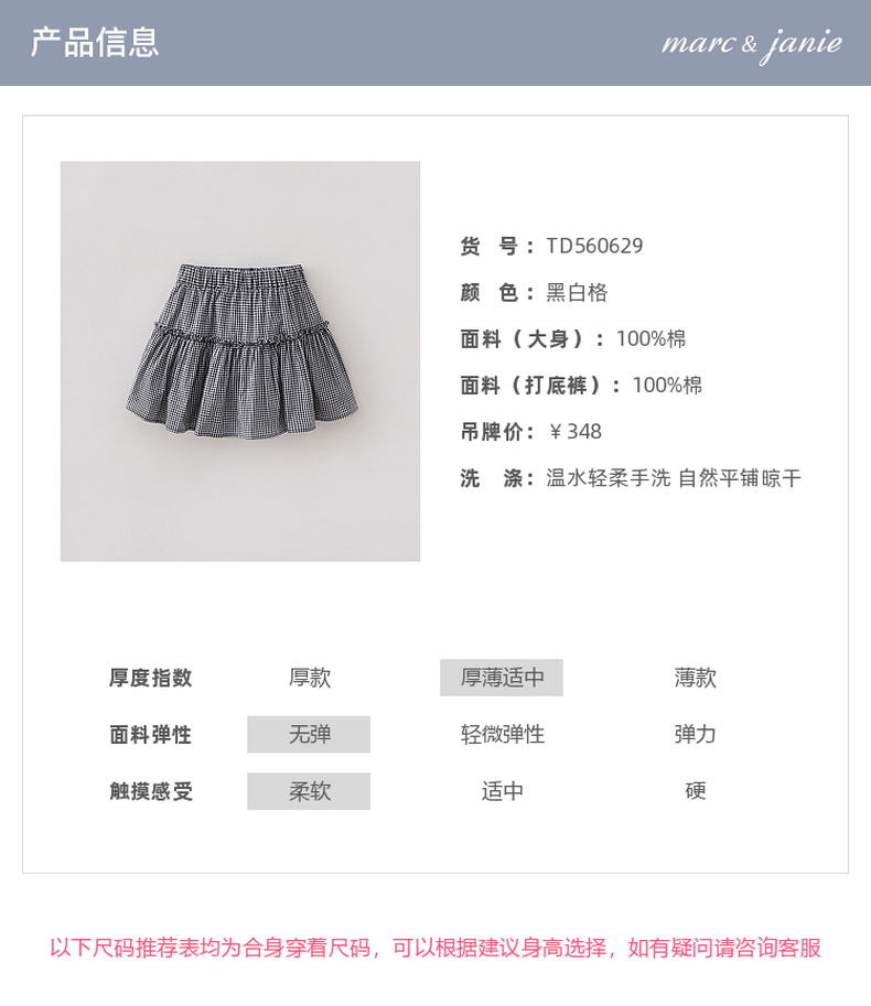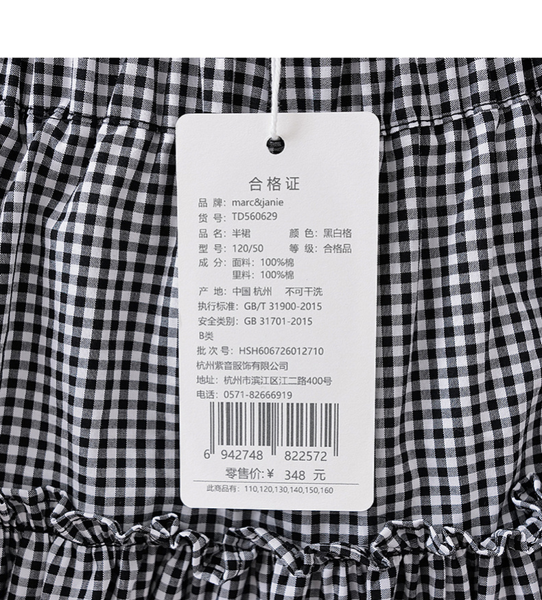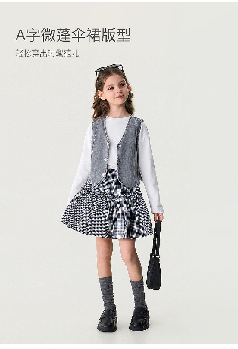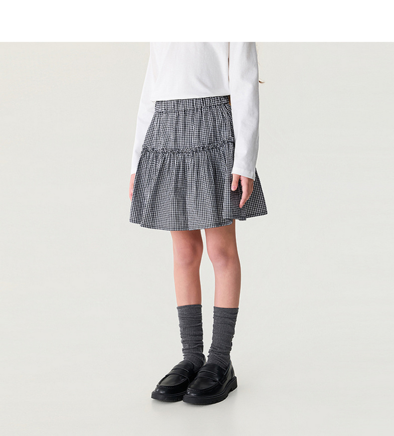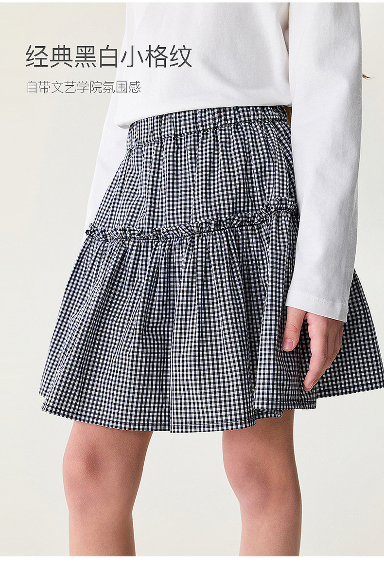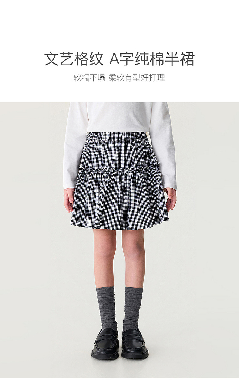 马克珍妮文艺格纹女童A字纯棉半裙2026年夏装新款560629