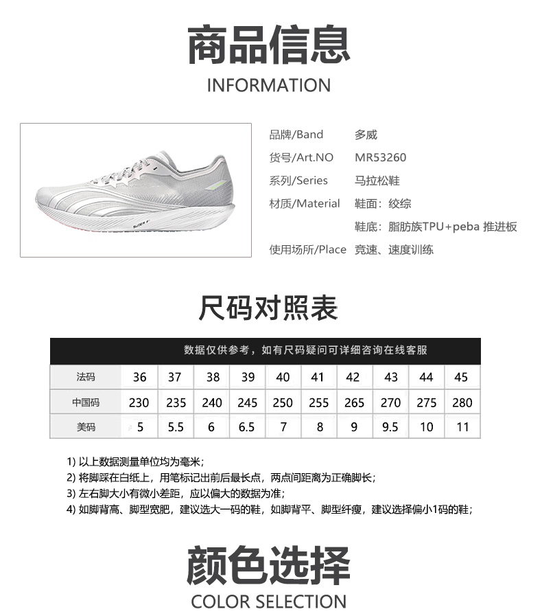 多威隐忍2代薄底场地竞速男女超临界训练跑鞋MR53260