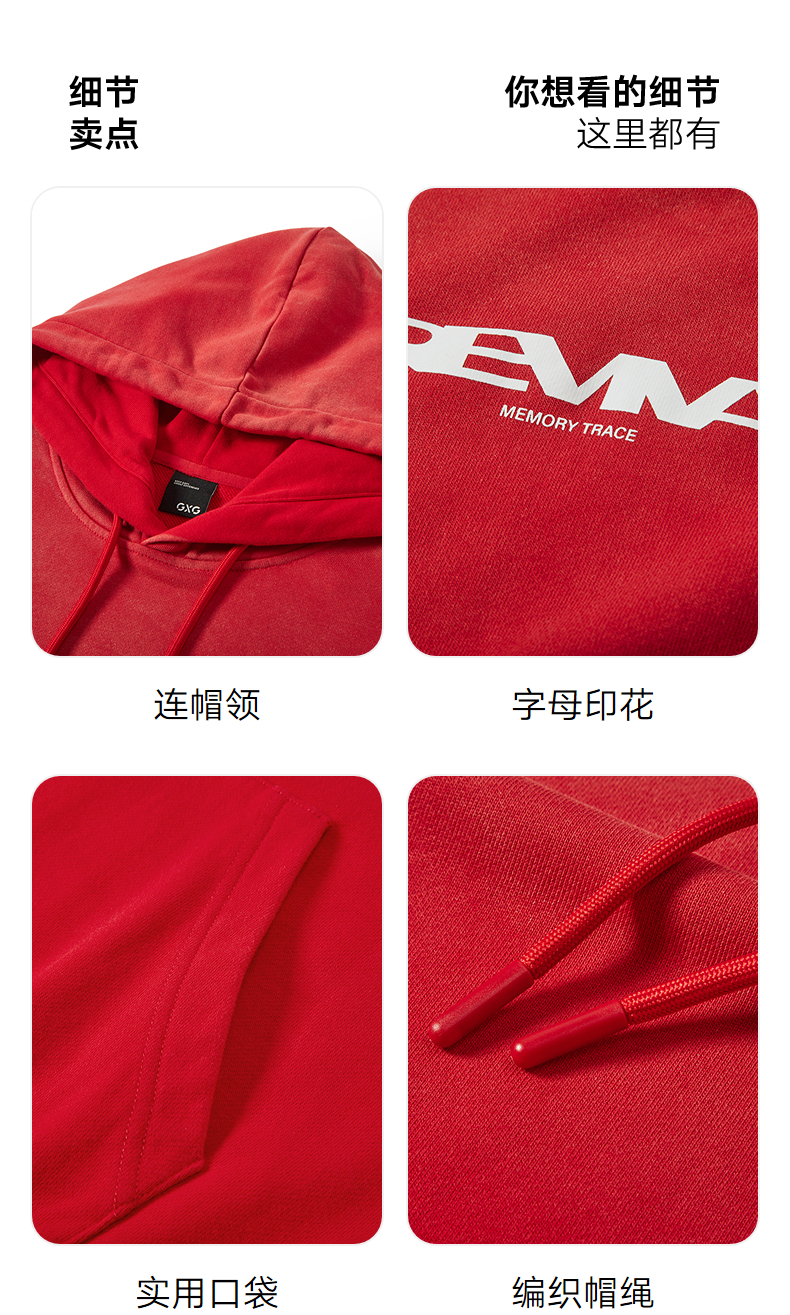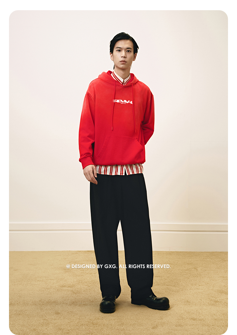 GXG男装 连帽休闲渐变染色卫衣通勤长袖上衣卫衣 2025春季热卖