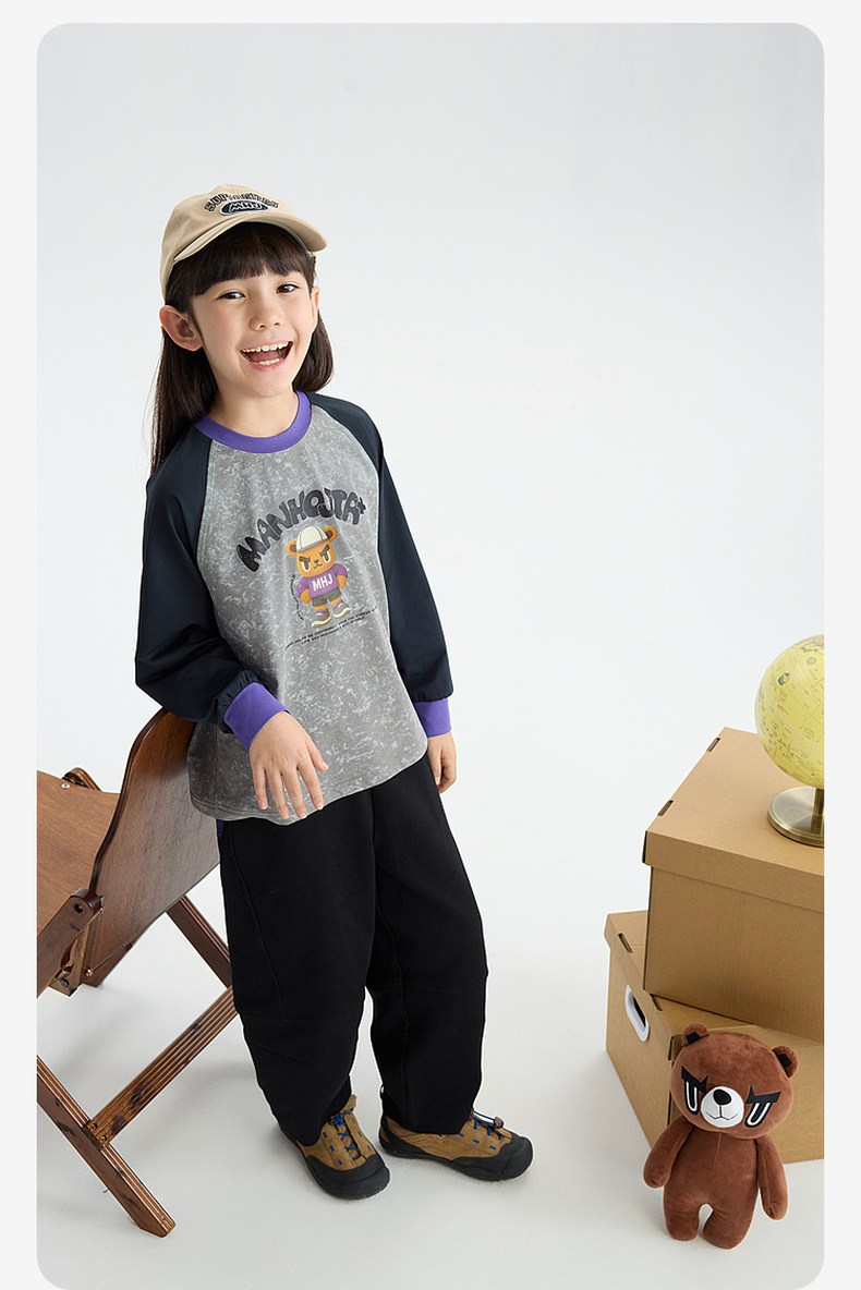 MANHOJIA【轻松裤】儿童卫裤春新品亲肤柔软松弛廓形肌理感长裤
