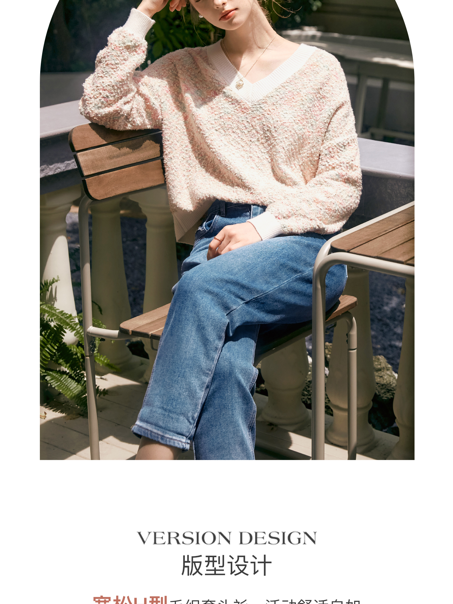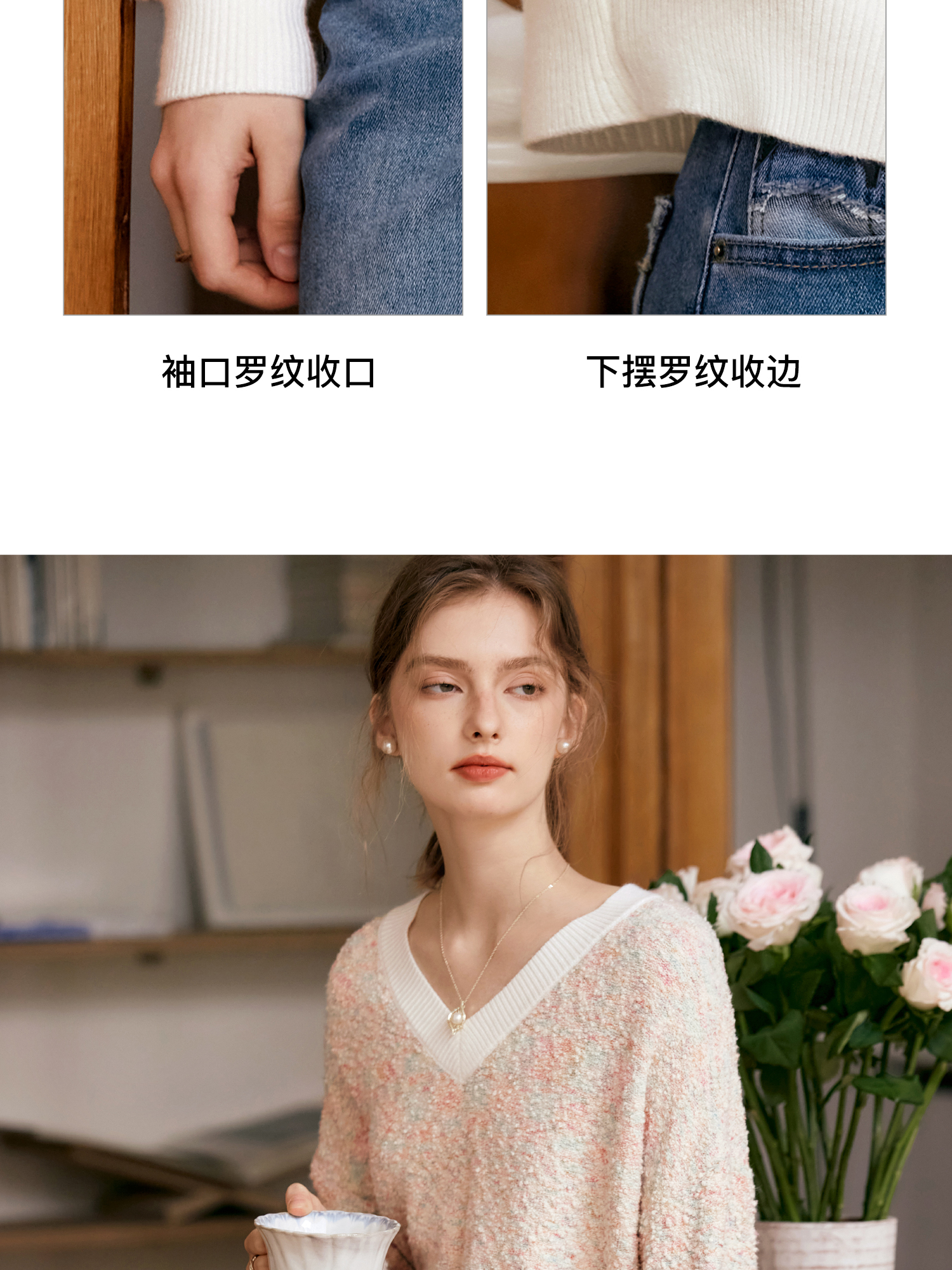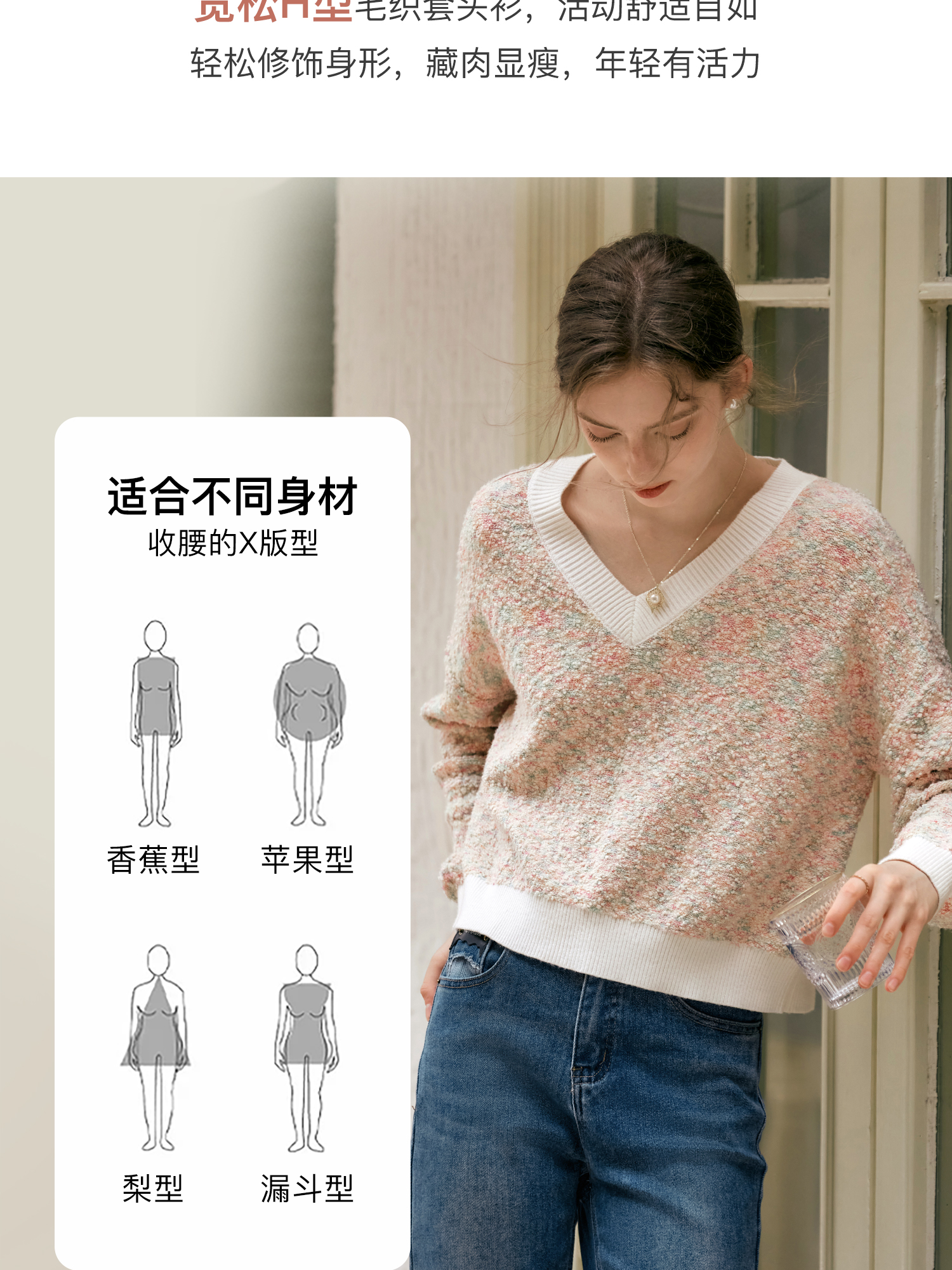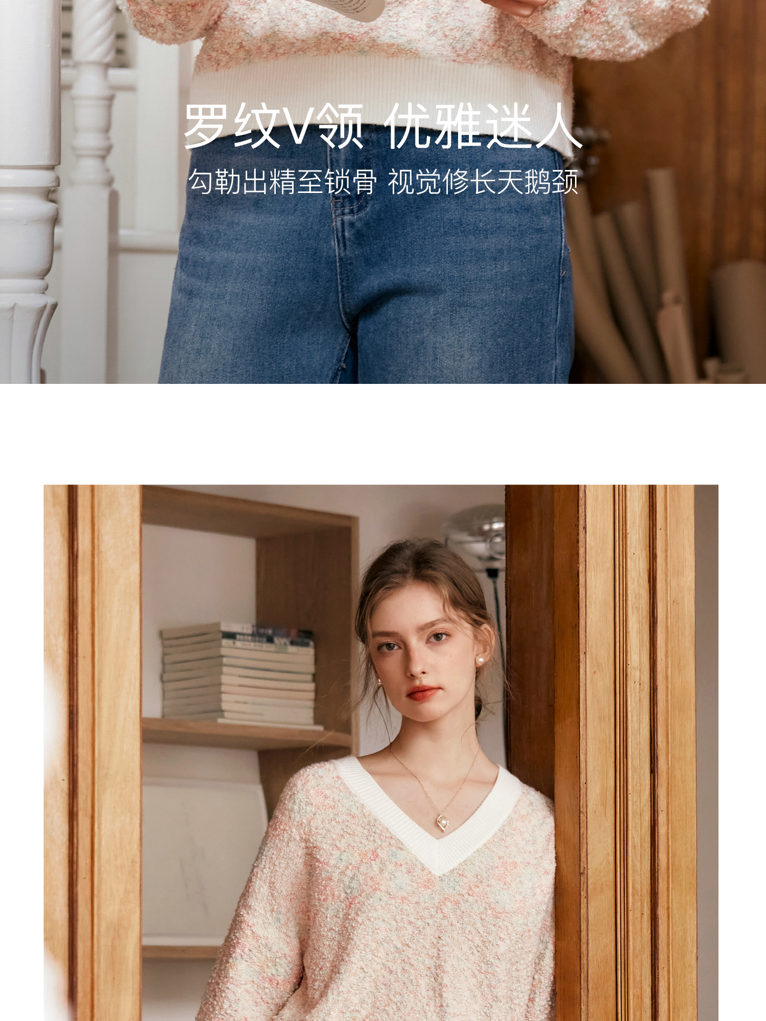 OLrain欧芮儿法式幻彩V领针织衫女秋季2024新款宽松落肩显瘦上衣