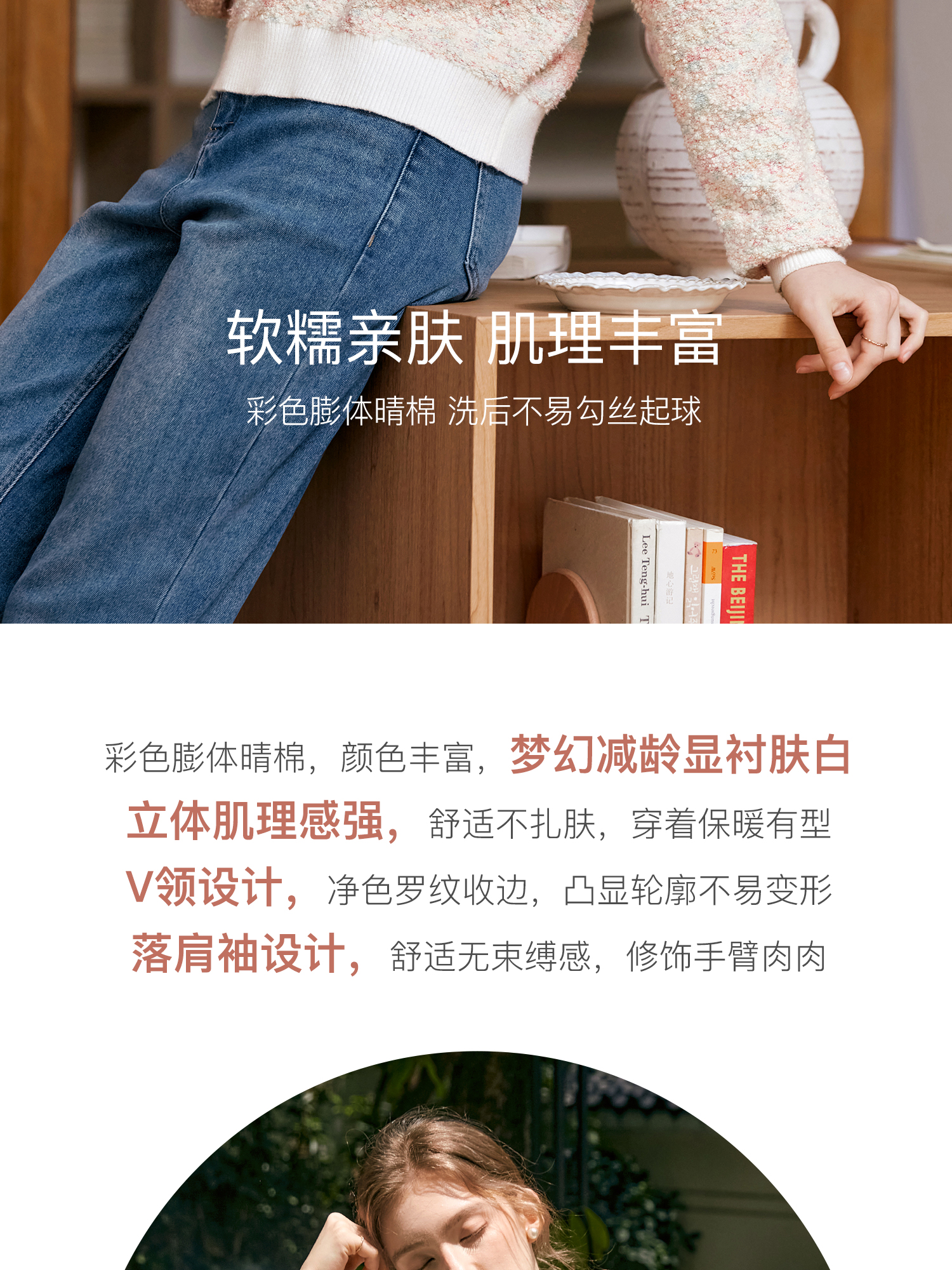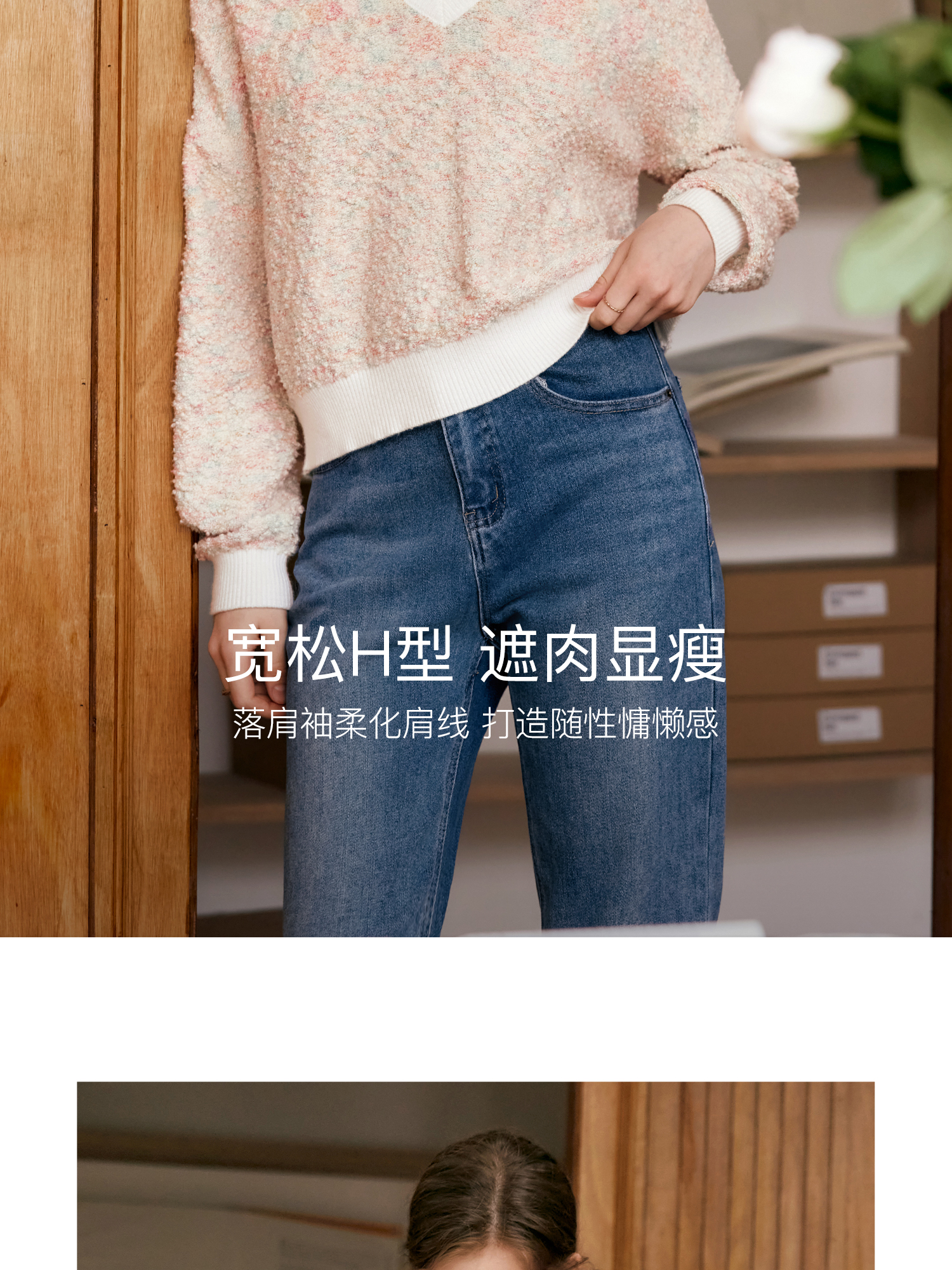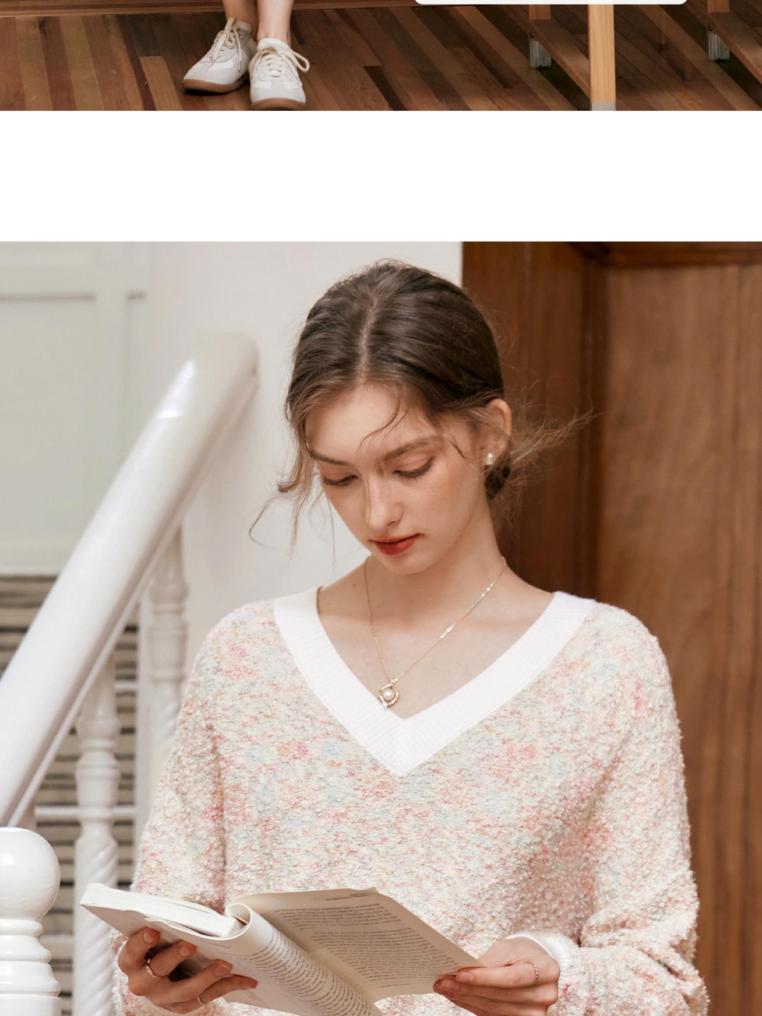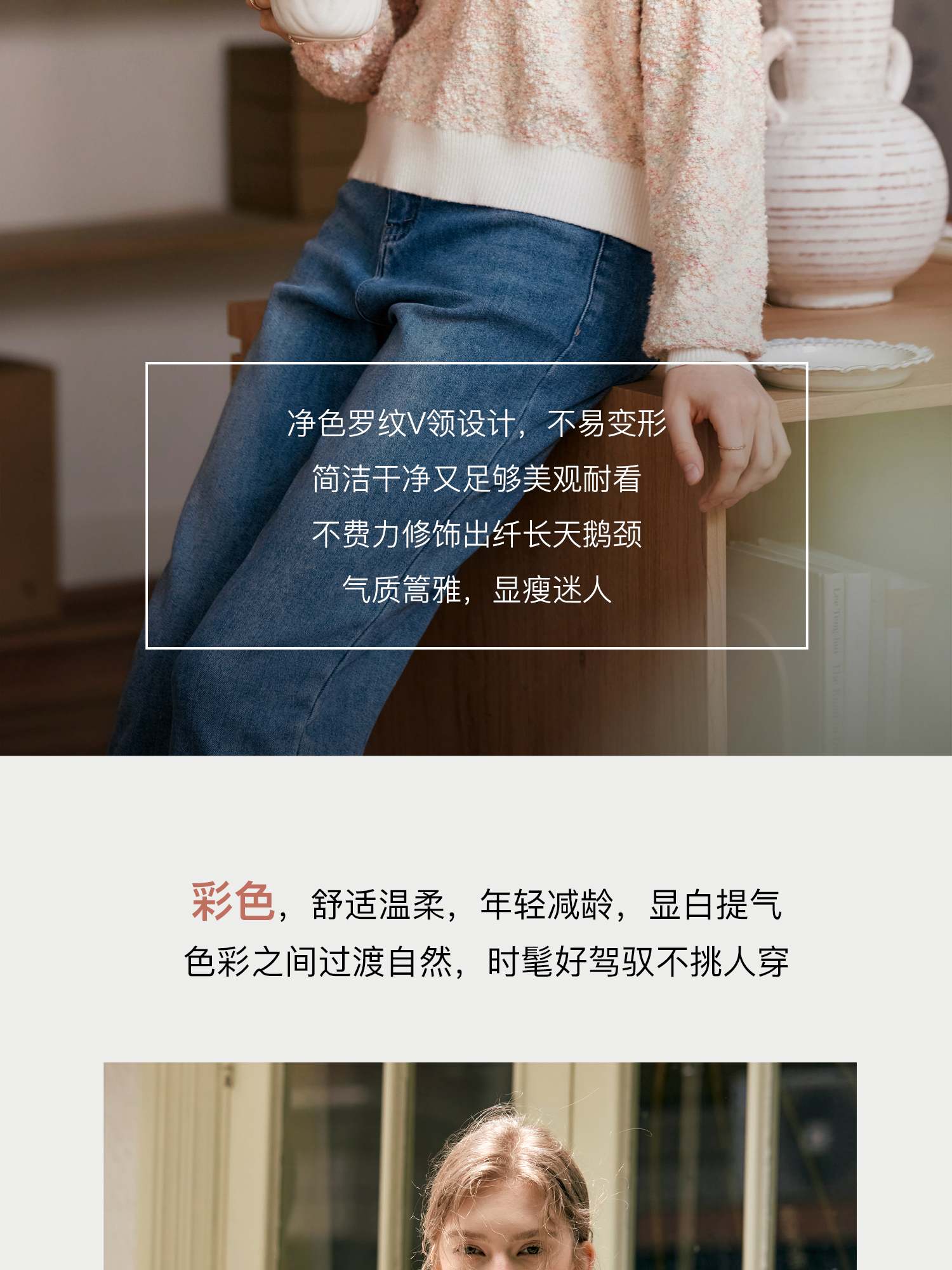OLrain欧芮儿法式幻彩V领针织衫女秋季2024新款宽松落肩显瘦上衣