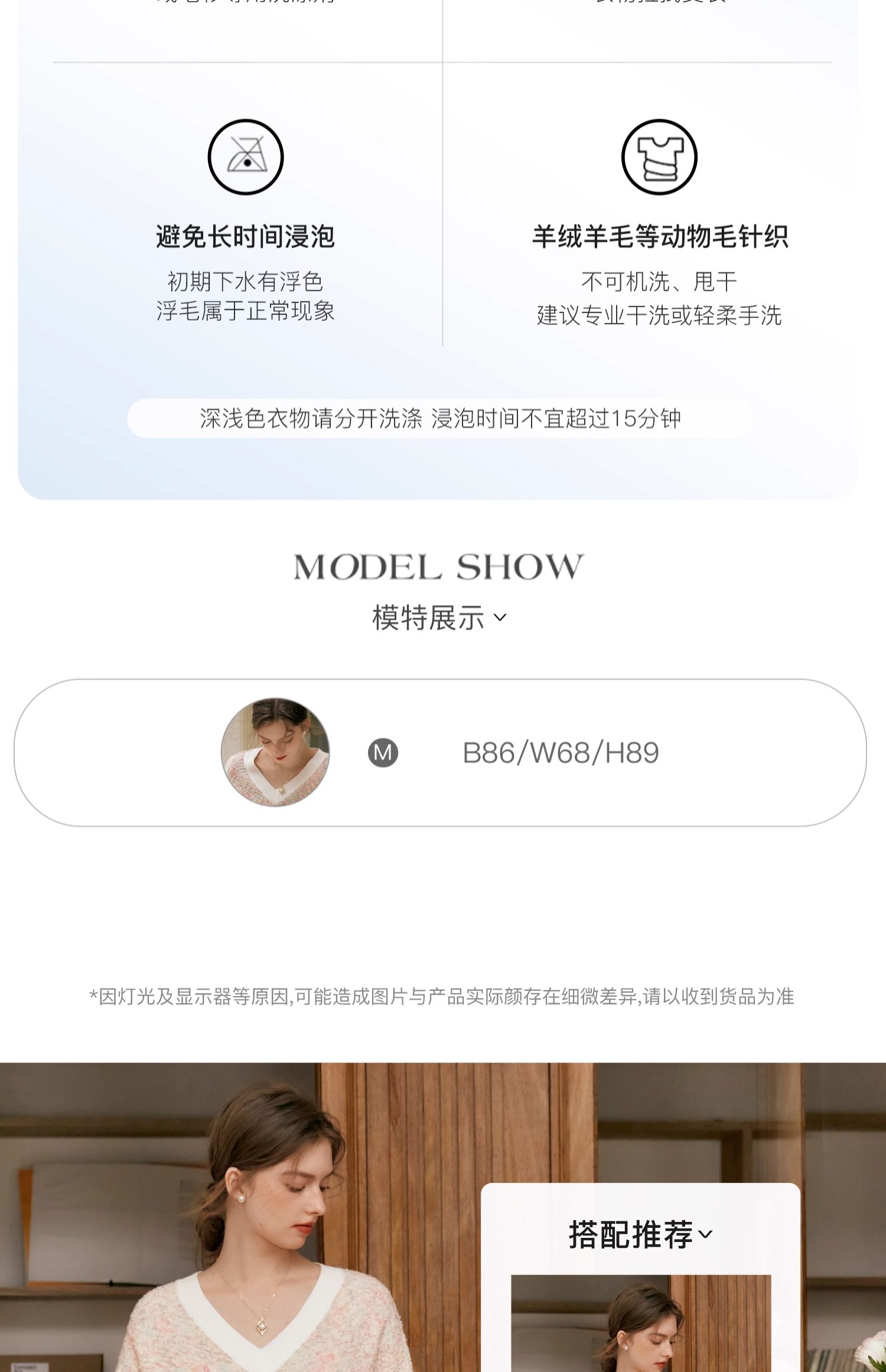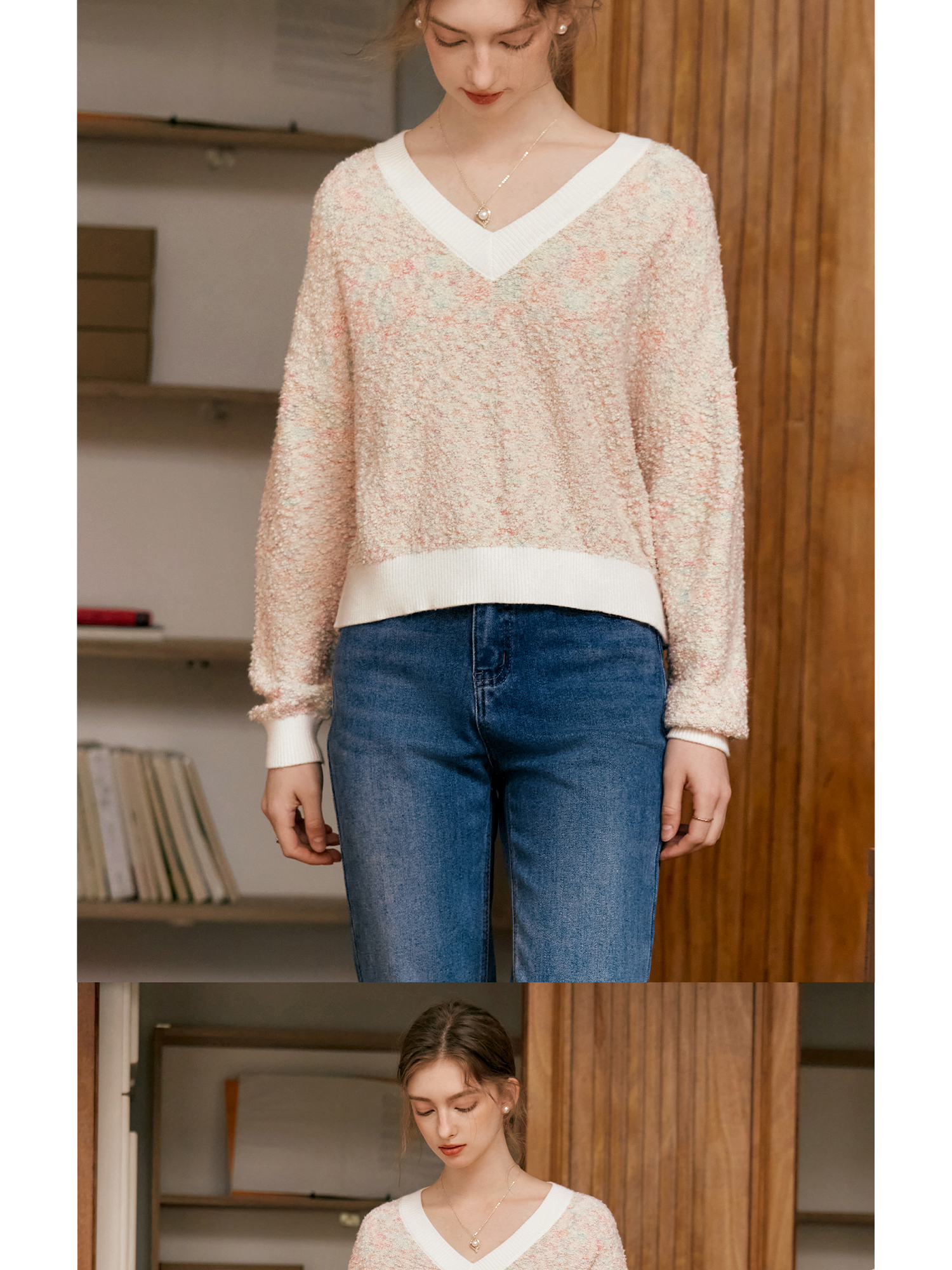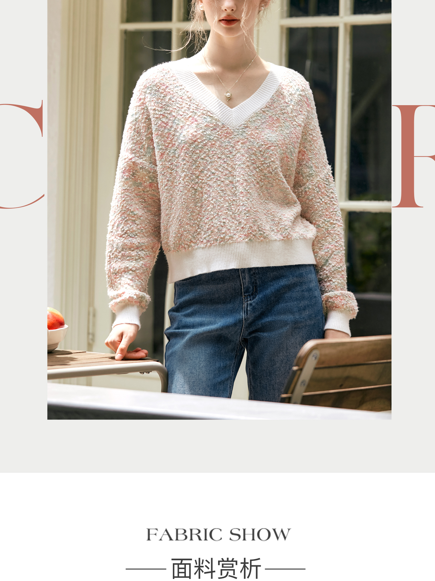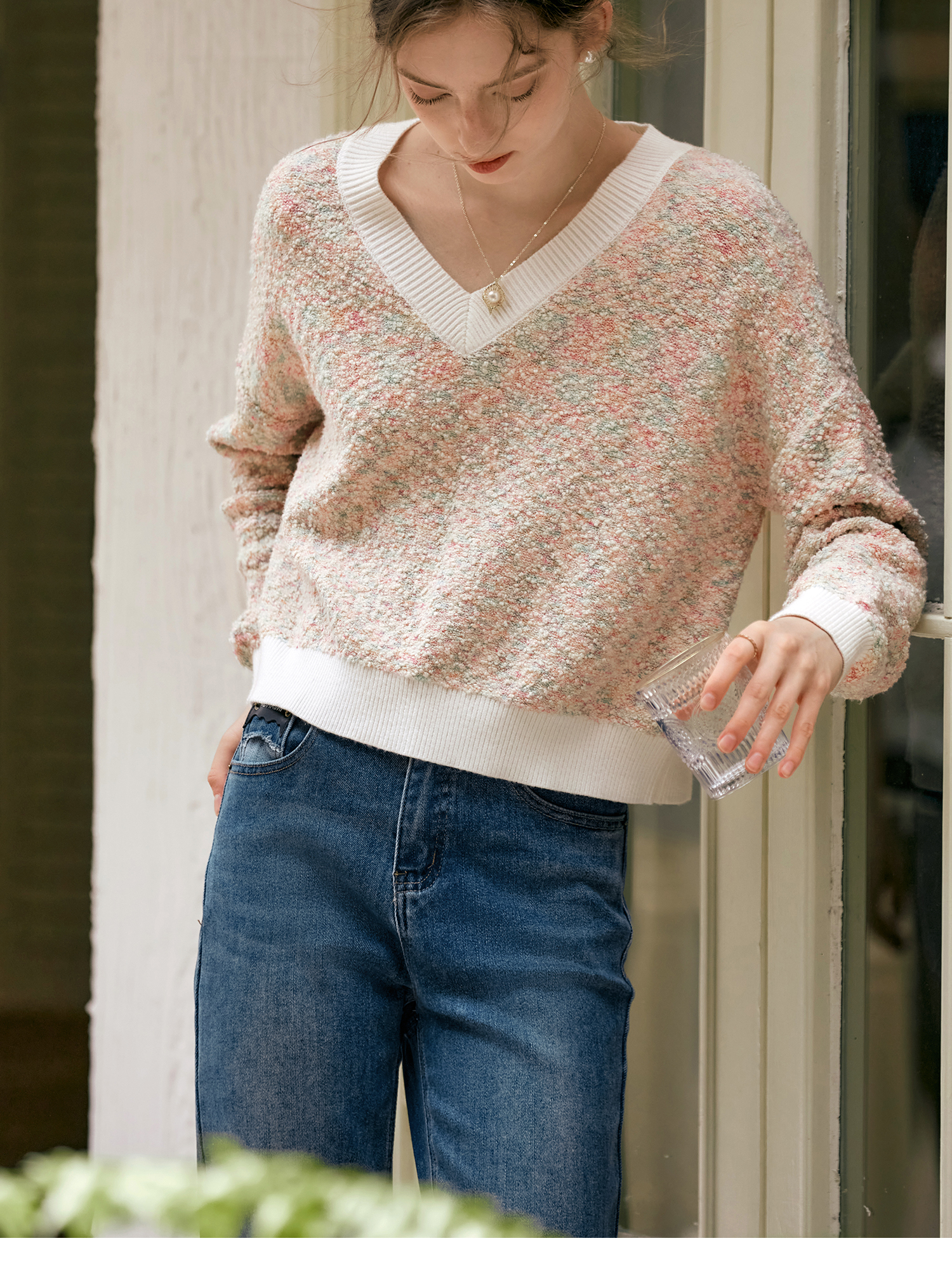OLrain欧芮儿法式幻彩V领针织衫女秋季2024新款宽松落肩显瘦上衣