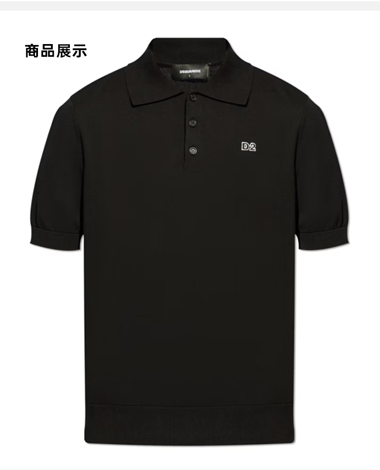 DSQUARED2 男士“D2”刺绣徽标棉质短袖polo衫 黑色 S74HA1452 D13018 900