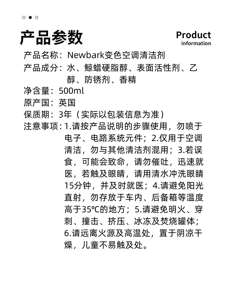 英国进口Newbark空调清洁剂500ml