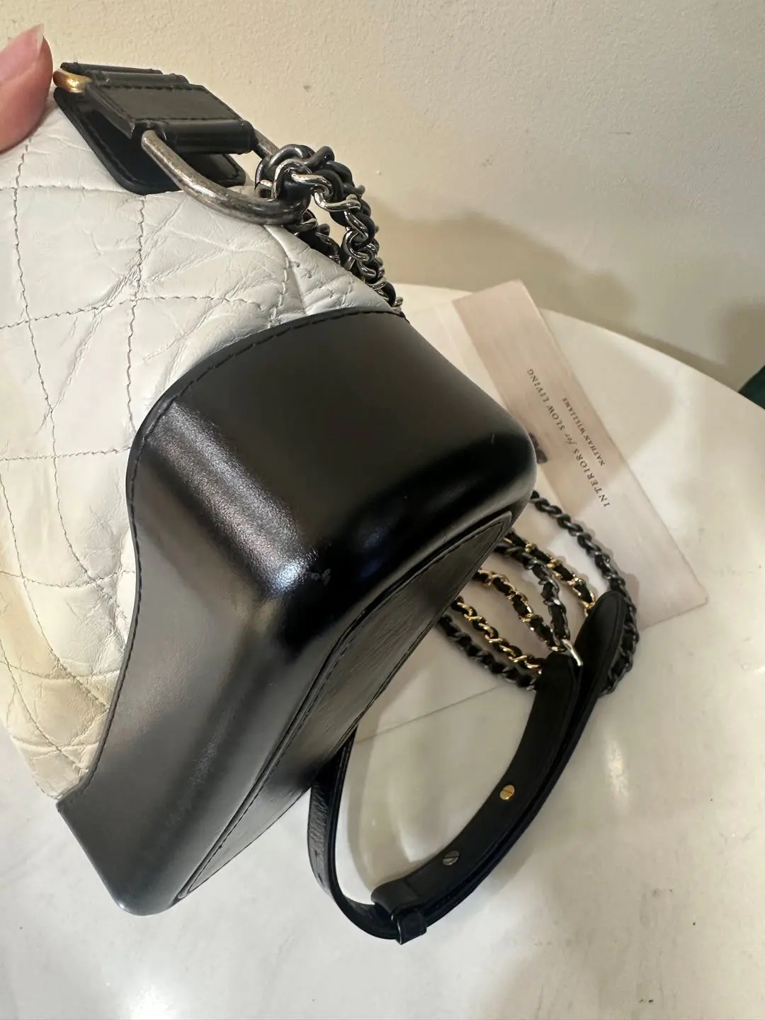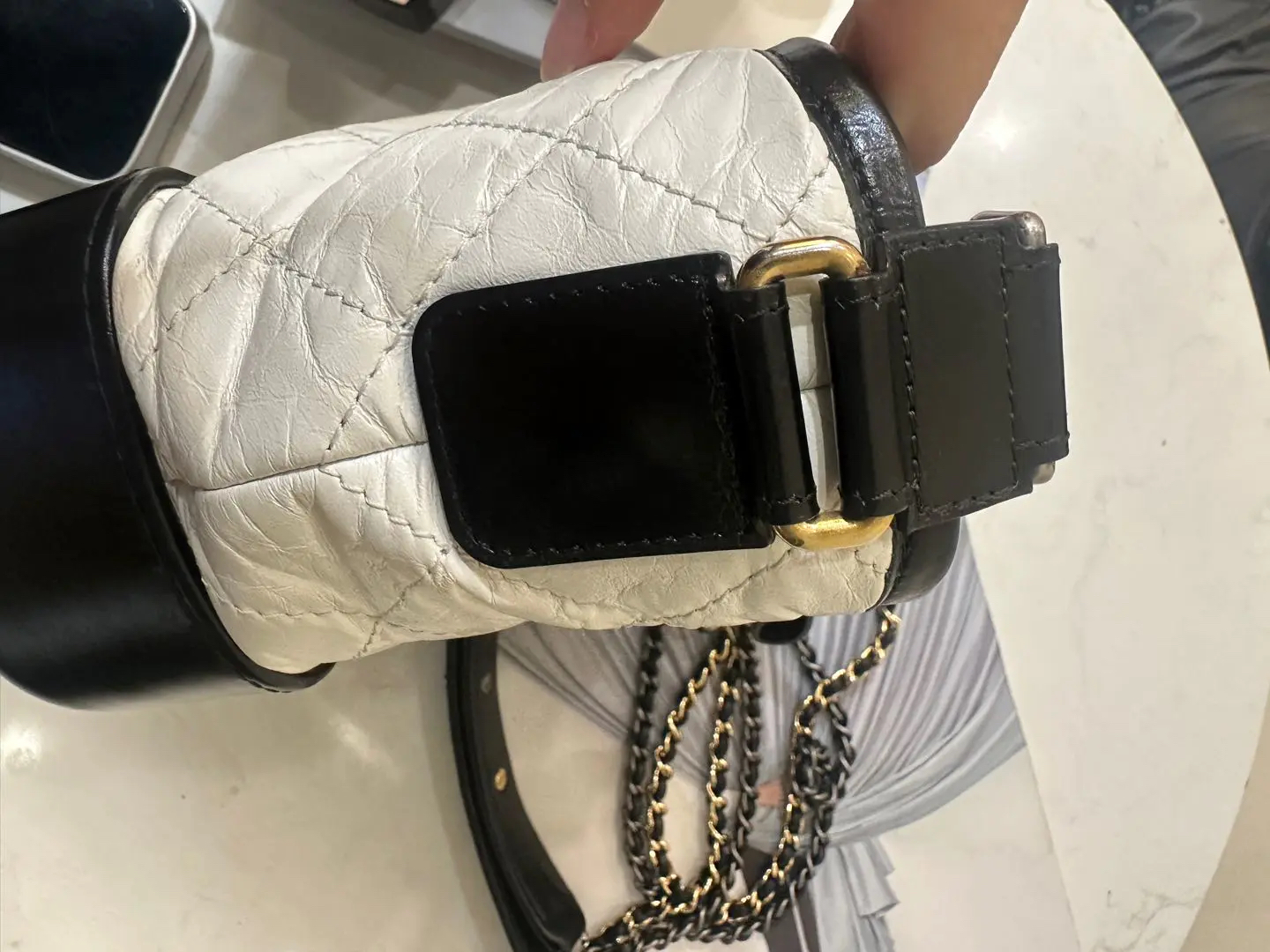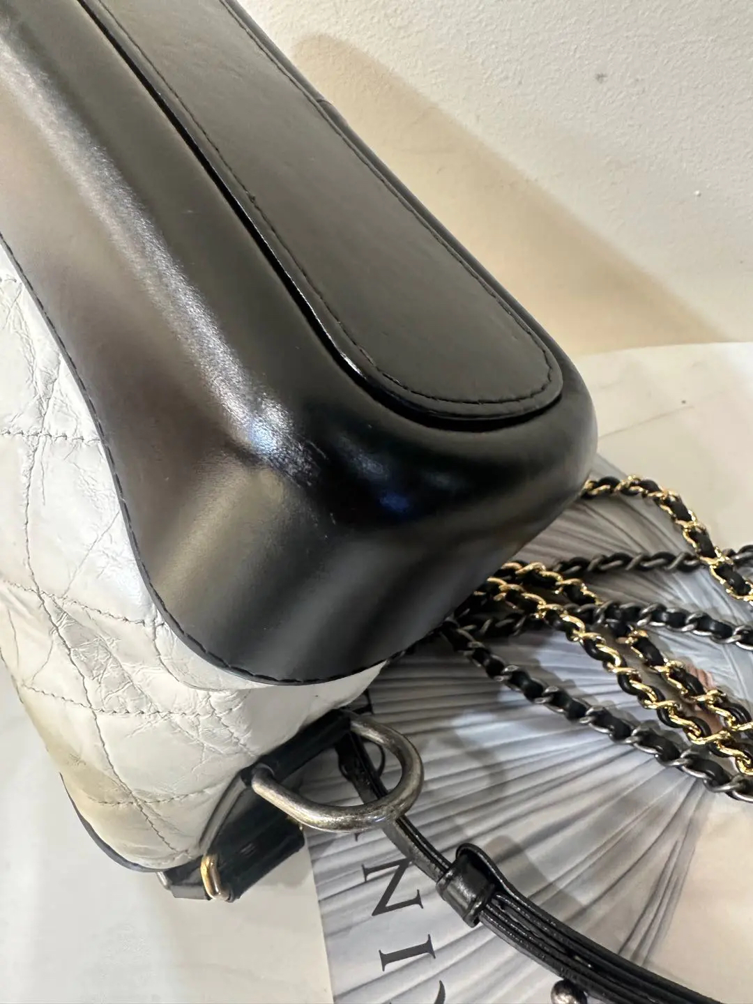 【商品详情】正品二手 Chanel 小号 黑白熊猫色 油蜡牛皮 流浪包 😊95新 镭射24开 20x15 配件:防尘袋 盒子。包身正常使用感。包型在线 多种背法