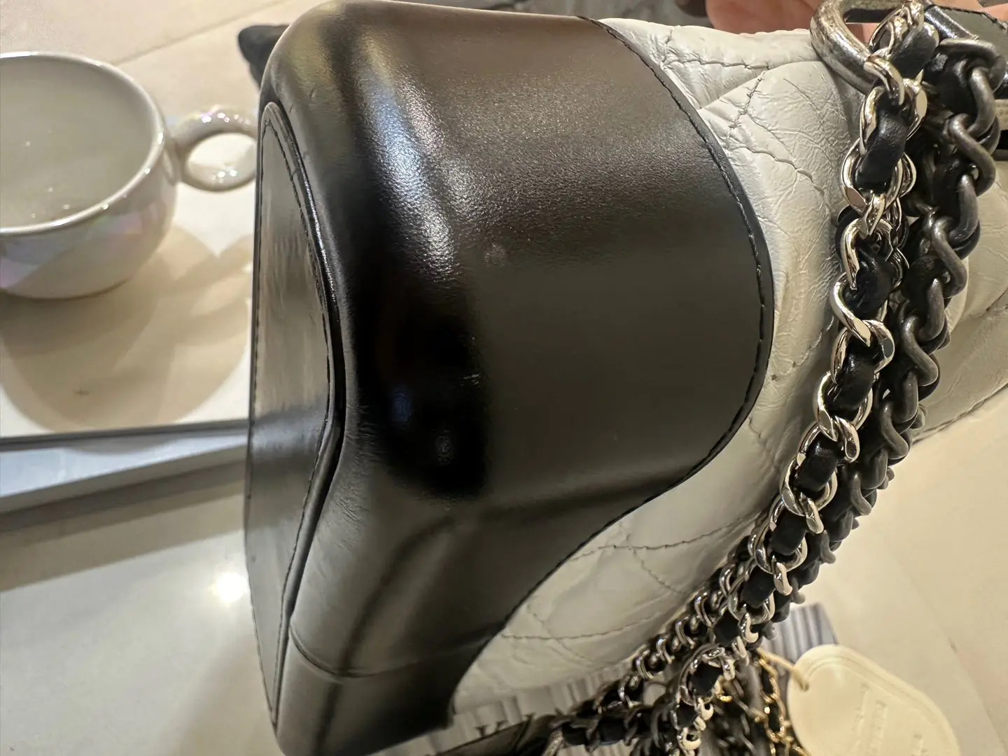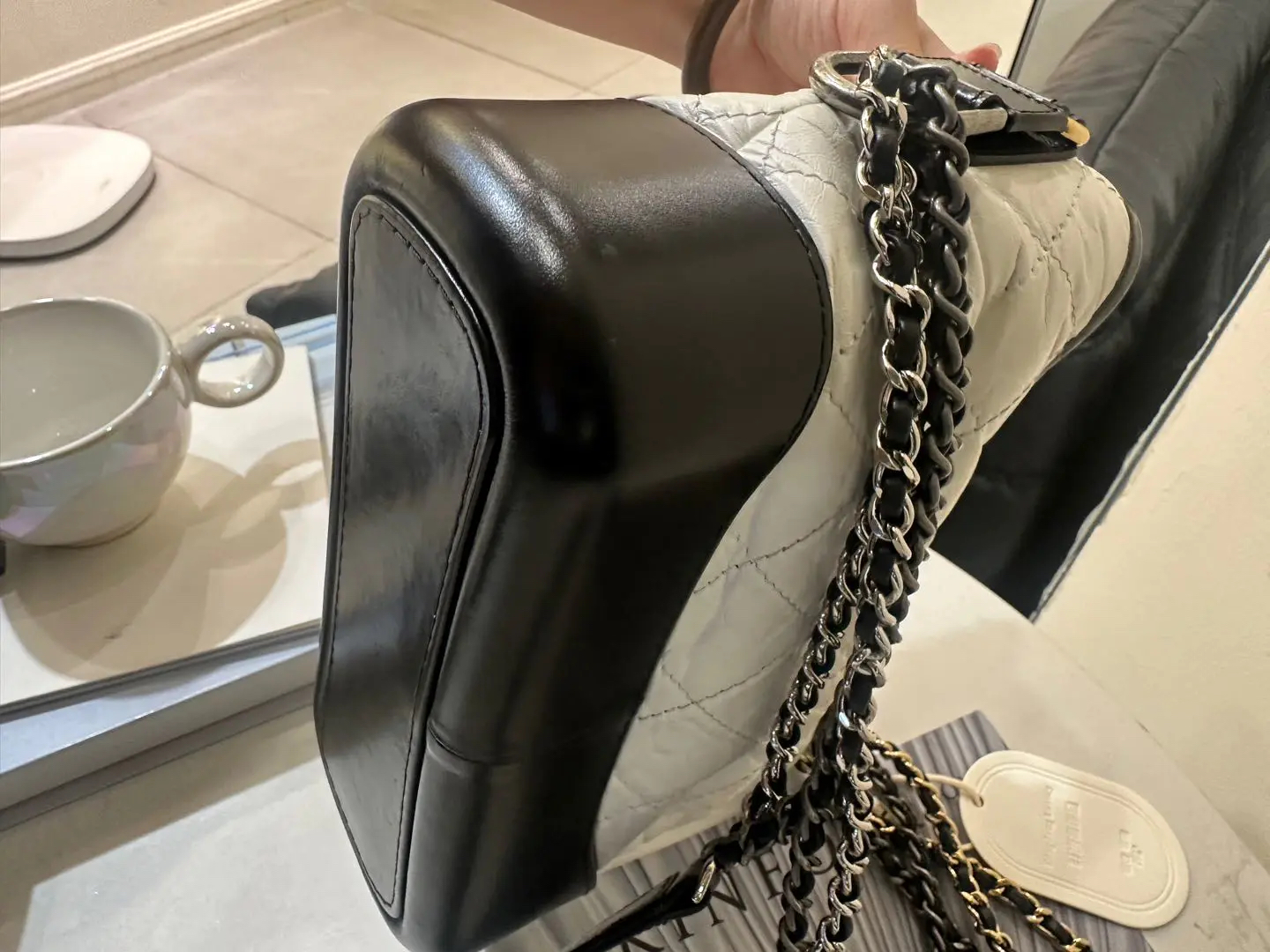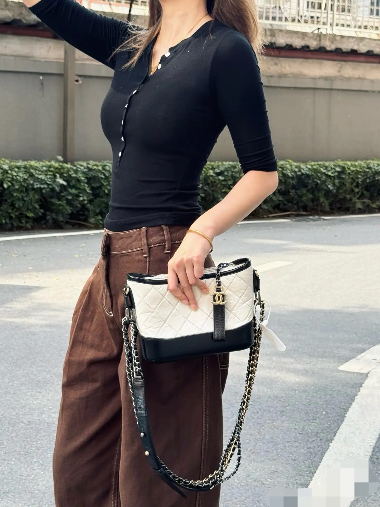 【商品详情】正品二手 Chanel 小号 黑白熊猫色 油蜡牛皮 流浪包 😊95新 镭射24开 20x15 配件:防尘袋 盒子。包身正常使用感。包型在线 多种背法