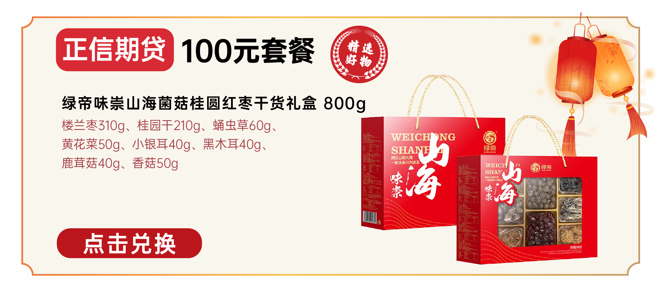 正信期货100元套餐 绿帝味崇山海菌菇桂圆红枣干货礼盒800g