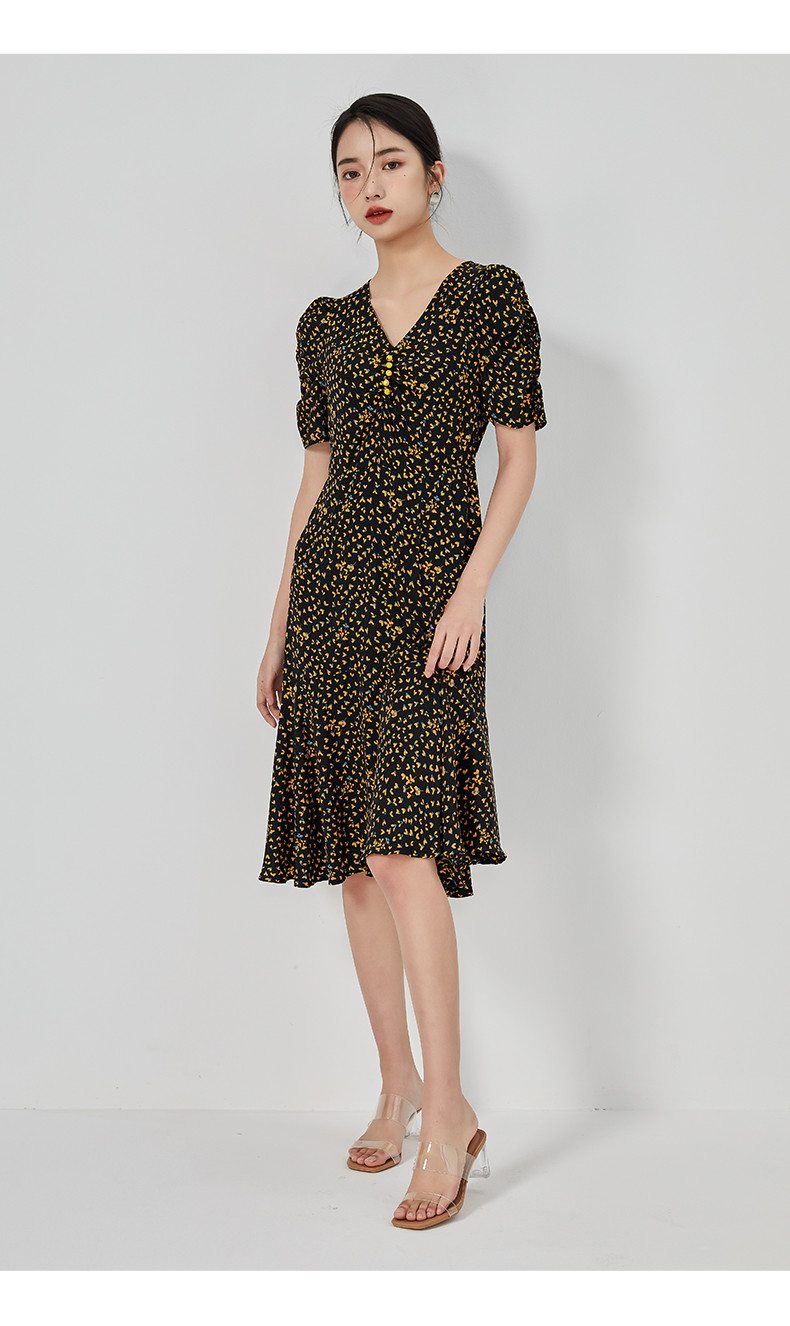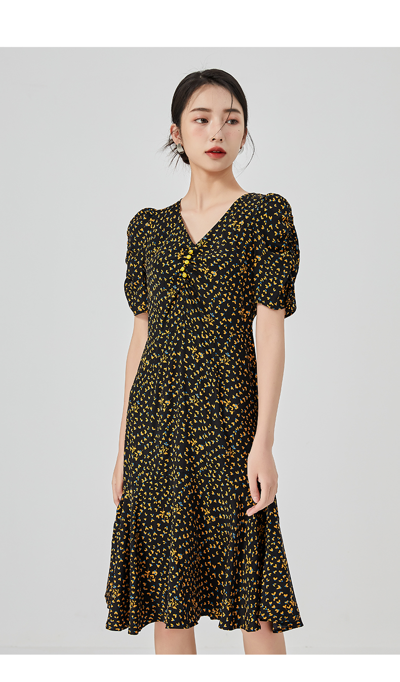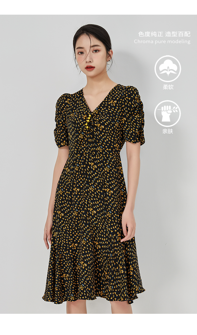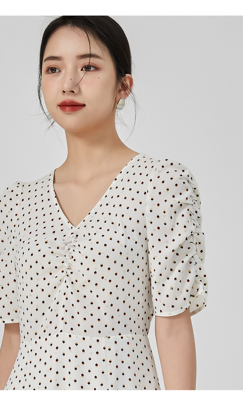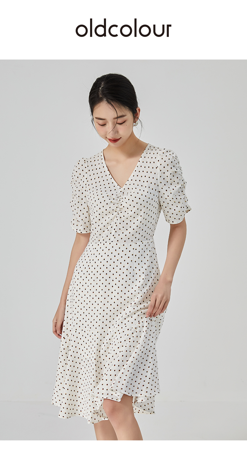 oldcolour2023夏季新款时尚气质薄款气质V领碎花连衣裙GN21101761