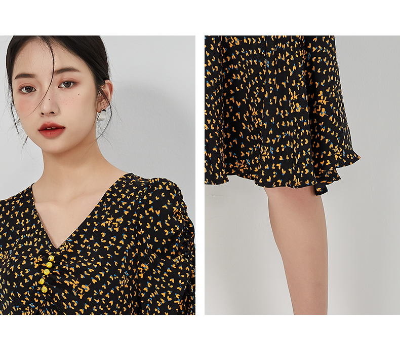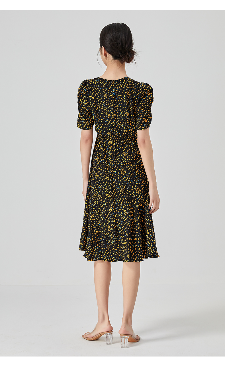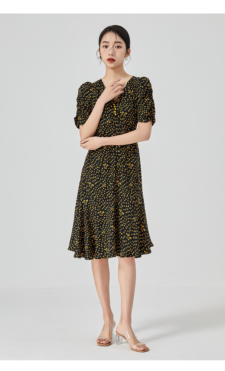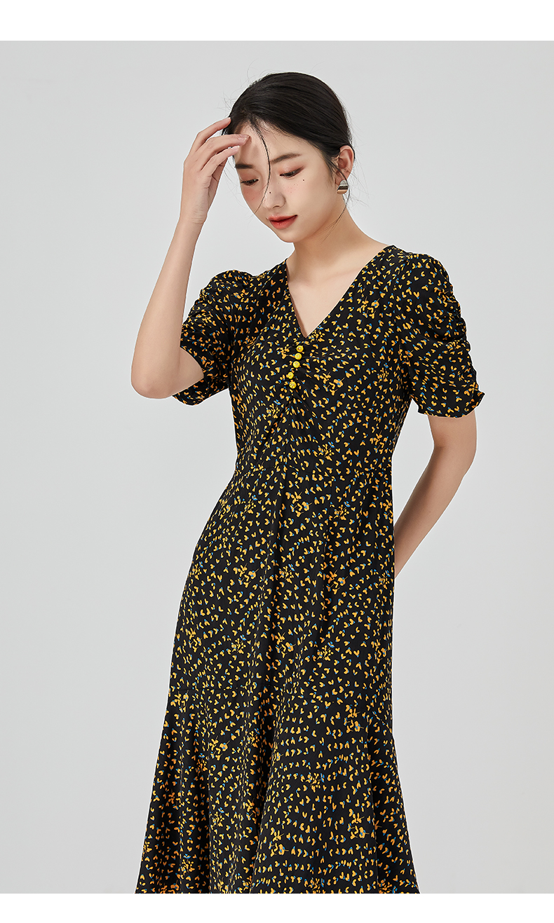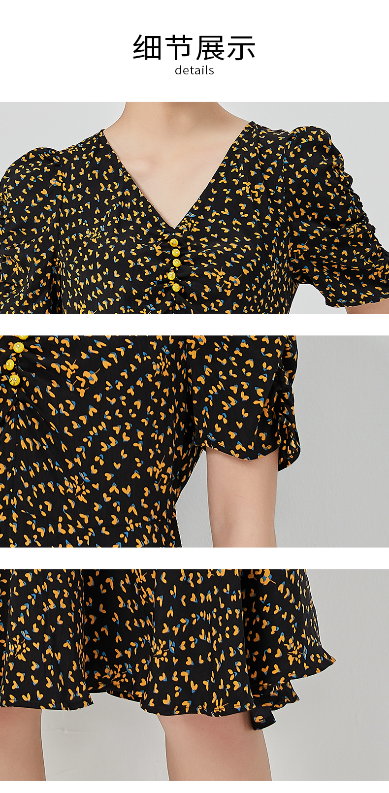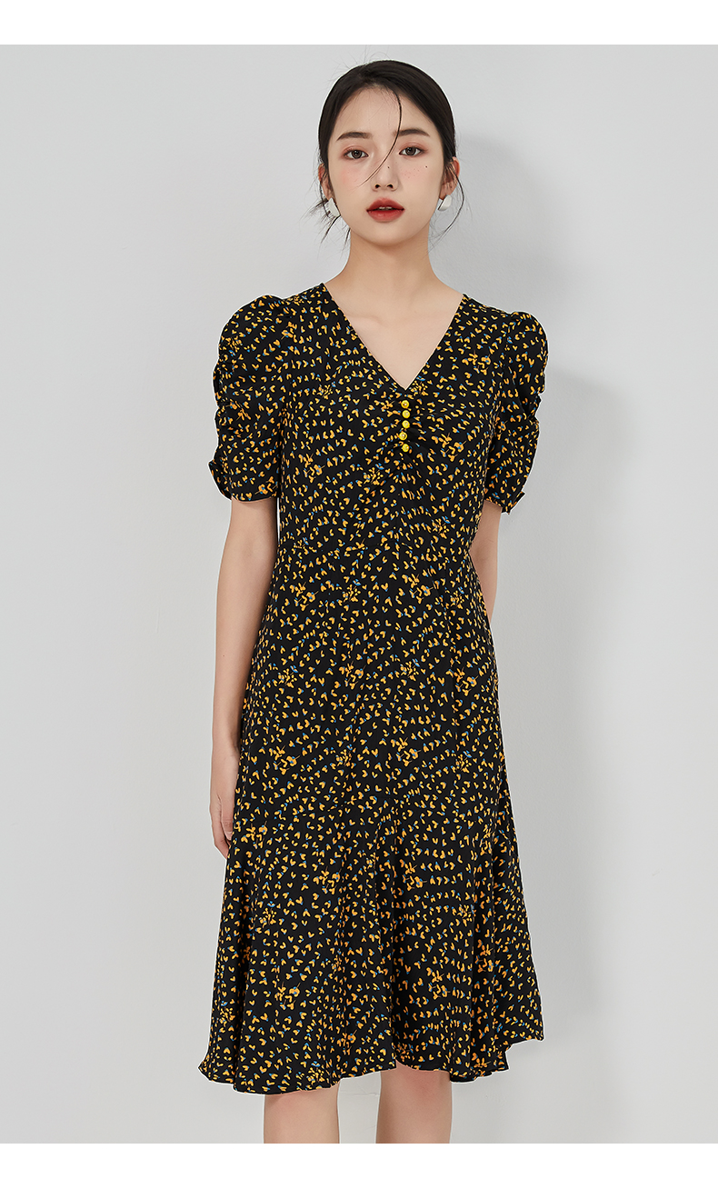 oldcolour2023夏季新款时尚气质薄款气质V领碎花连衣裙GN21101761
