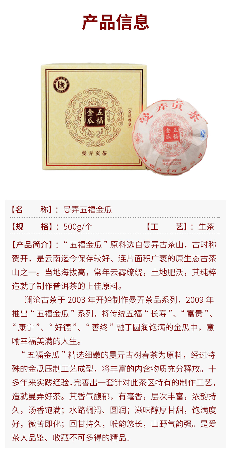 【开仓专享】澜沧古茶2020年紫龙瑞贡金瓜生茶500g+2017年邦崴金瓜生茶500g+2014年曼弄五福金瓜500g