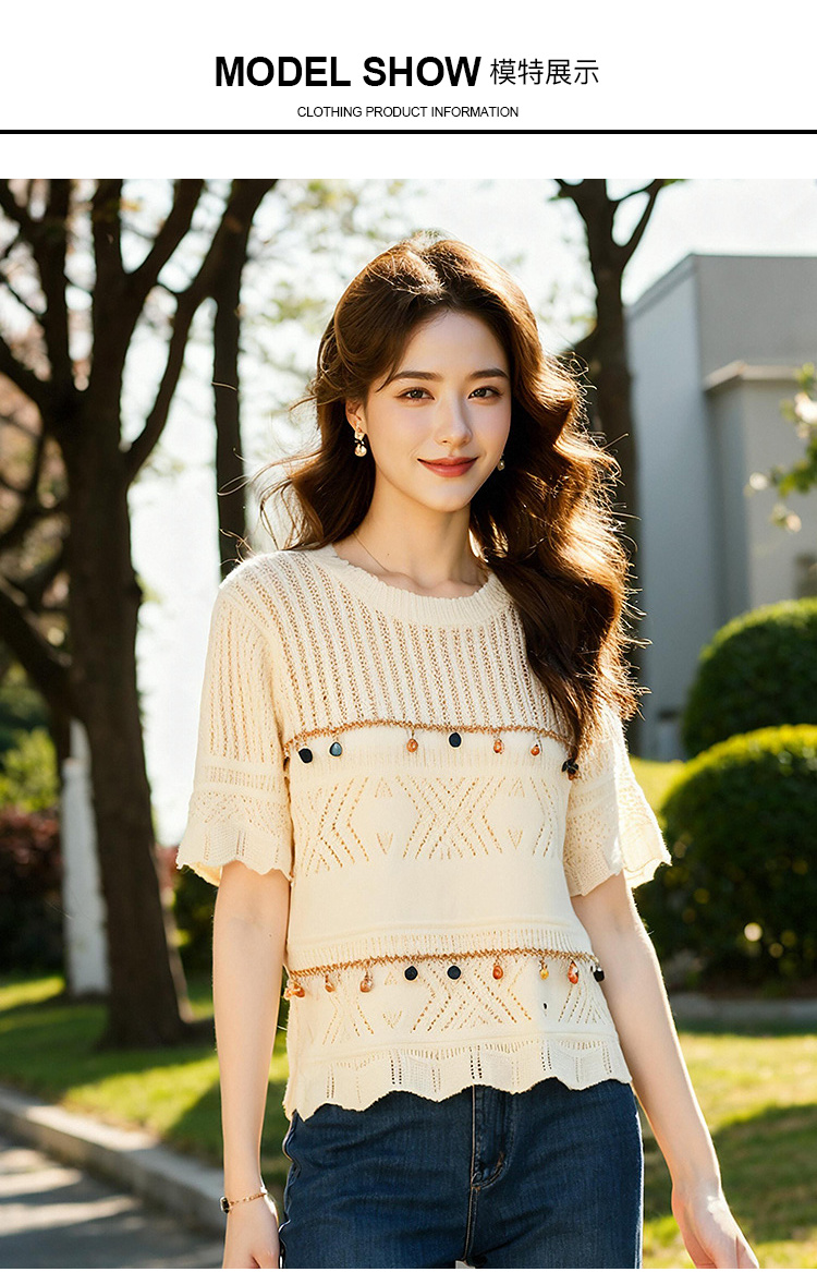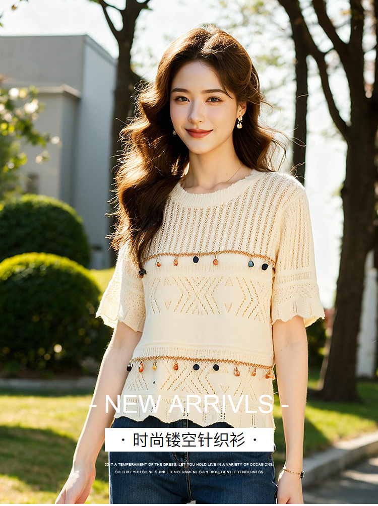 奢姿大码女装2025夏季镂空设计减龄针织衫胖妹妹链条时尚百搭上衣9652621888