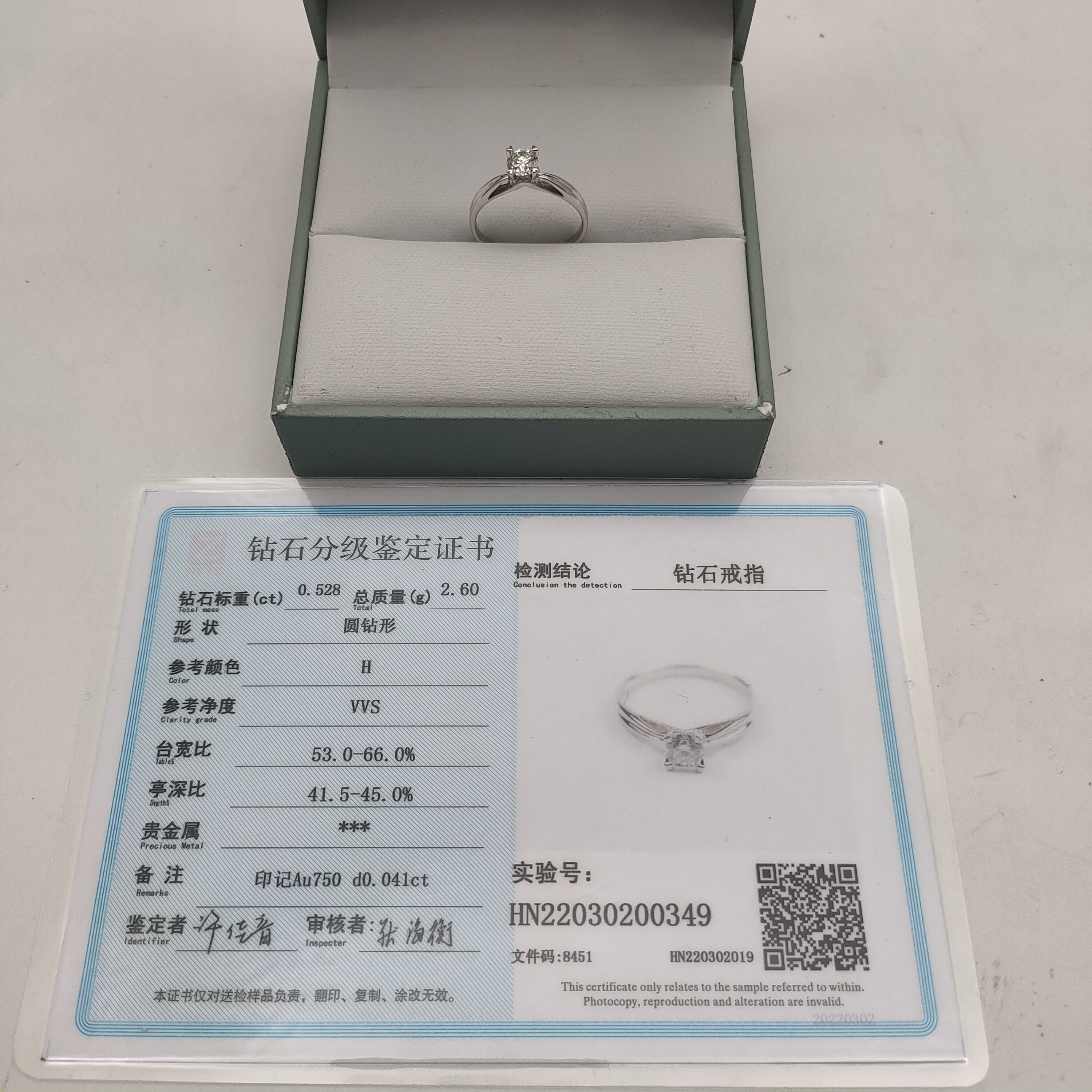 18K钻石戒指,金重:2.6克,主石,:0.528ct,颜色:H,净度:VVS ,圈口:17#,火彩一流,耀眼夺目, 经典百搭 , 超级好看,现货超低价