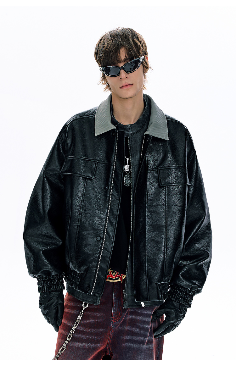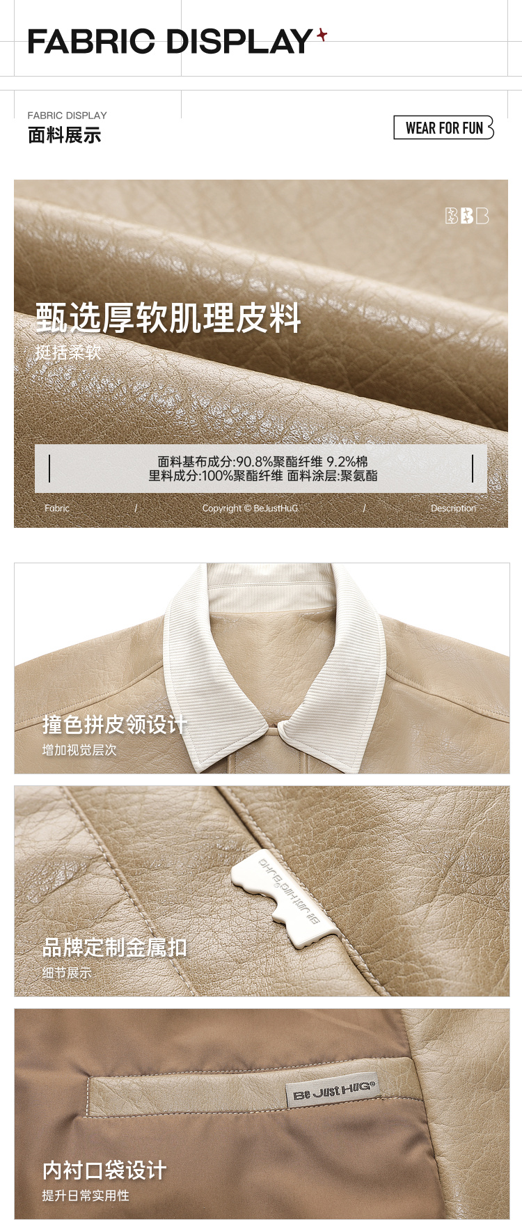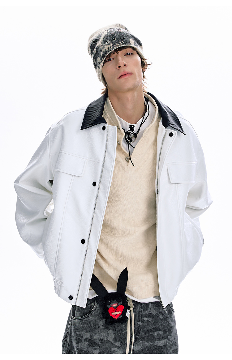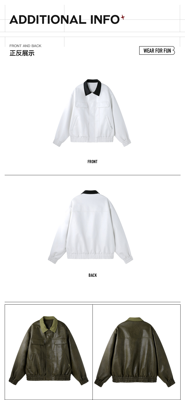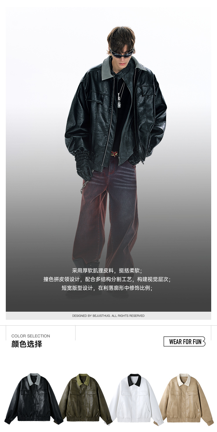 BJHG不计后果美式皮衣外套男款春季2026新款潮撞色简约短宽夹克女