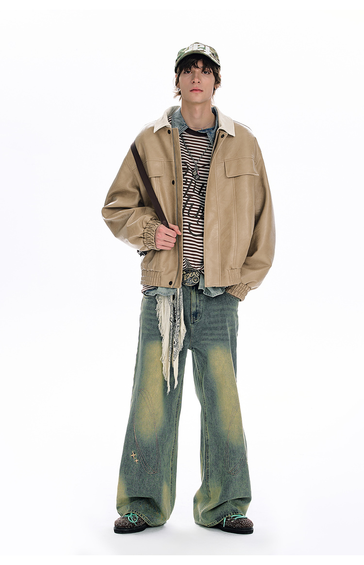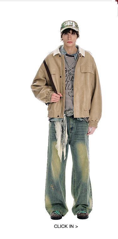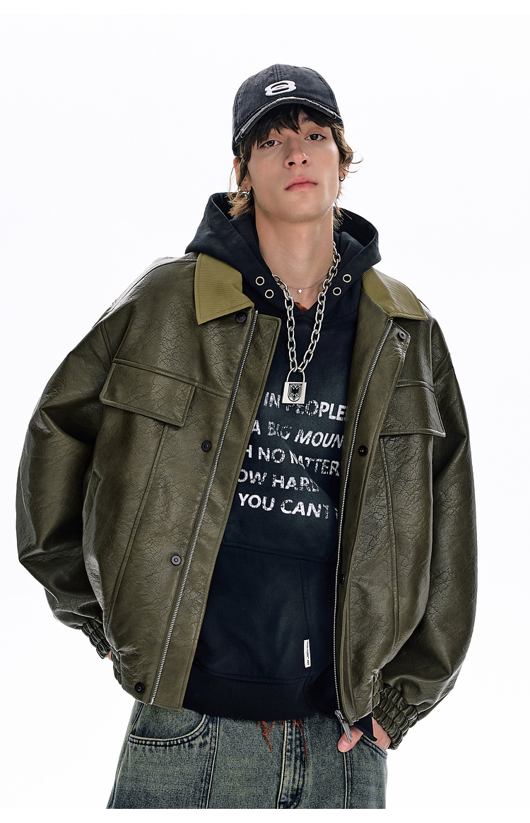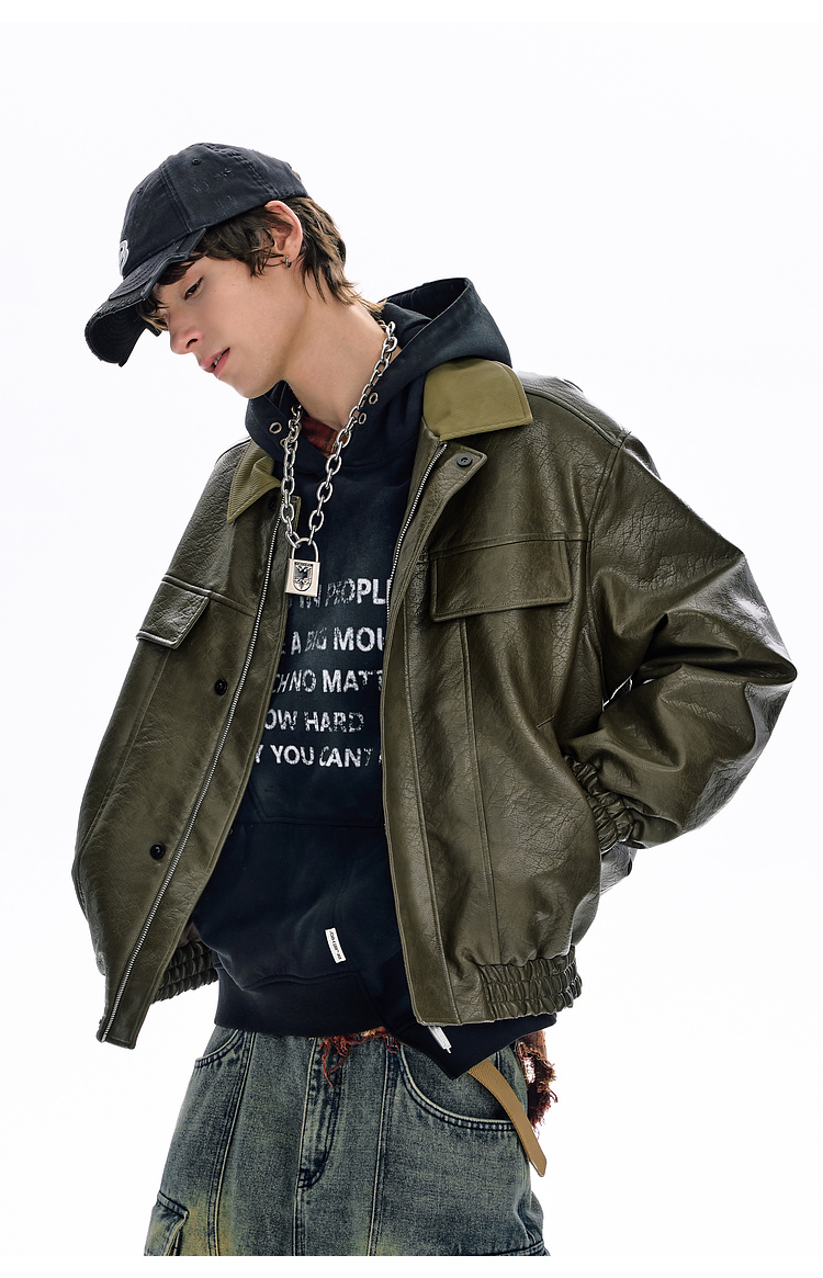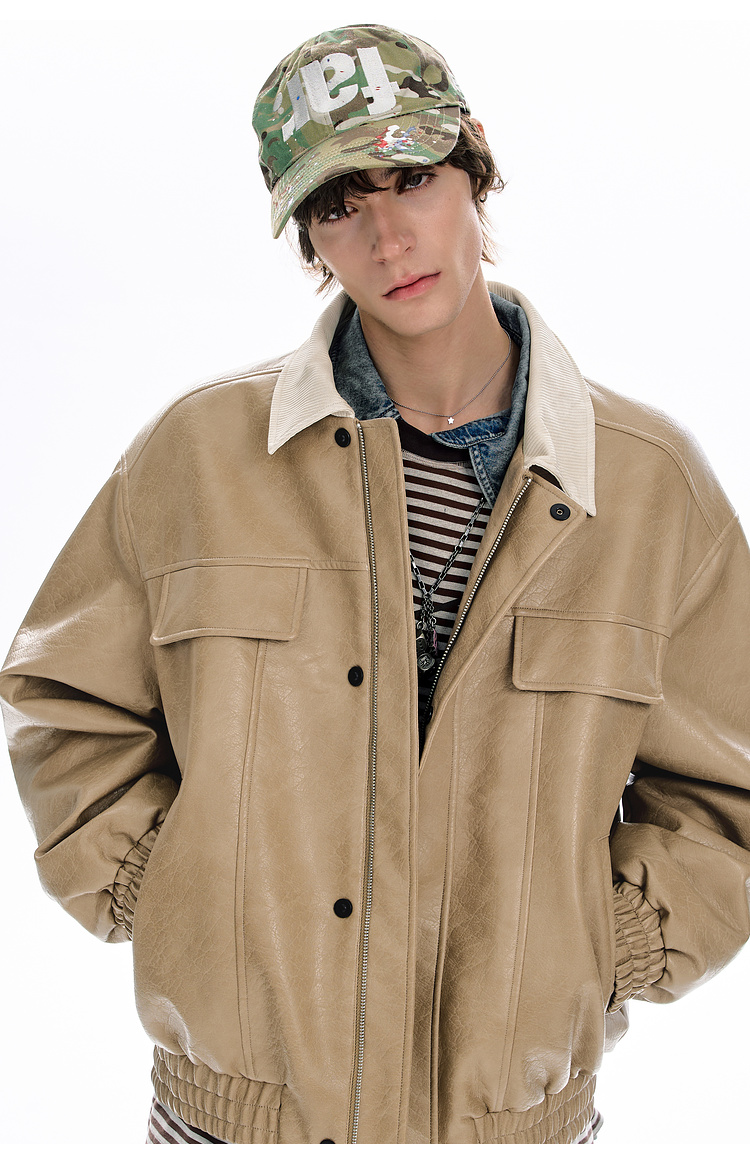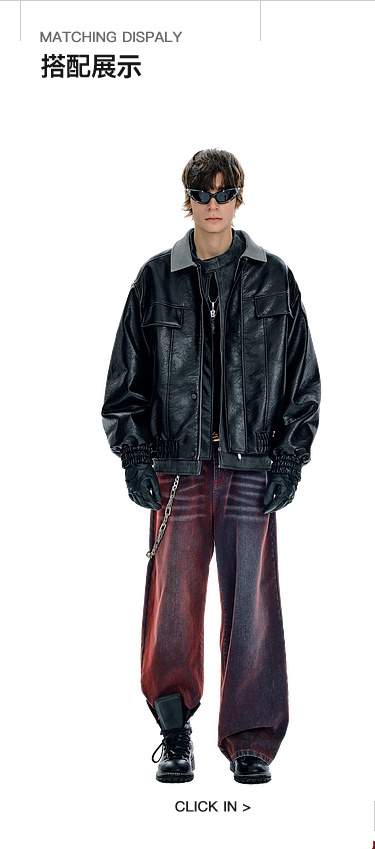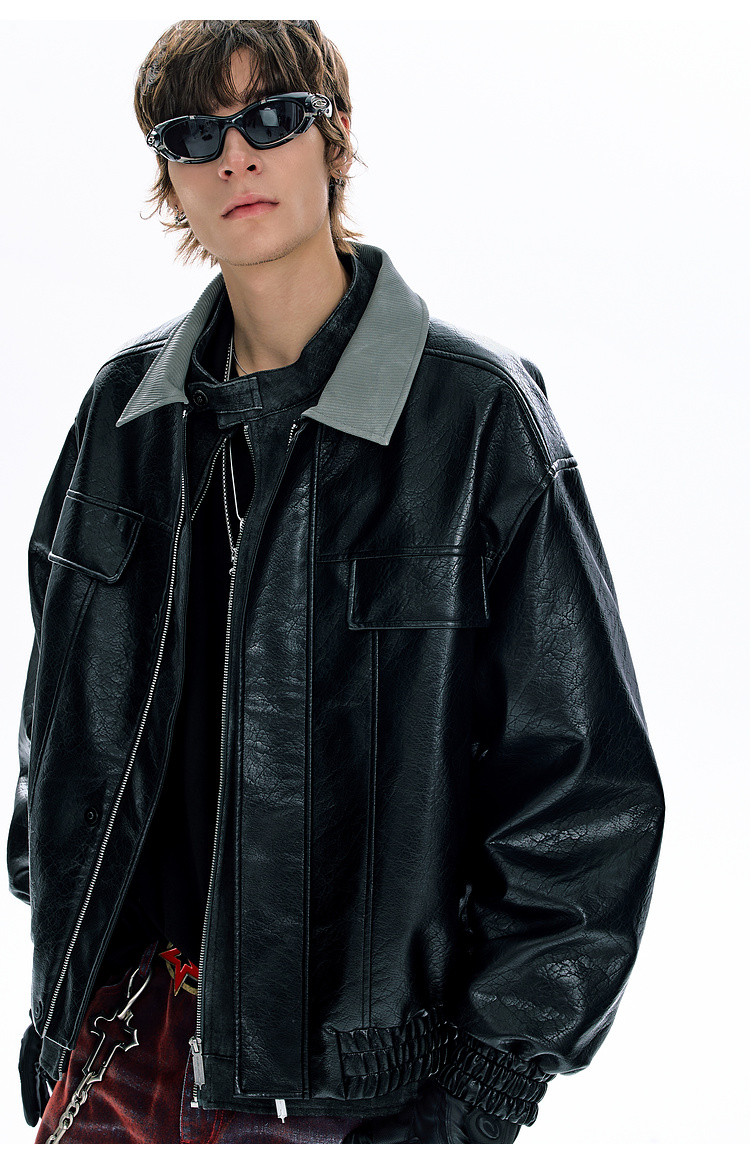 BJHG不计后果美式皮衣外套男款春季2026新款潮撞色简约短宽夹克女