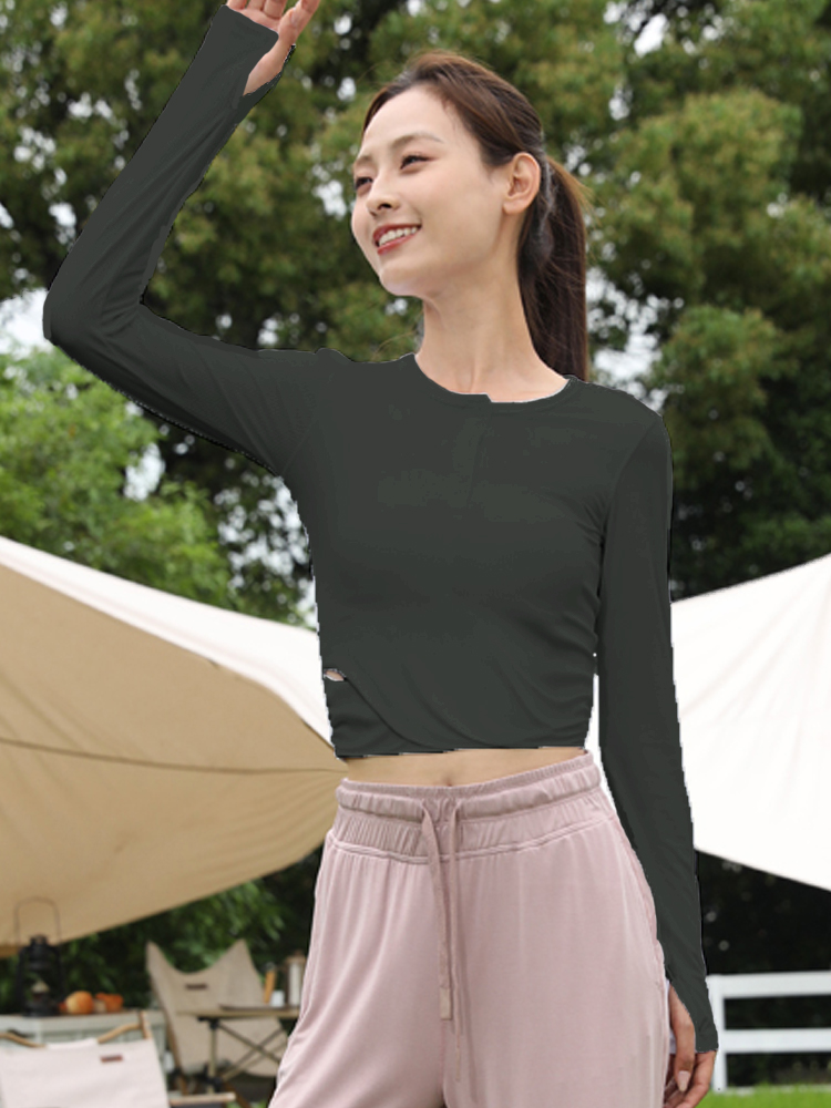 哈瓦塔带扣长袖超薄罗纹外套 H340122