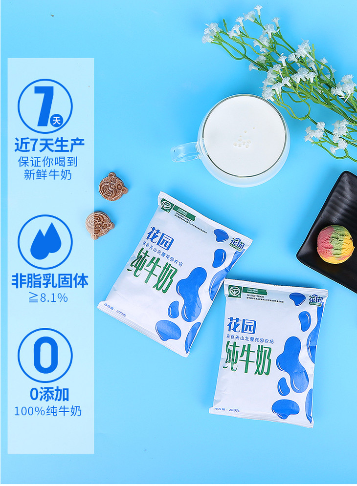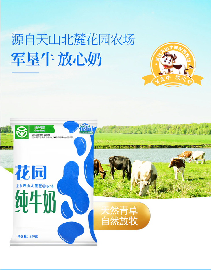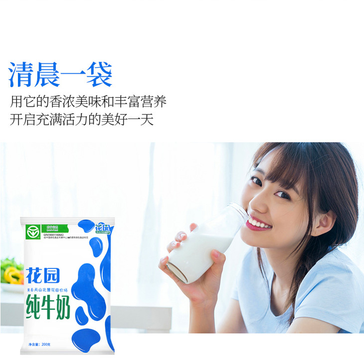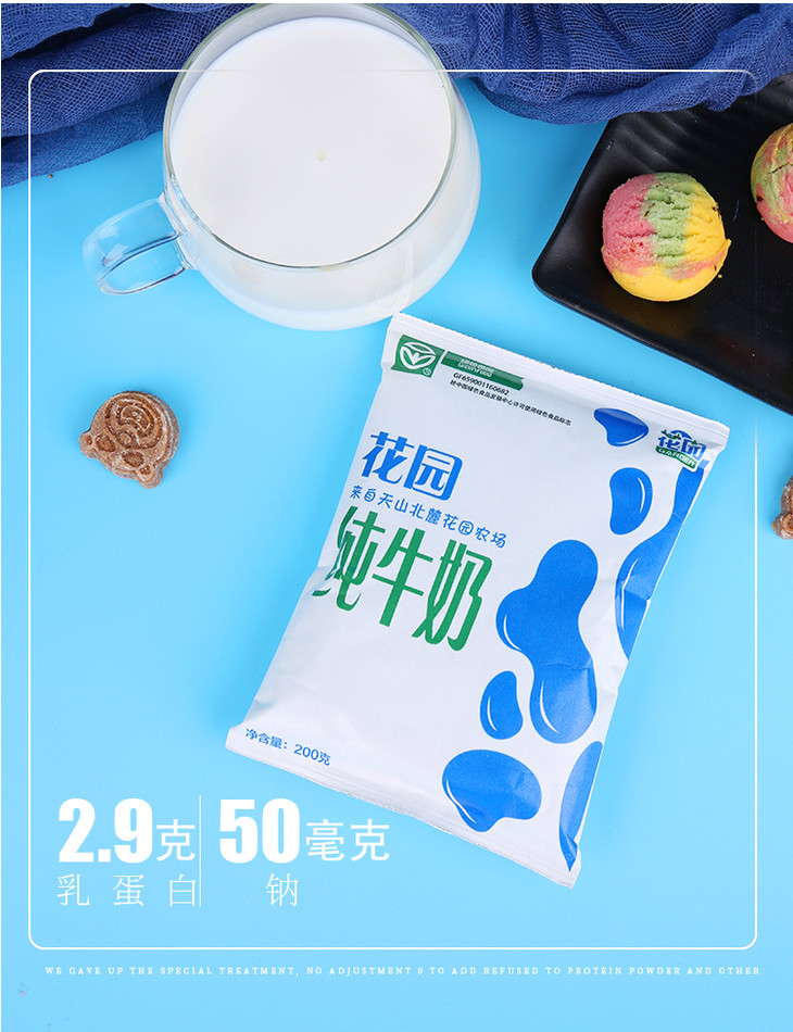 新疆花园纯牛奶(200ml*20袋/箱)生产日期:12月8日 保质期:60天