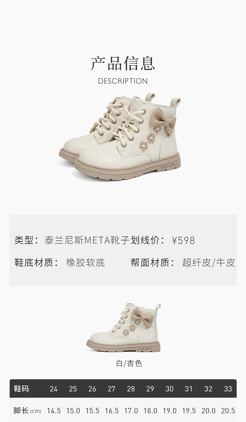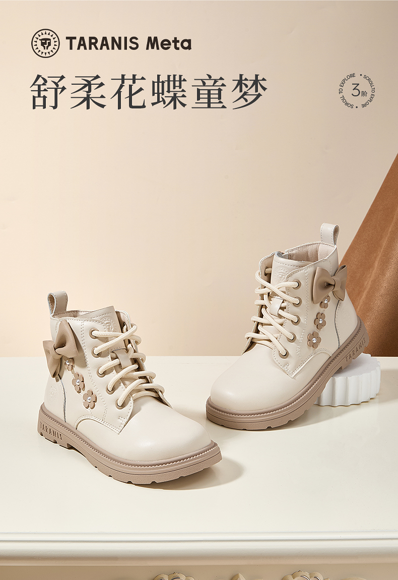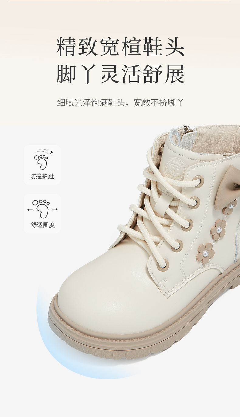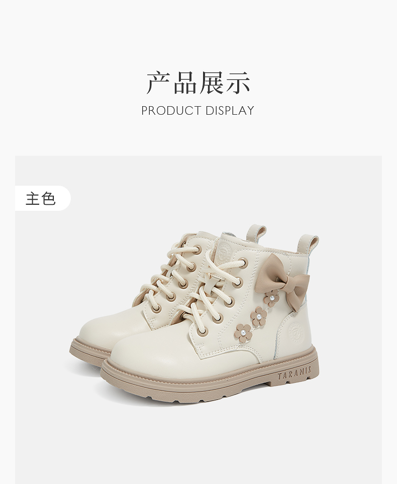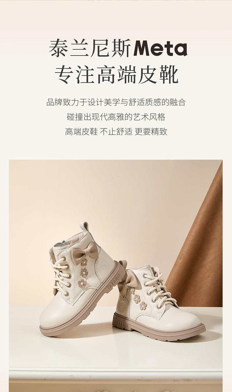 泰兰尼斯meta秋季新款女童靴子洋气马丁靴软底轻便皮靴时尚童靴 M04X5C7478