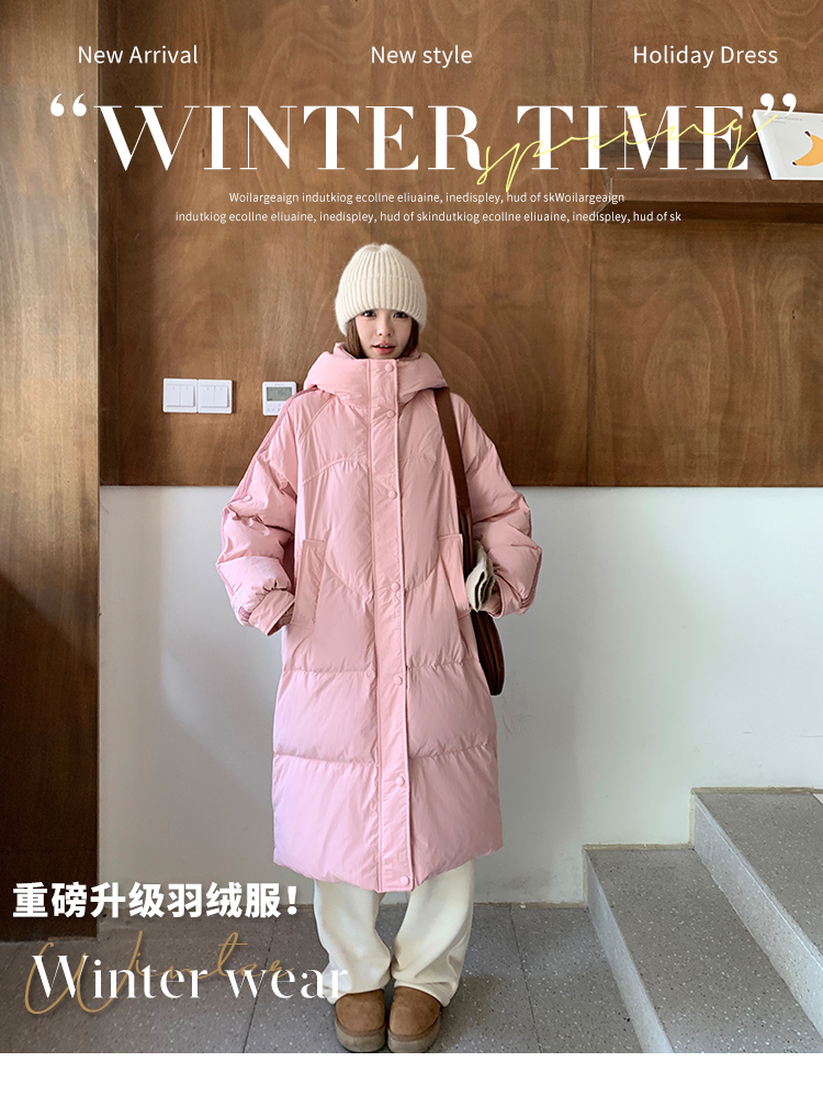 冬装爆款长款过膝宽松连帽白鸭绒外套羽绒服 HY-28 商品图8