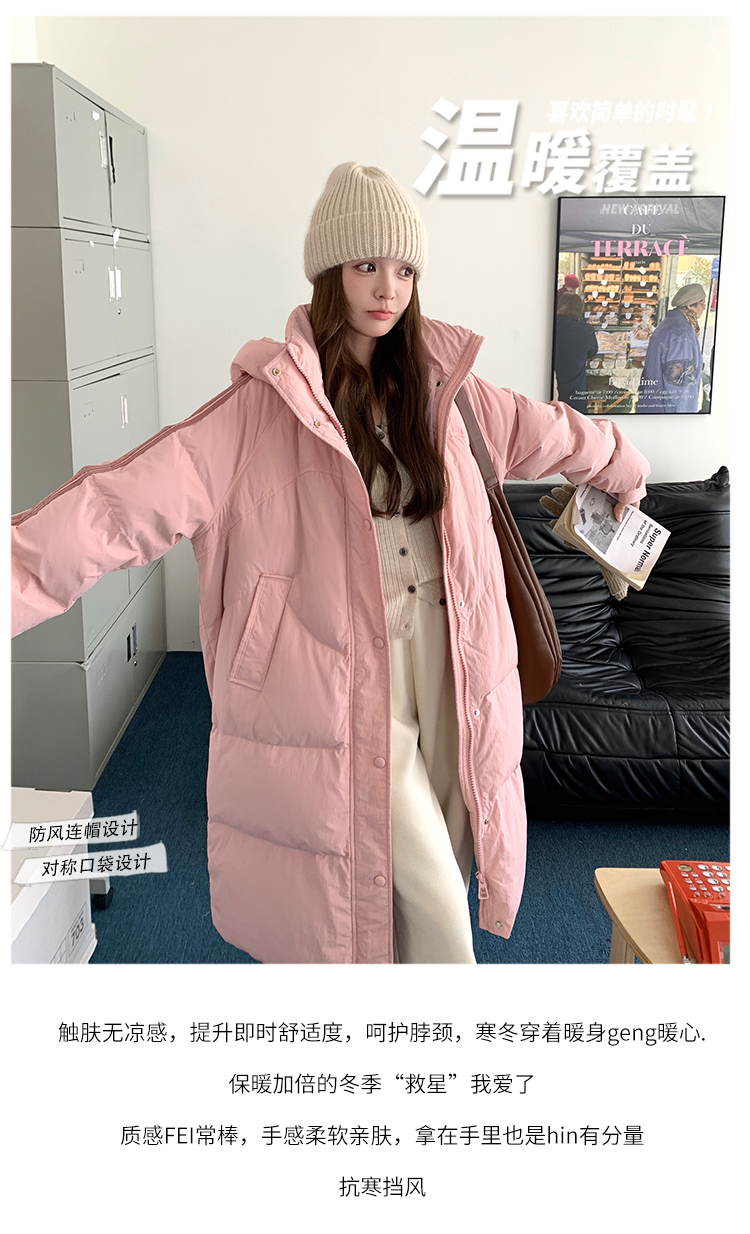 冬装爆款长款过膝宽松连帽白鸭绒外套羽绒服 HY-28 商品图4