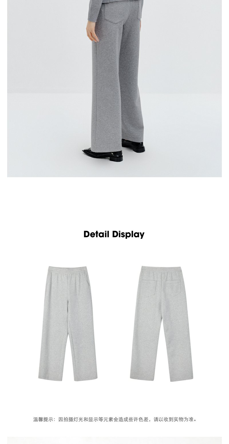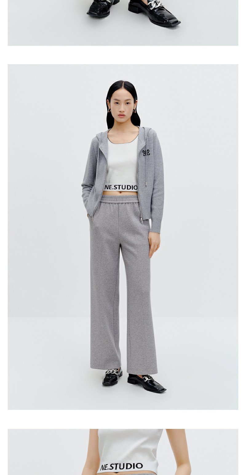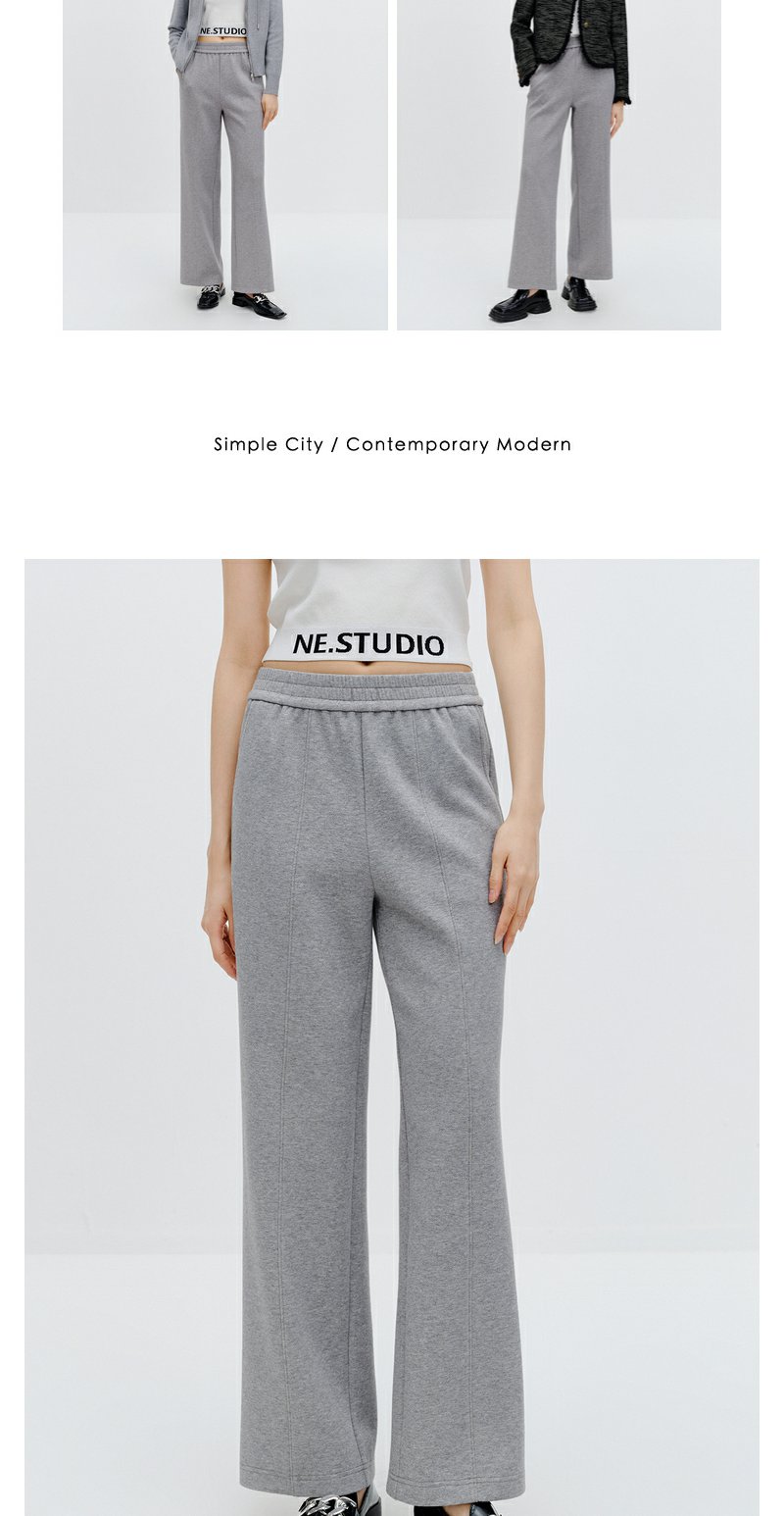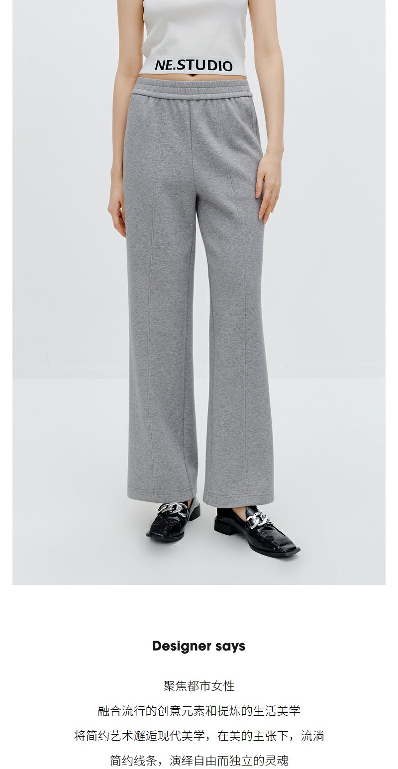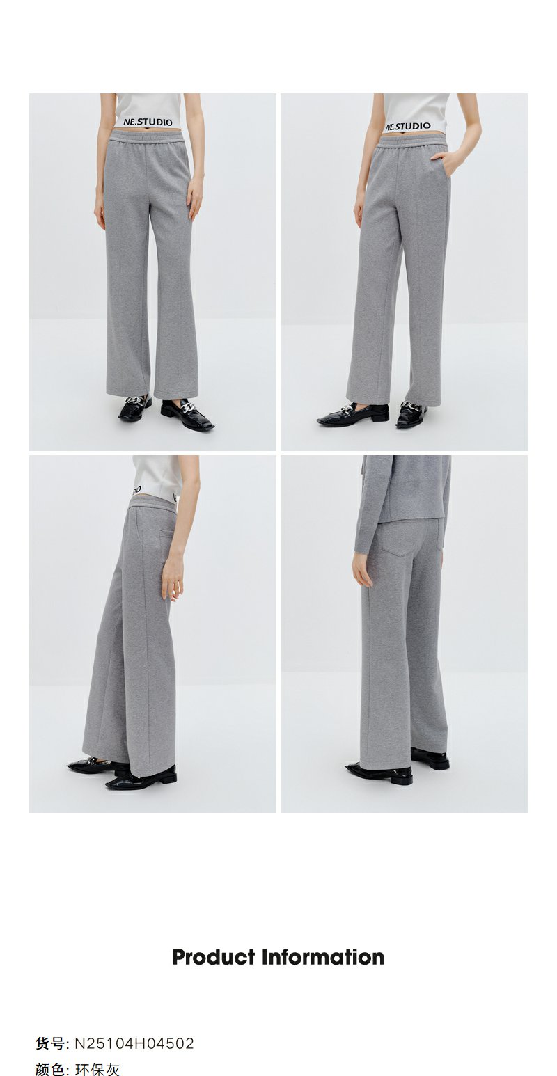 NEELLY纳俪商场同款冬季新款灰色直筒休闲裤女宽松运动风灰色长裤N25104H04502