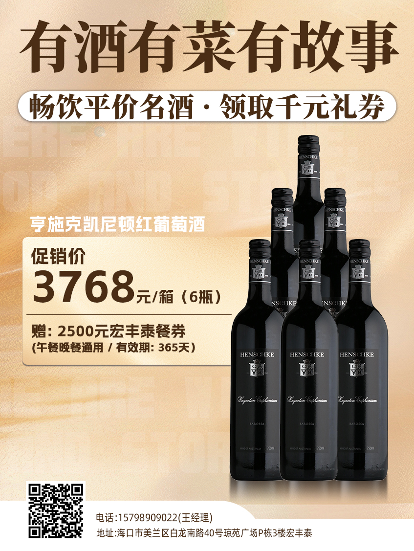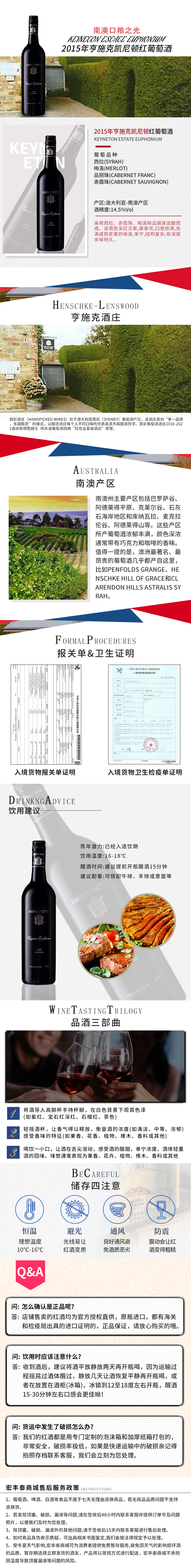 【宏丰泰酒礼】澳大利亚-亨施克凯尼顿红葡萄酒2015年(6瓶装特惠+赠宏丰泰2500元无门槛餐券)