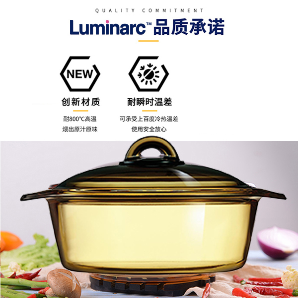 🎁乐美雅晶绽琥珀锅2L+20cm盖子