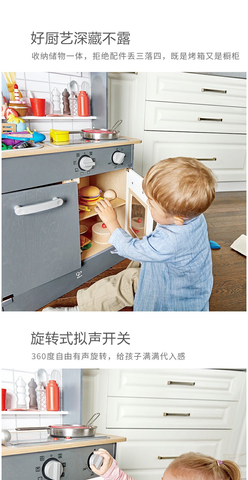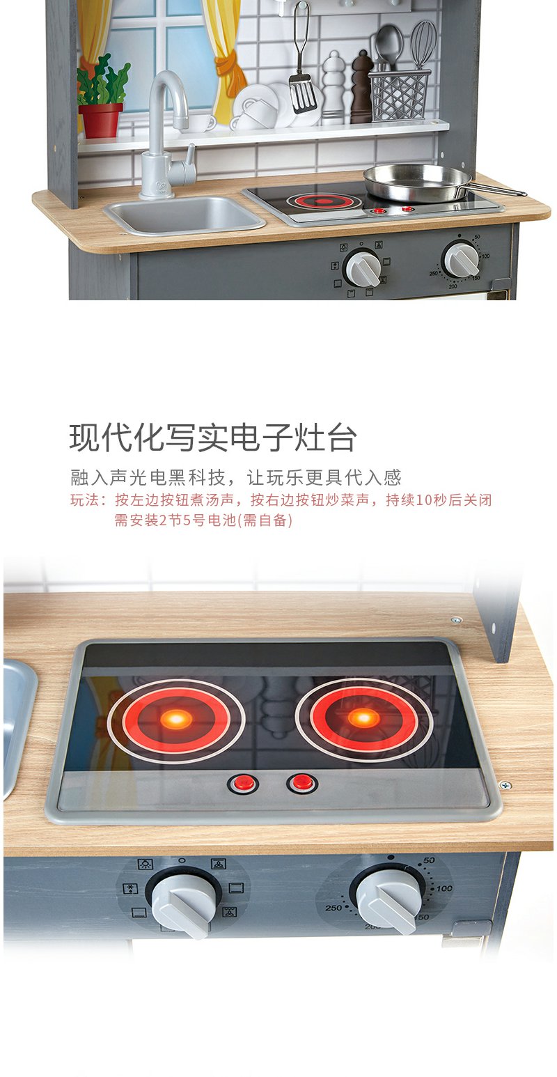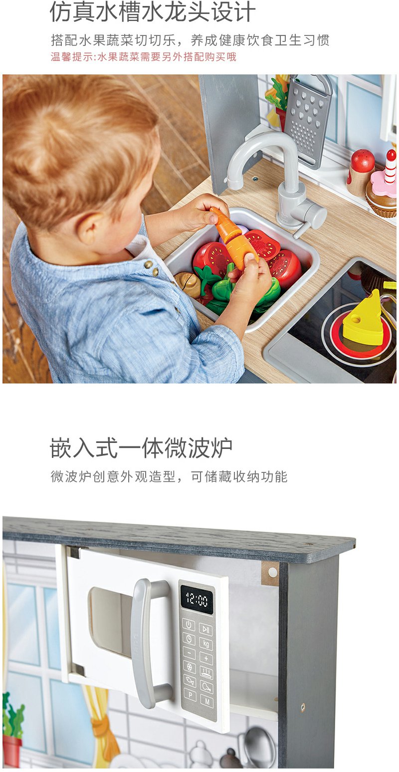【送切切乐】Hape声光模拟厨房男女孩过家家益智玩具木制儿童宝宝多配件