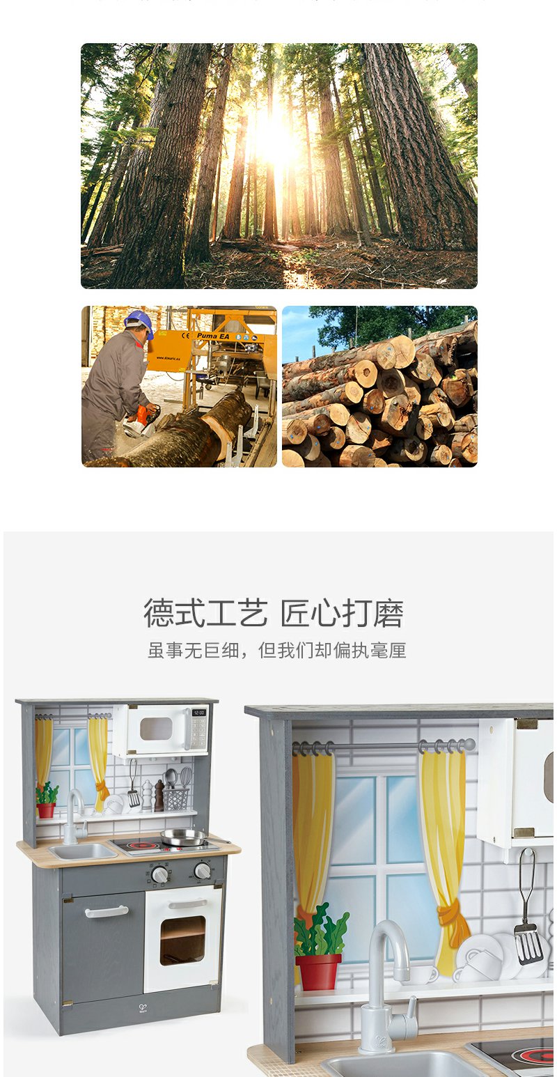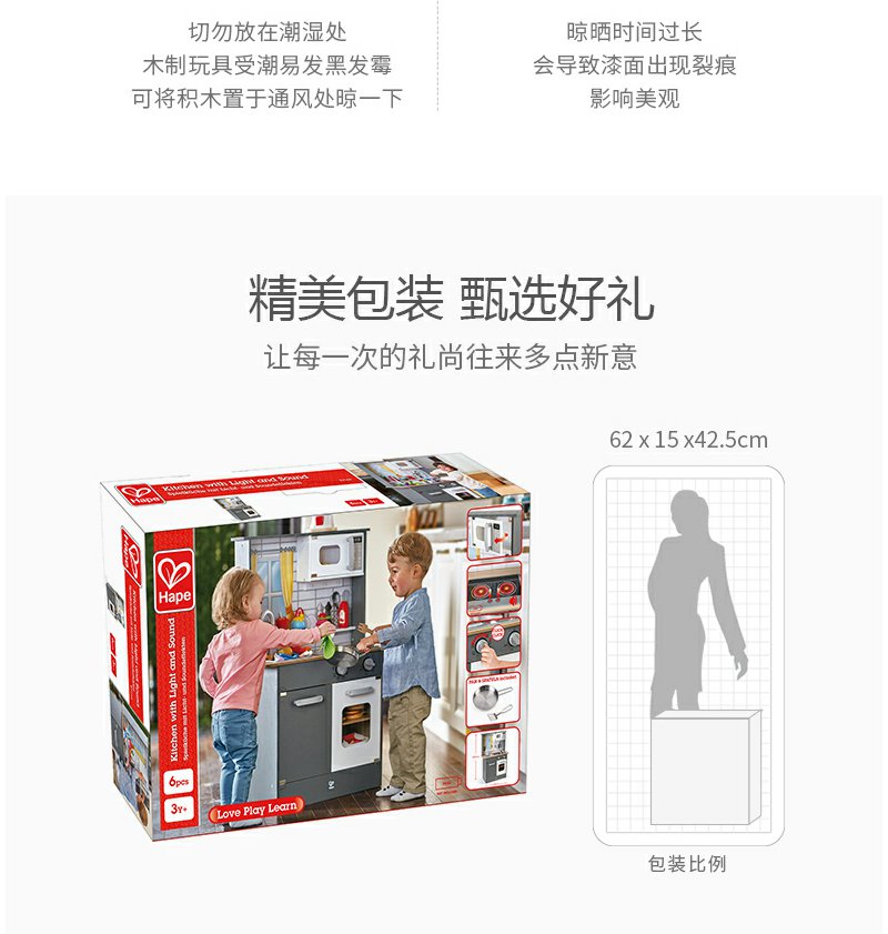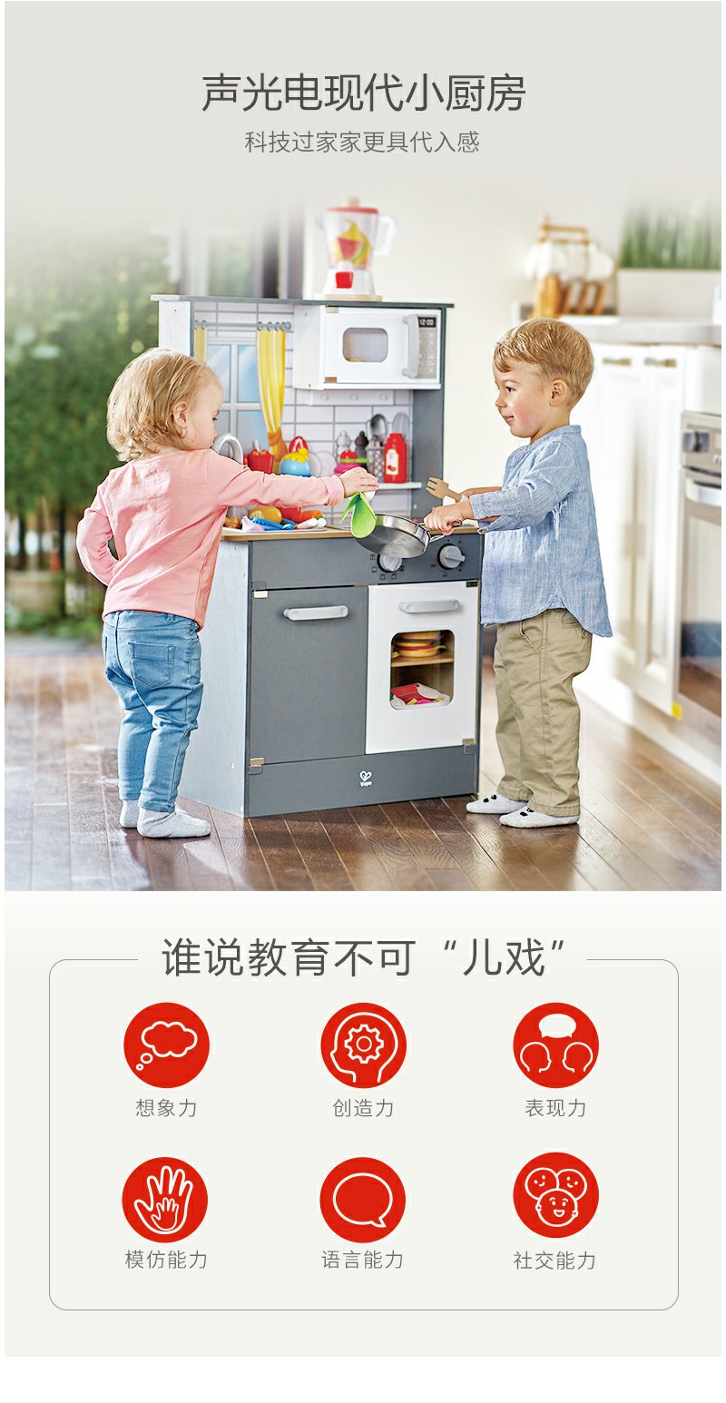 【送切切乐】Hape声光模拟厨房男女孩过家家益智玩具木制儿童宝宝多配件