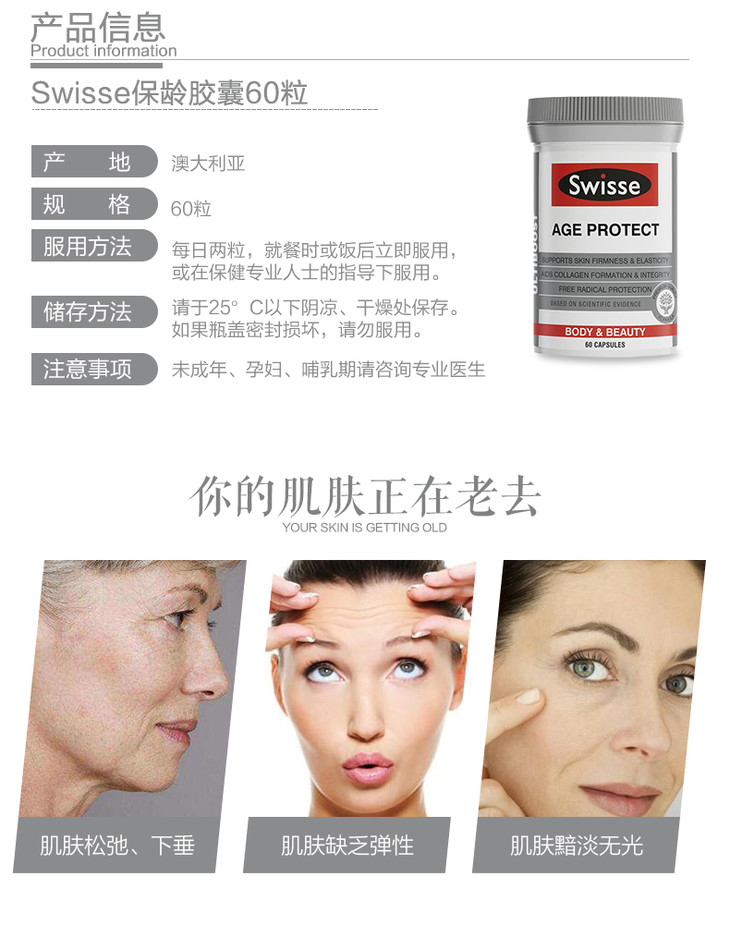 Swisse斯维诗保龄胶囊60粒永葆青春不老容颜抗氧化抵抗自由基