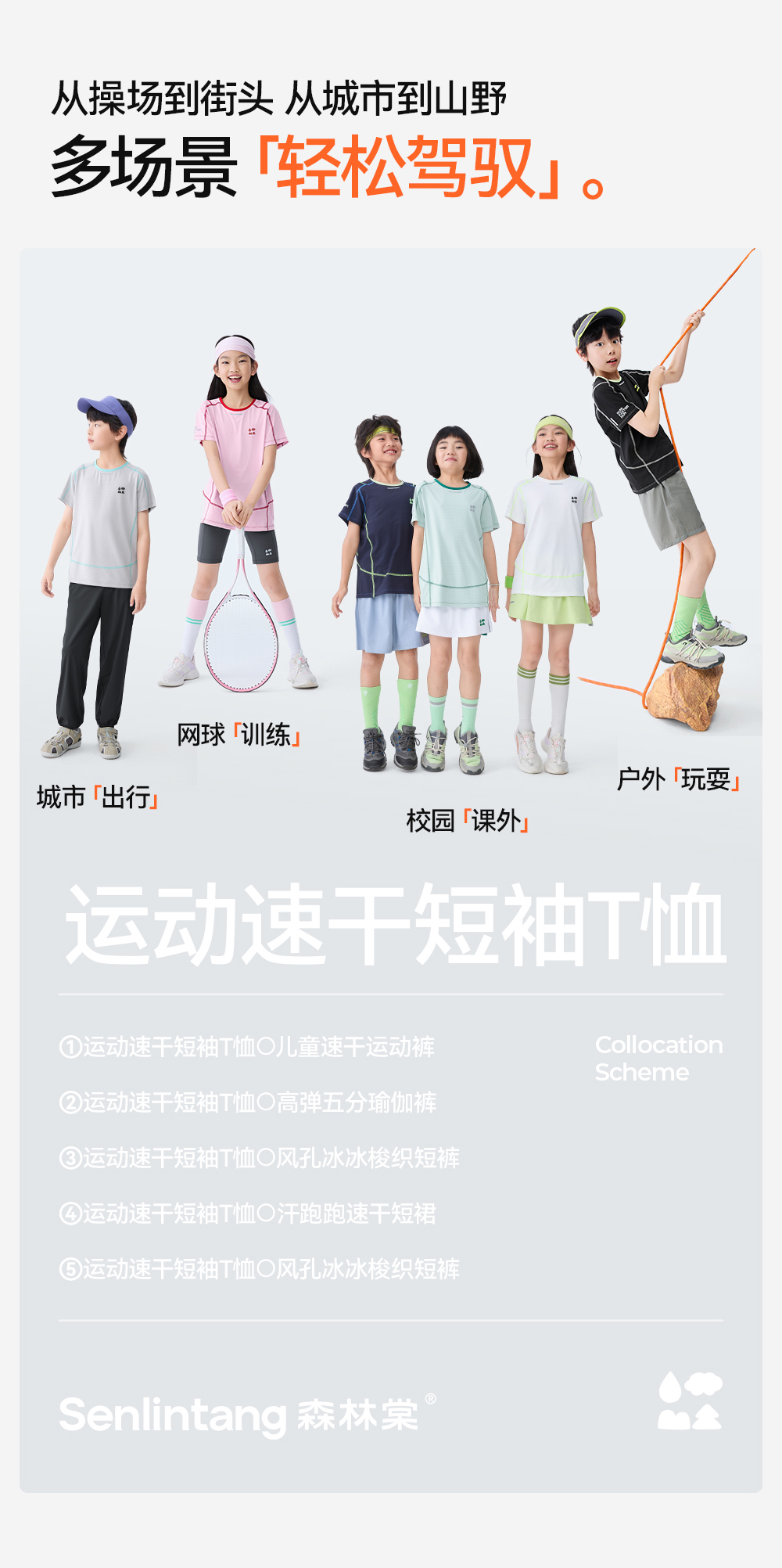 【运动速干短袖T恤】森林棠25夏款儿童户外运动吸湿透气凉感速干衣40322525