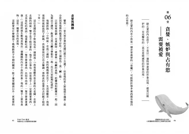每個人內心深處,都住著一個長不大的小孩。不管在童年,還是成年後,當內在小孩得不到關心、愛護與療癒時,內在小孩就成了一個有創傷的小孩;他會讓你的情緒容易失控;或在與人交際互動時常受挫,跟世界格格不入;在工作中不受重視,時常被欺負;在感情中作態,沒有建立親密關係的能力;更在人生重要抉擇時刻,做出了「我不好」、「我不配」的決定。